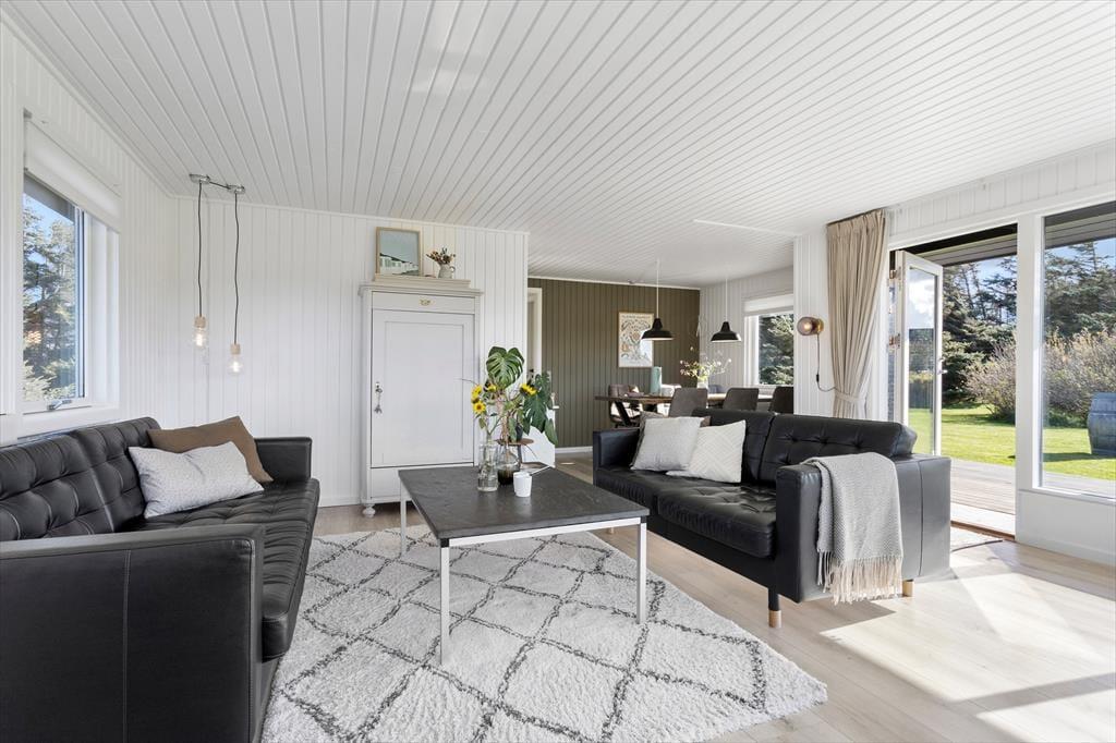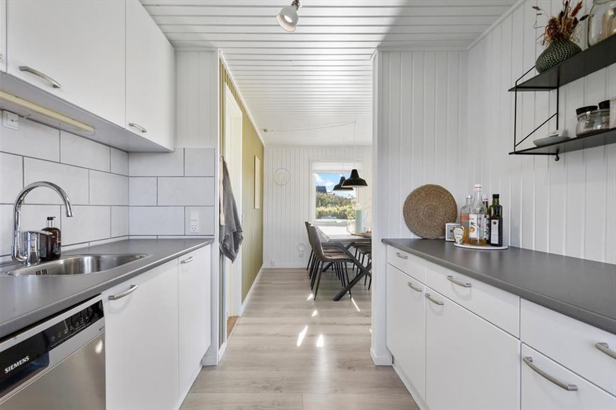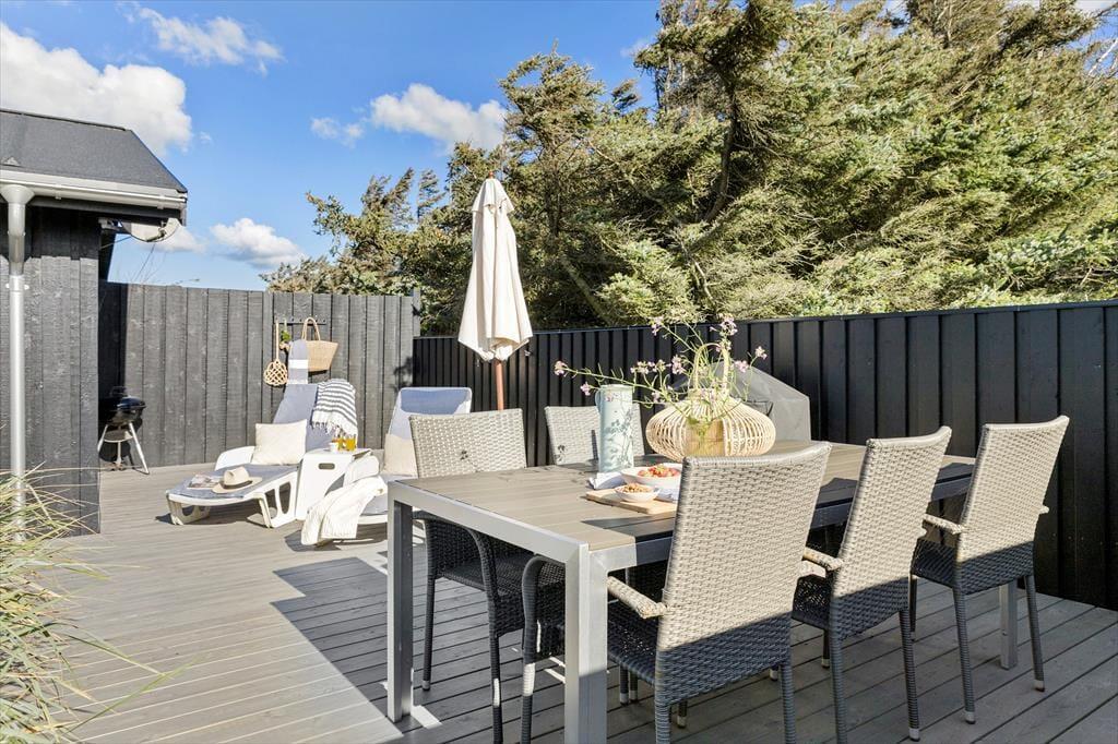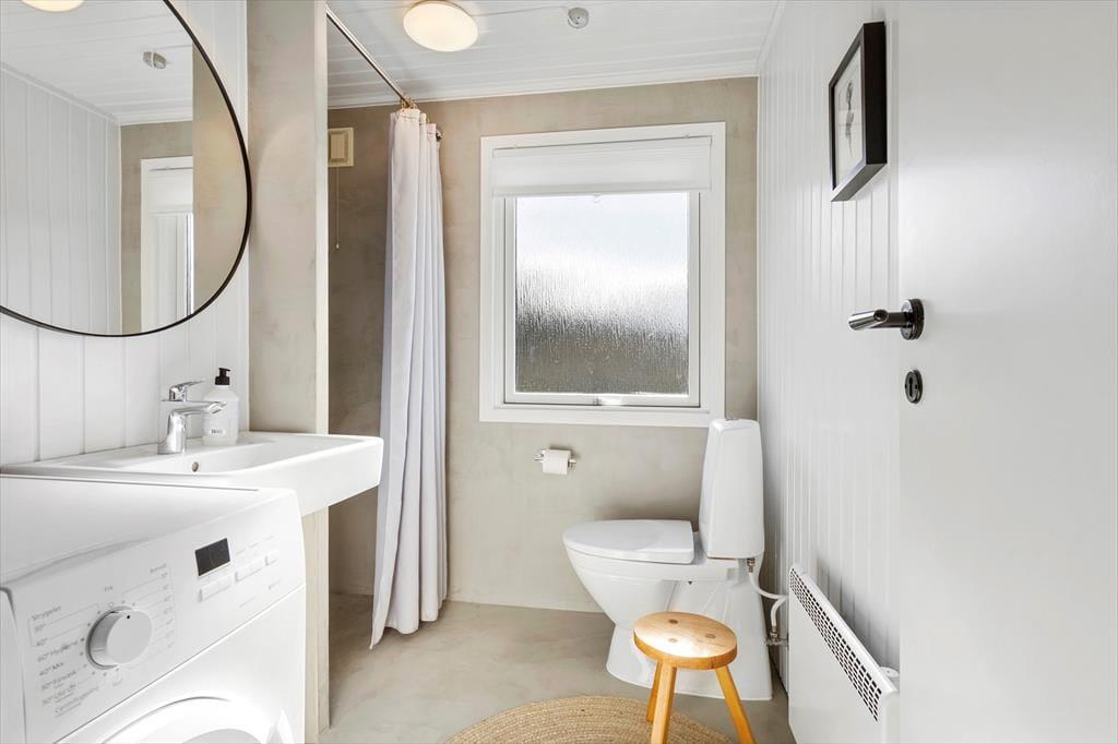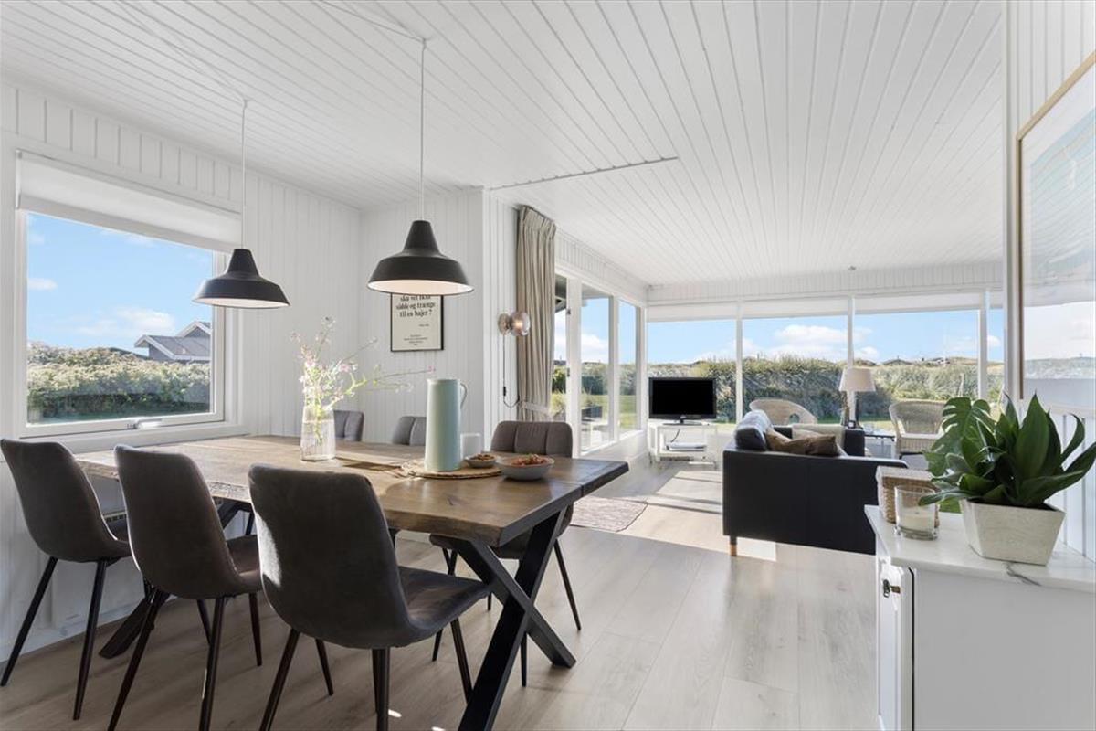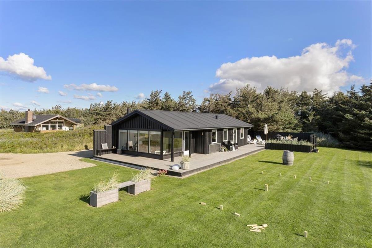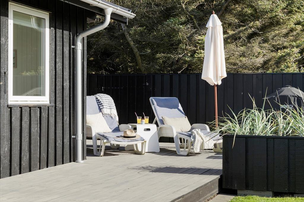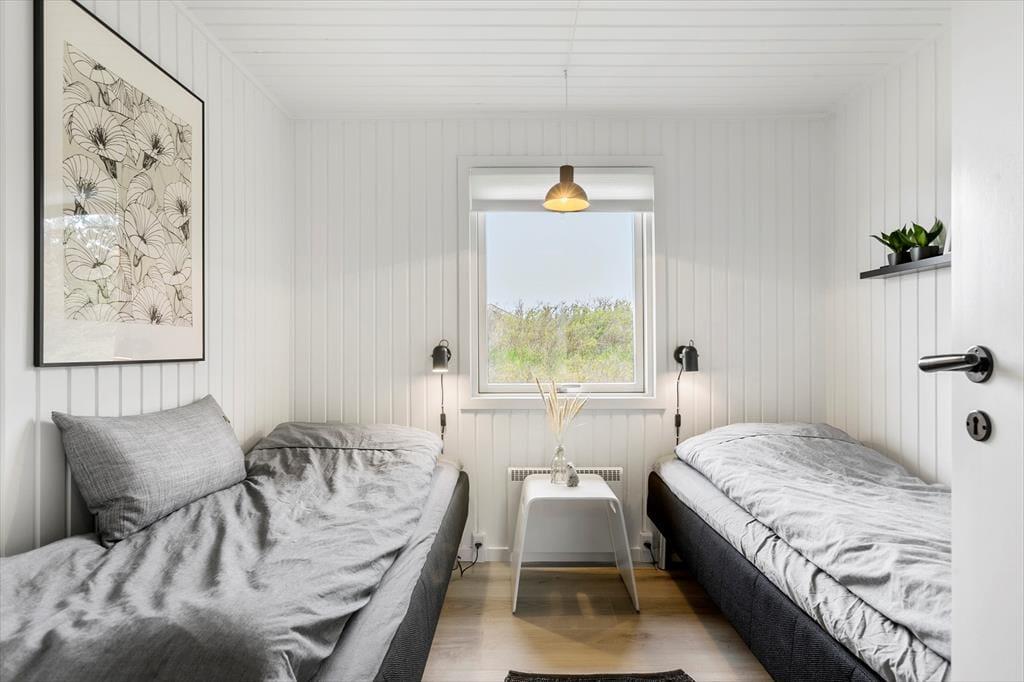 Die Modernisierung des Sommerhauses fand 2022 statt. Hier wurde eine helle Farbpalette verwendet und die passenden Möbelstücke ausgewählt. Der Kaminofen im Wohnzimmer trägt zur gemütlichen Atmosphäre bei, und wenn ihr gleichzeitig nach Westen auf die kleinen Dünen und hübschen Sommerhäuser der Umgebung blicken könnt, ist alles perfekt. Im Wohnzimmer gibt es zudem eine Wärmepumpe mit Kühlfunktion sowie einen Flachbildfernseher mit Satellitenanschluss und Chromecast. Die Küche ist hübsch, gut ausgestattet und bietet viel Arbeitsfläche. Das Haus verfügt außerdem über ein Badezimmer mit Dusche, Fußbodenheizung und Waschmaschine. Schließlich befinden sich drei gute Schlafzimmer im östlichen Teil des Hauses.