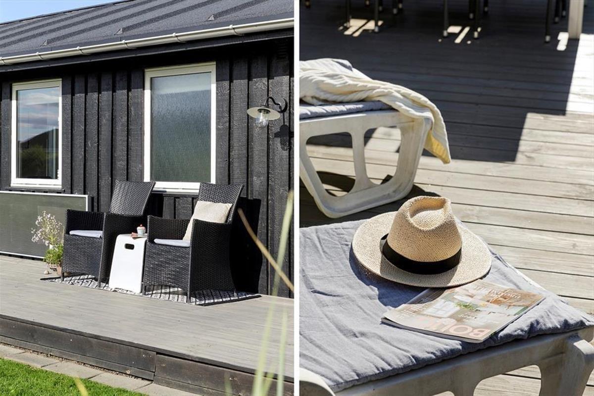 Eine große Holzterrasse erstreckt sich nach Osten, Süden und Westen um das Sommerhaus, sodass ihr zu jeder Tageszeit leicht einen sonnigen Platz findet. Das Grundstück ist mit seinen 2590 m² angenehm groß, sodass genügend Abstand zu den Nachbarn besteht. Auf dem Rasen kann die ganze Familie Spaß haben, sei es beim Ballspielen oder beim Herumtollen.