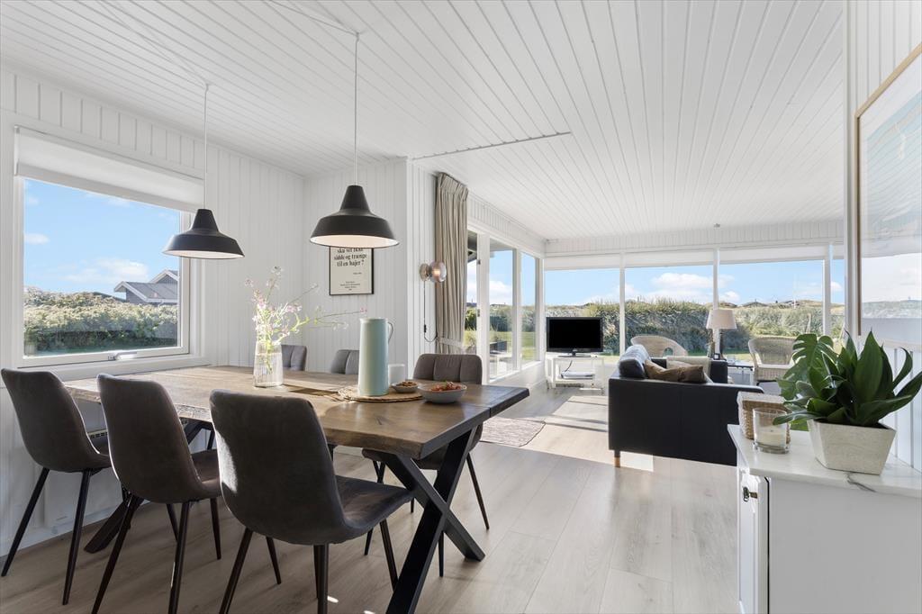 Es ist definitiv nicht jede Ferienunterkunft, die die perfekte Balance zwischen authentischem Sommerhausgefühl und hohem Komfort bietet, aber hier auf Redningsvejen Nord 123 ist es absolut gelungen! Dieses wunderschöne Haus wurde stilvoll renoviert – und es schadet sicherlich auch nicht, dass ihr von der Stube aus eine tolle Aussicht auf die Dünenlandschaft von Grønhøj genießen könnt.