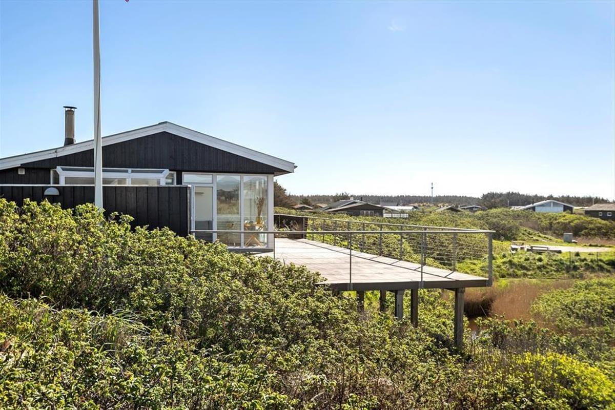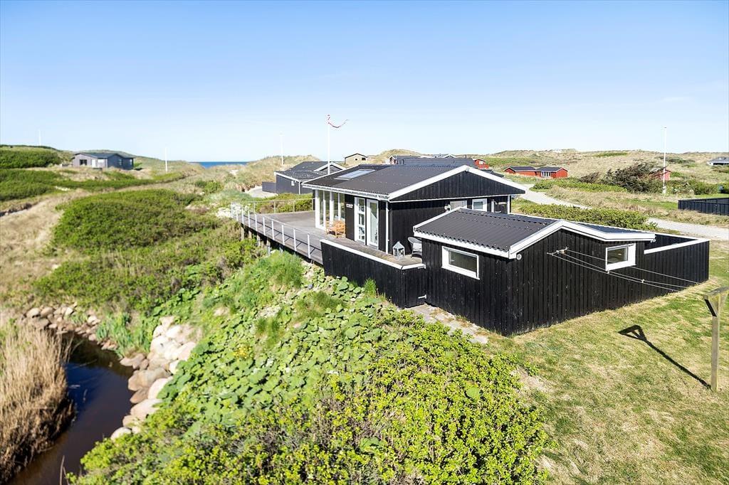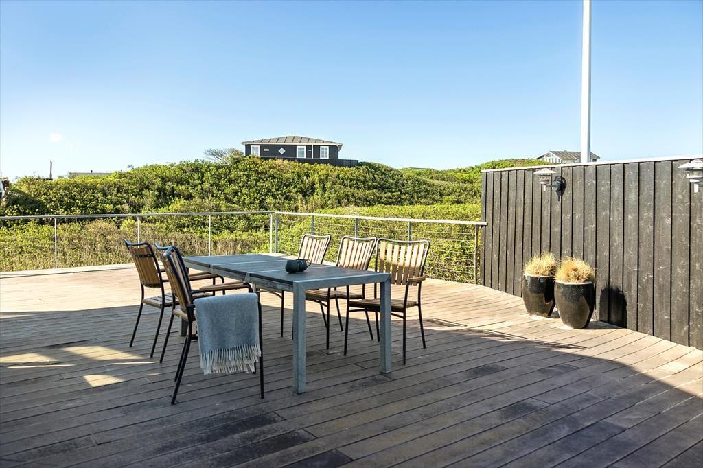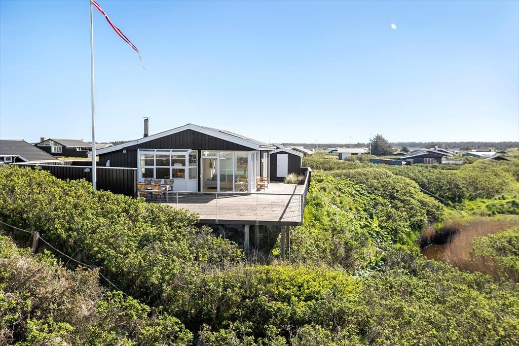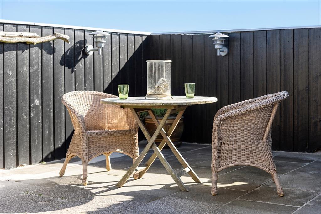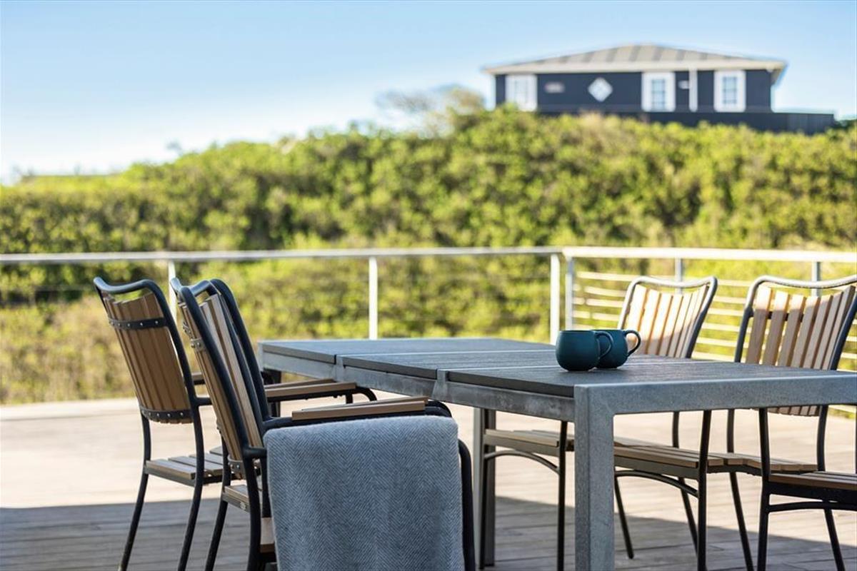 Das Leben unter freiem Himmel kommt hier auf Emil Nielsensvej 23 auf jeden Fall auf seine Kosten. Eine wunderschöne Terrasse erstreckt sich rund um das Ferienhaus, von der aus ihr einen tollen Blick auf die grüne Landschaft habt. Einige haben hier übrigens auch Otter am Bach gesichtet – vielleicht habt ihr ja auch Glück? Die Terrasse ist mit einem Zaun zur Straße hin abgeschirmt, und die Dünen sorgen dafür, dass die Außenbereiche bei Westwind etwas geschützt sind. Auf dem Grundstück gibt es außerdem einen Rasen, sodass ihr Platz für Gartenspiele habt, falls ihr nicht lieber am Strand spielen wollt.