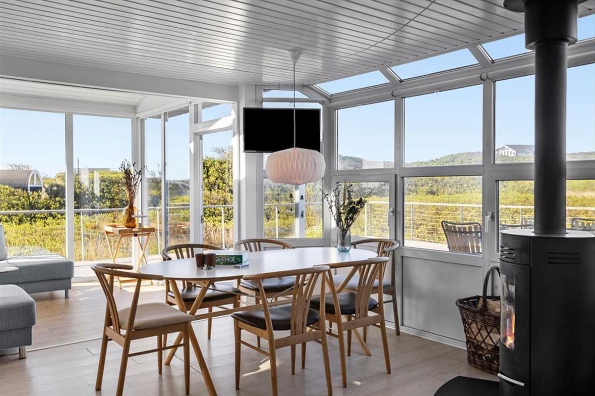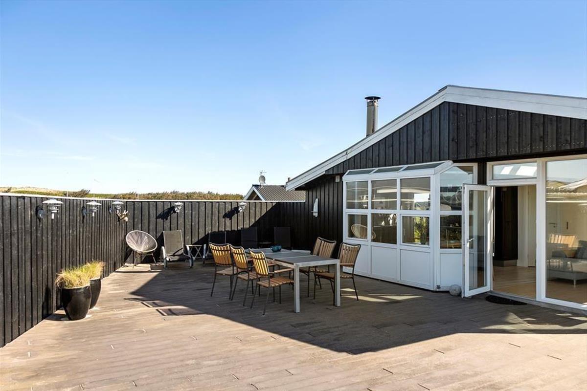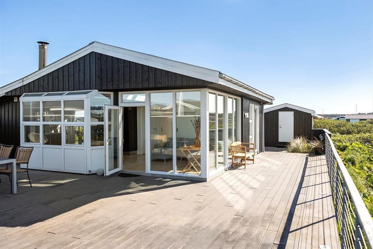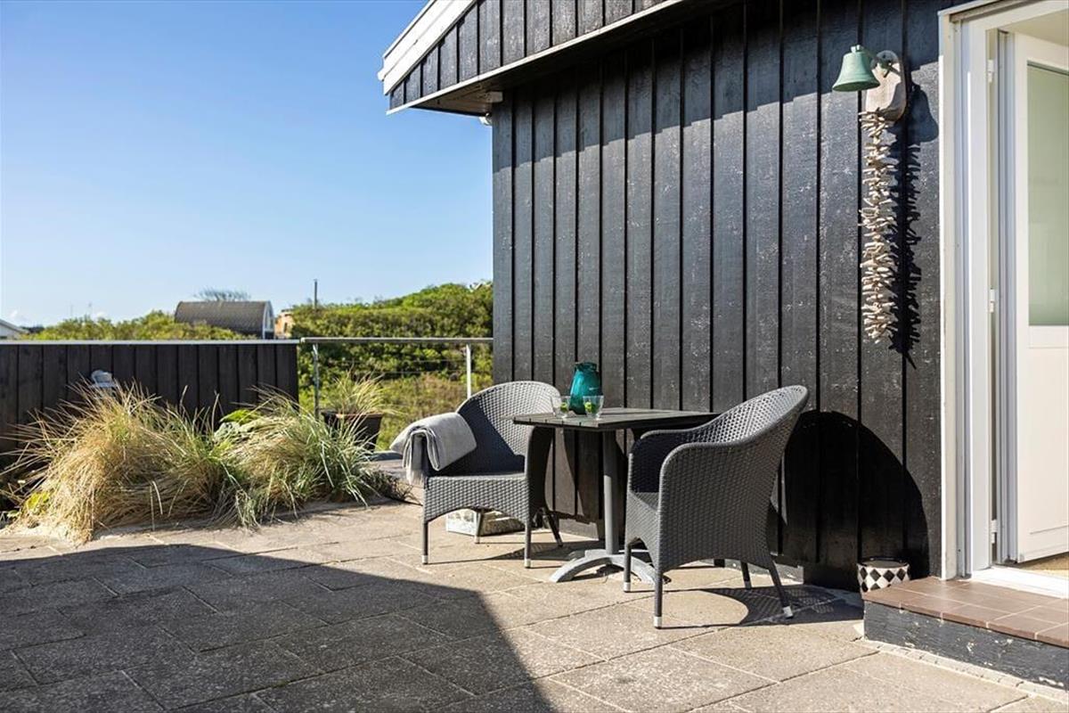 Das Leben unter freiem Himmel kommt hier auf Emil Nielsensvej 23 auf jeden Fall auf seine Kosten. Eine wunderschöne Terrasse erstreckt sich rund um das Ferienhaus, von der aus ihr einen tollen Blick auf die grüne Landschaft habt. Einige haben hier übrigens auch Otter am Bach gesichtet – vielleicht habt ihr ja auch Glück? Die Terrasse ist mit einem Zaun zur Straße hin abgeschirmt, und die Dünen sorgen dafür, dass die Außenbereiche bei Westwind etwas geschützt sind. Auf dem Grundstück gibt es außerdem einen Rasen, sodass ihr Platz für Gartenspiele habt, falls ihr nicht lieber am Strand spielen wollt.