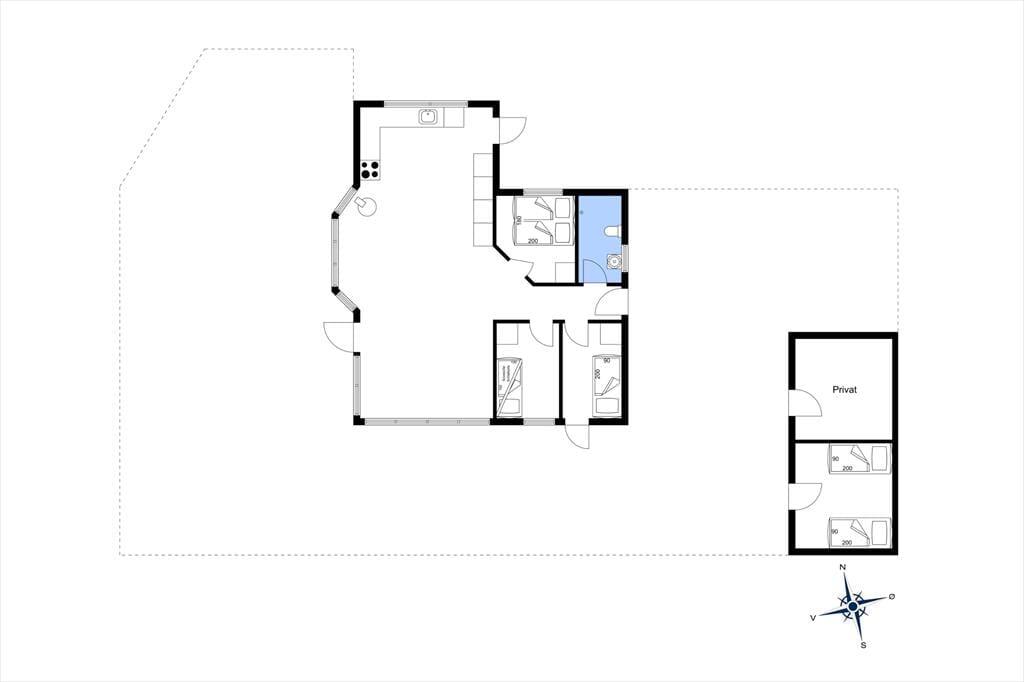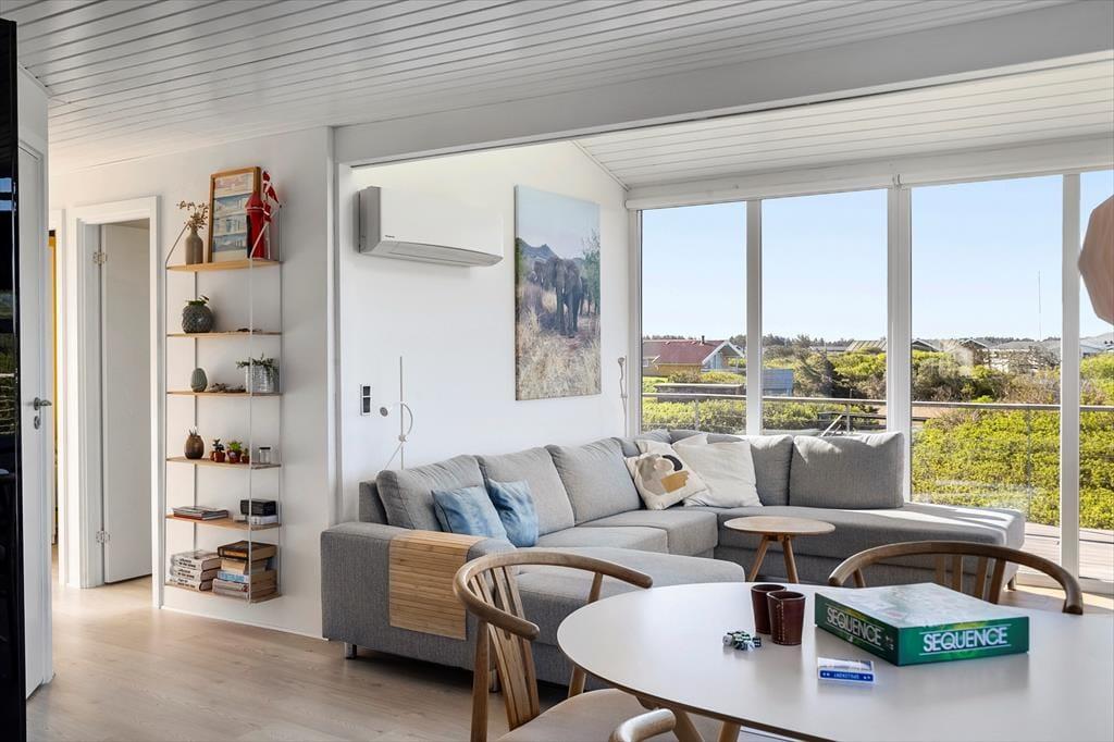 Vom Haus aus könnt ihr einem kleinen Pfad entlang des Bachs bis zum Strand folgen. Ihr müsst nur 15 Schritte gehen, um das Wasser zu sehen, und nach 40 Schritten steht ihr schon mit Sand unter den Füßen – mit anderen Worten, es ist kein großer Aufwand, schnell ins Sand zu gehen, ein Bad zu nehmen oder den Sonnenuntergang zu bewundern. Wollt ihr nach Løkken, sind es nur etwa 2,5 Kilometer. Wenn ihr einen kleinen Spaziergang unternehmen wollt, könnt ihr entlang der weißen Badehäuser am Strand gehen, um ein Eis zu essen oder in einem der guten Restaurants der Stadt zu Mittag zu essen.