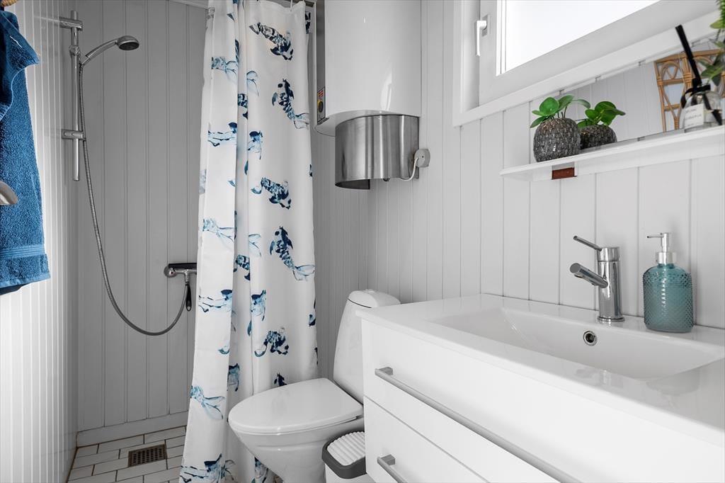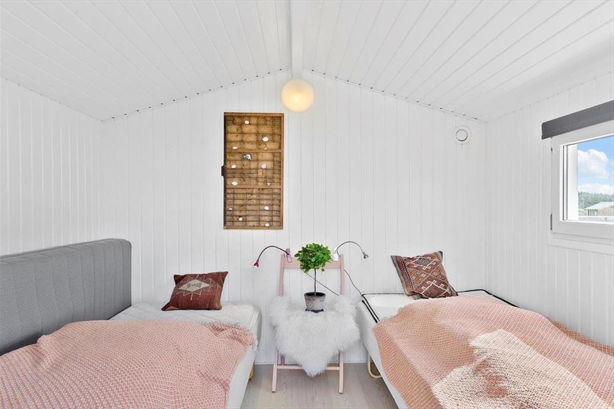 Nach einer gründlichen Modernisierung erscheint das Ferienhaus äußerst hell und einladend, und auch das angrenzende Nebengebäude hat eine angenehme Atmosphäre und denselben stilvollen Einrichtungsstil. Insgesamt eignet sich das Haus hervorragend als Ferienunterkunft für sechs Personen – mit einem großen Wohnraum, einem schönen Badezimmer mit Dusche und drei Schlafzimmern im Ferienhaus sowie zusätzlichen Schlafplätzen im Nebengebäude. Die Wachstunden werdet ihr vermutlich im Wohnbereich genießen, wo das Wohnzimmer und die Küche miteinander verbunden sind. Besonders nach Süden und Westen ist das Licht dank der großen Fenster fantastisch, die zugleich einen Blick auf die hügelige Landschaft entlang des Bachs bieten. Mit einem Kaminofen und einer Wärmepumpe mit Kühlung könnt ihr die Innentemperatur nach Belieben an das Wetter anpassen. Unabhängig von der Jahreszeit ist es ein herrlicher Ort, um sich mit Kochen, leckeren Mahlzeiten, guten Büchern, Filmabenden und vielem mehr zu vergnügen.