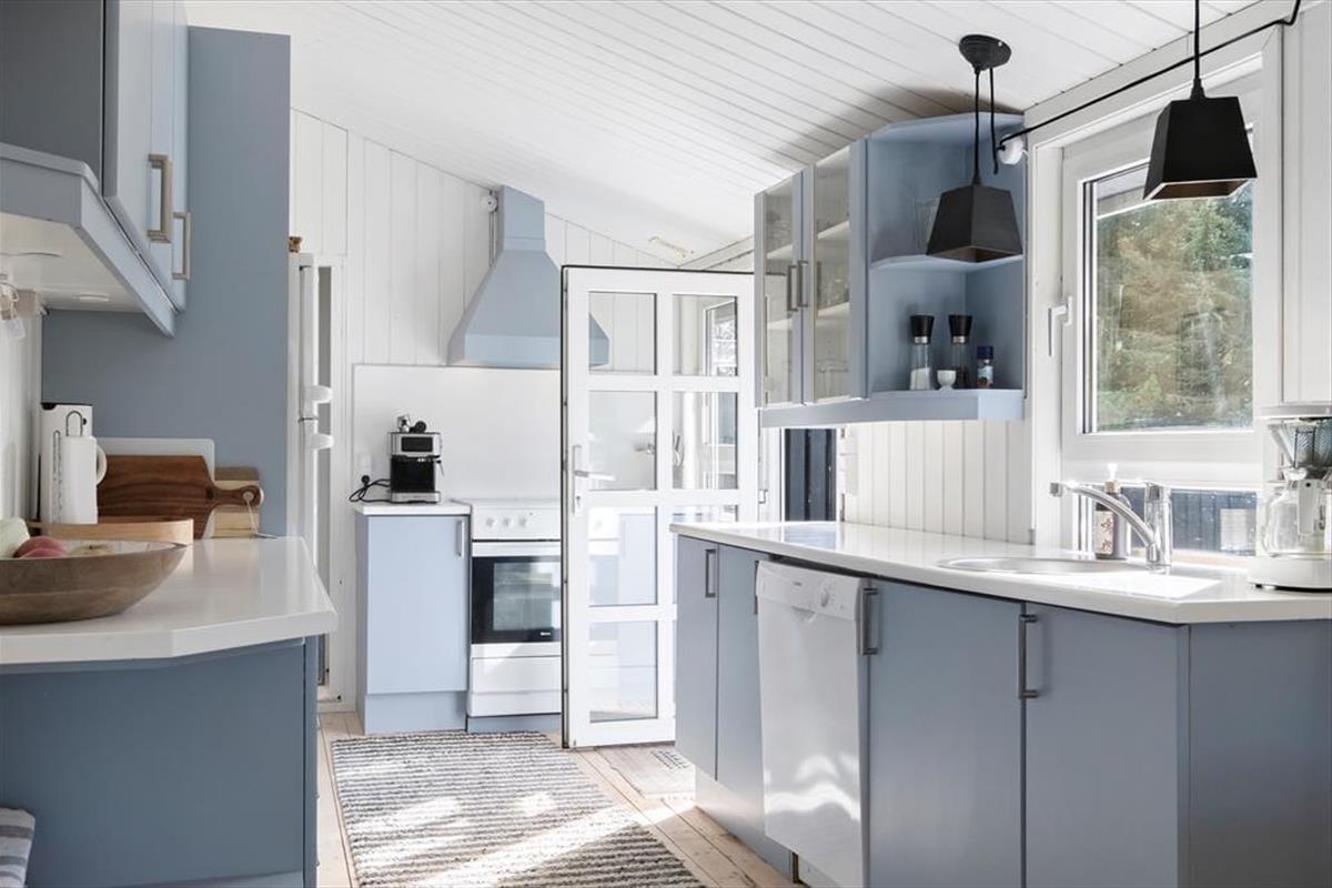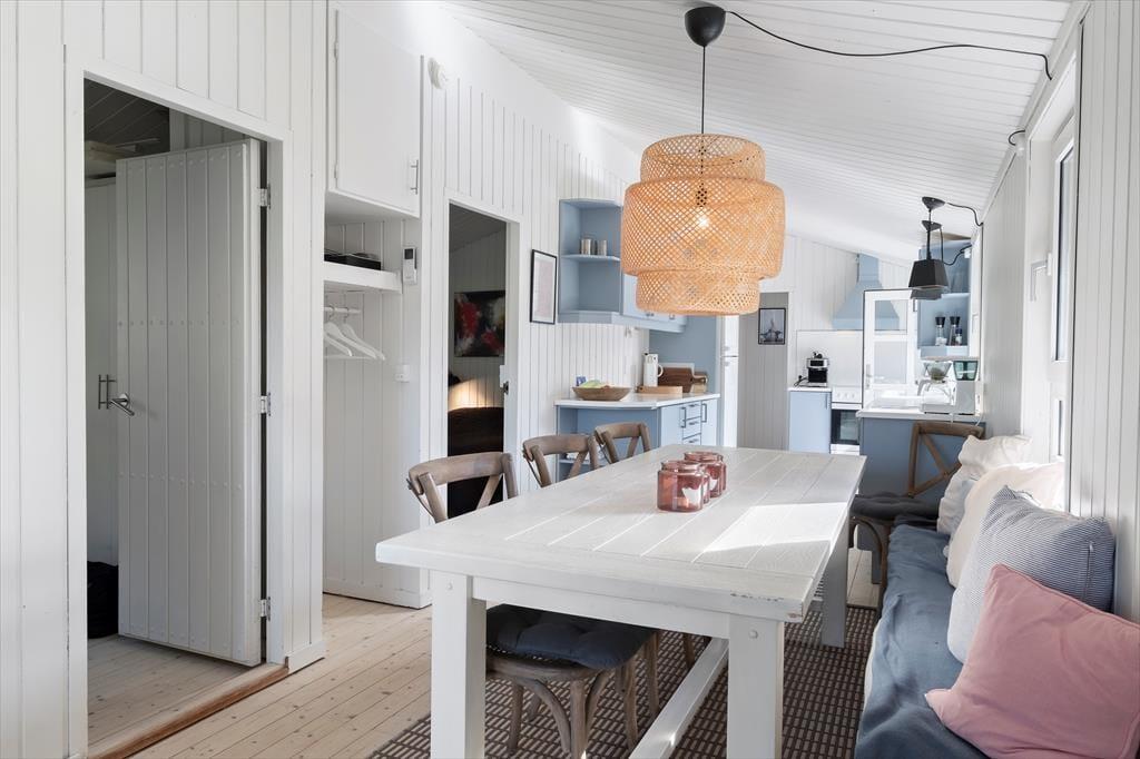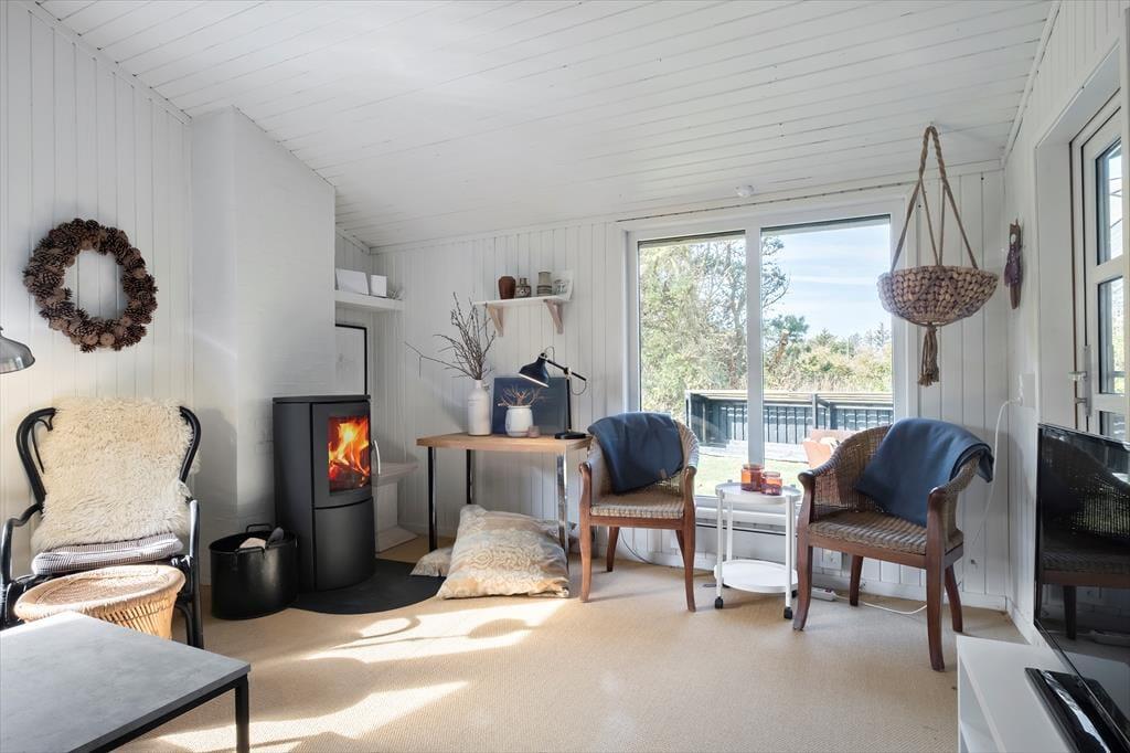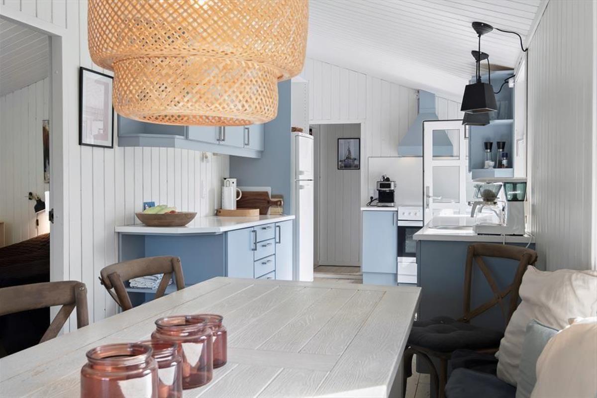 Es handelt sich um ein hübsches Holzhaus, das 2021 renoviert wurde und nun eine perfekte Balance zwischen modernem Design und klassischem Ferienhauscharme bietet. Eine schöne Küche mit Geschirrspüler befindet sich an einem Ende des Wohnbereichs. Am anderen Ende steht eine Sofaecke in der Nähe des Kaminofens, und in der Mitte dient der Esstisch als natürlicher Treffpunkt – ob für ein leckeres Abendessen oder eine Partie Monopoly oder andere Brettspiele. Im Haus gibt es außerdem ein Badezimmer mit Dusche sowie einen kleinen Abstellraum mit Waschmaschine und Trockner. Schließlich verfügt ihr über drei Schlafzimmer.