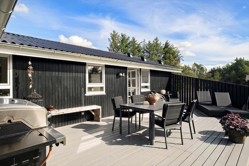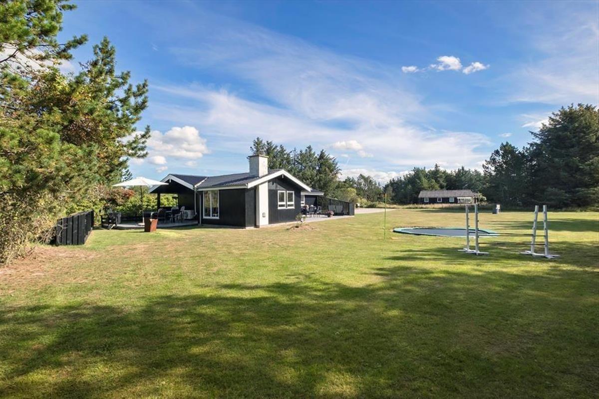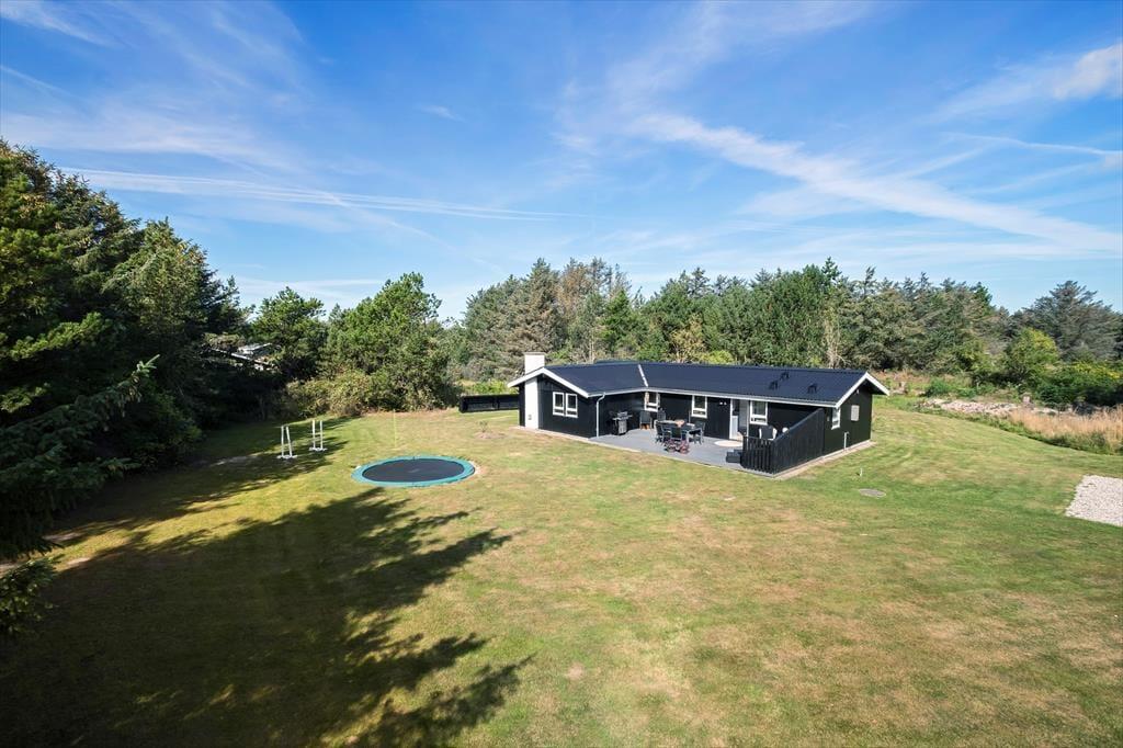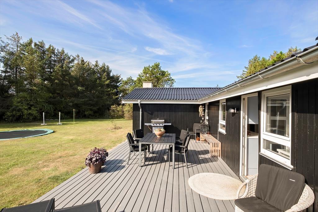 An sonnigen und sommerlichen Urlaubstagen bietet es sich an, auf die schönen Terrassen zu ziehen, die an das Haus angrenzen. Eine Terrasse ist teilweise überdacht, die andere komplett offen. Wenn ihr euch nicht auf den Gartenstühlen niederlassen wollt, gibt es auf der 2.543 m² großen Rasenfläche viel Platz zum Entspannen. Für die Kinder gibt es ein Trampolin – aber vielleicht möchten sie auch direkt an den Strand, um Sandburgen zu bauen oder in den Wellen zu spielen.