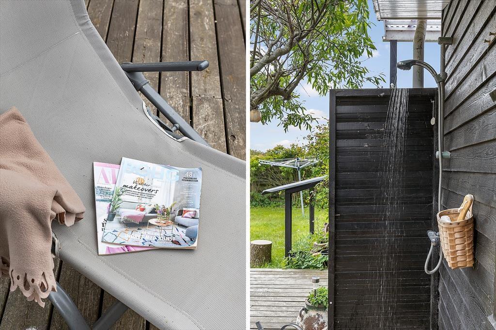Das Grundstück des Sommerhauses ist von dichten Büschen umgeben, und auf dem Rasen gibt es viel Platz, um Frisbee zu spielen oder mit dem Hund zu toben. Wenn ihr vor allem entspannen möchtet, ist die sonnige und geschützte Terrasse genau der richtige Ort. Sie erstreckt sich nach Süden und Osten und bietet mehrere Sitzgelegenheiten, einschließlich eines überdachten Bereichs. Dank der Außendusche könnt ihr den Tag mit einer erfrischenden Dusche beginnen, während die Vögel ihre Morgenlieder singen und Furreby langsam erwacht.