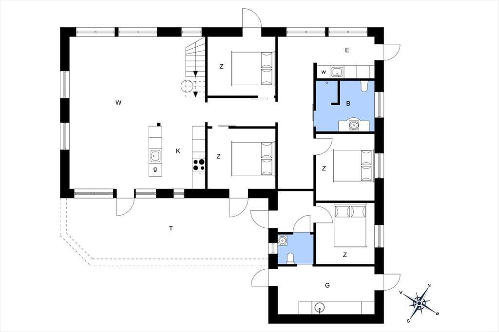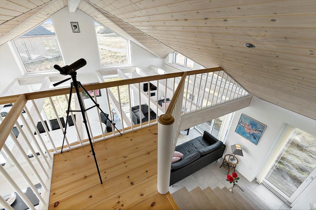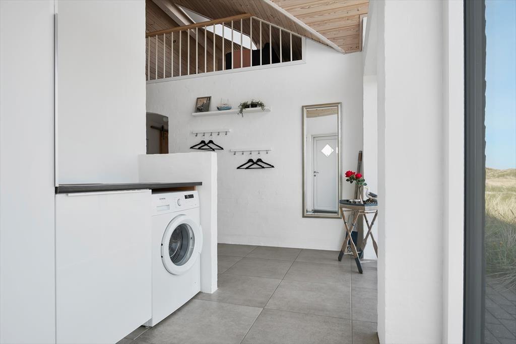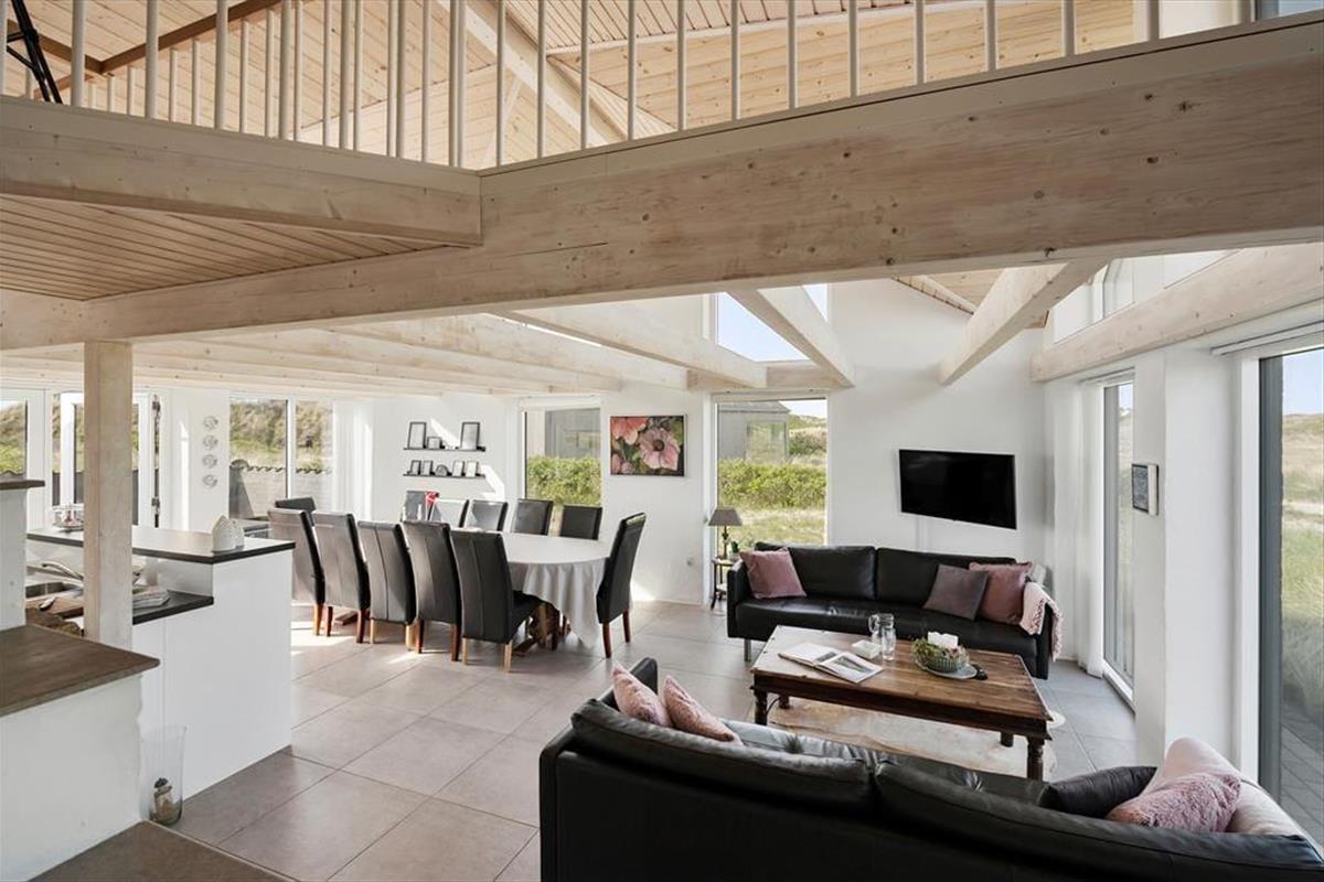 Die Lage in der ersten Dünenreihe ist zweifellos das Erste, das man hervorheben sollte – aber auch die helle Atmosphäre des Ferienhauses und die großzügige Raumaufteilung verdienen Erwähnung. Innen beeindruckt das Haus mit einer schönen Deckenhöhe und großen Fensterfronten, die die Sonne und die Dünenlandschaft hereinlassen. Mit ganzen 127 m² haben Sie reichlich Platz, um das Urlaubsleben in vollen Zügen zu genießen. Drei Schlafzimmer, ein Badezimmer und ein Hauswirtschaftsraum befinden sich in einem gut proportionierten Bereich, während ein viertes Schlafzimmer und ein Gäste-WC separat in einem Anbau mit eigenem Eingang liegen. Die gut ausgestattete Küche des Ferienhauses ist mit einem großen und stilvollen Kaminzimmer integriert, von dem eine Treppe zu einem geräumigen Hängeboden führt – ideal für eine entspannte Lesestunde, eine Siesta, Kinderspiele oder sogar eine Übernachtung.