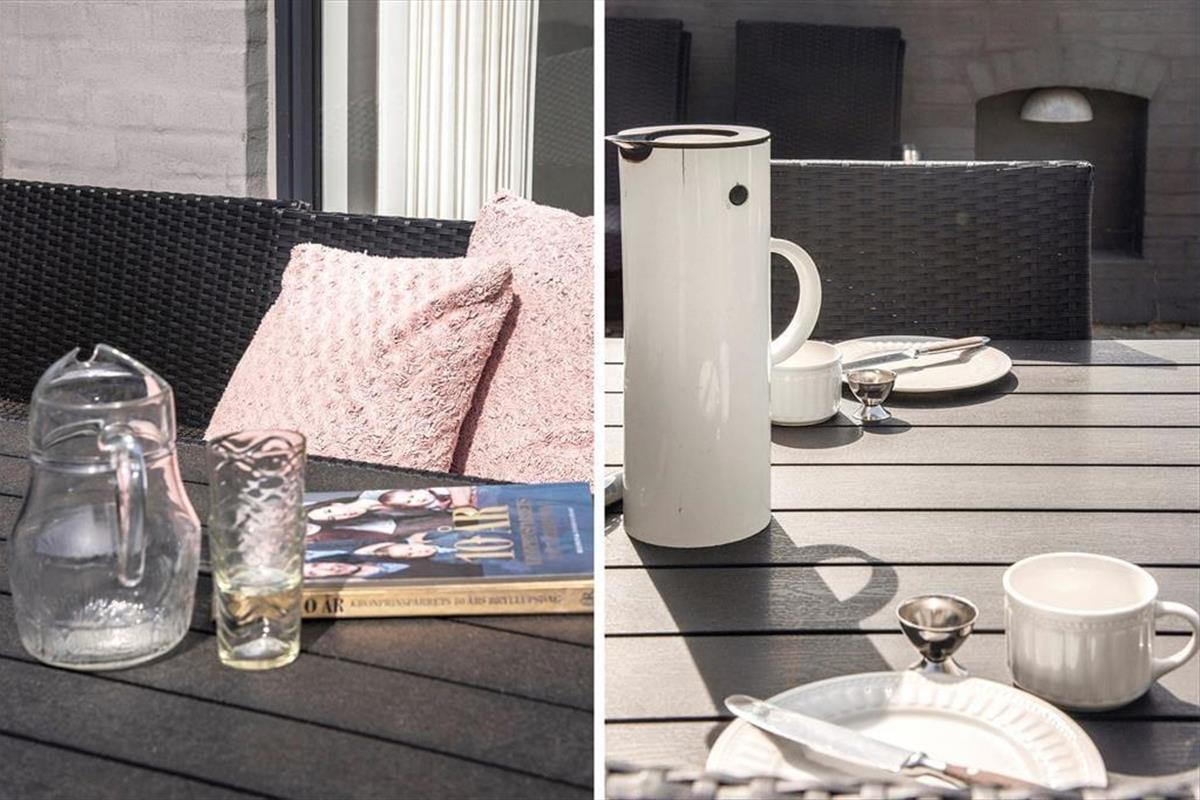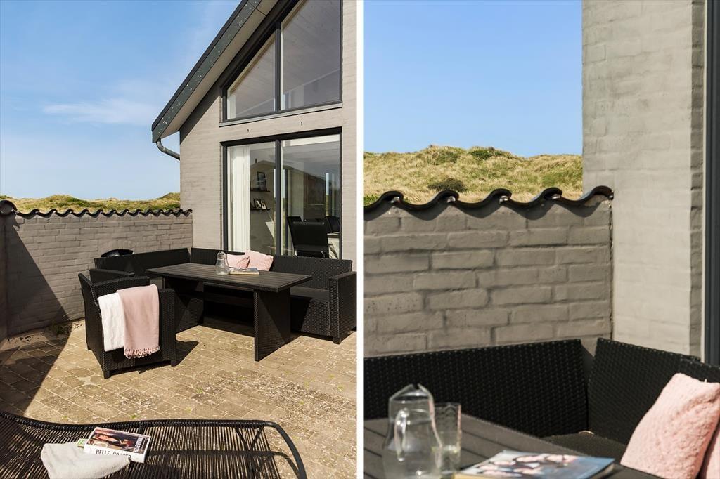 Auf dem 1.004 m² großen Dünengrundstück haben Sie viele Möglichkeiten, das wunderschöne Licht der Küste, die salzige Luft und die wärmenden Sonnenstrahlen zu genießen, wenn Sie auf der Terrasse entspannen. Diese ist nach Süden ausgerichtet und vollständig von Mauern umgeben. Mit Gartenmöbeln, Liegestühlen, Grill und Sonnenschirm sind hier viele schöne Stunden möglich – morgens, mittags und abends.