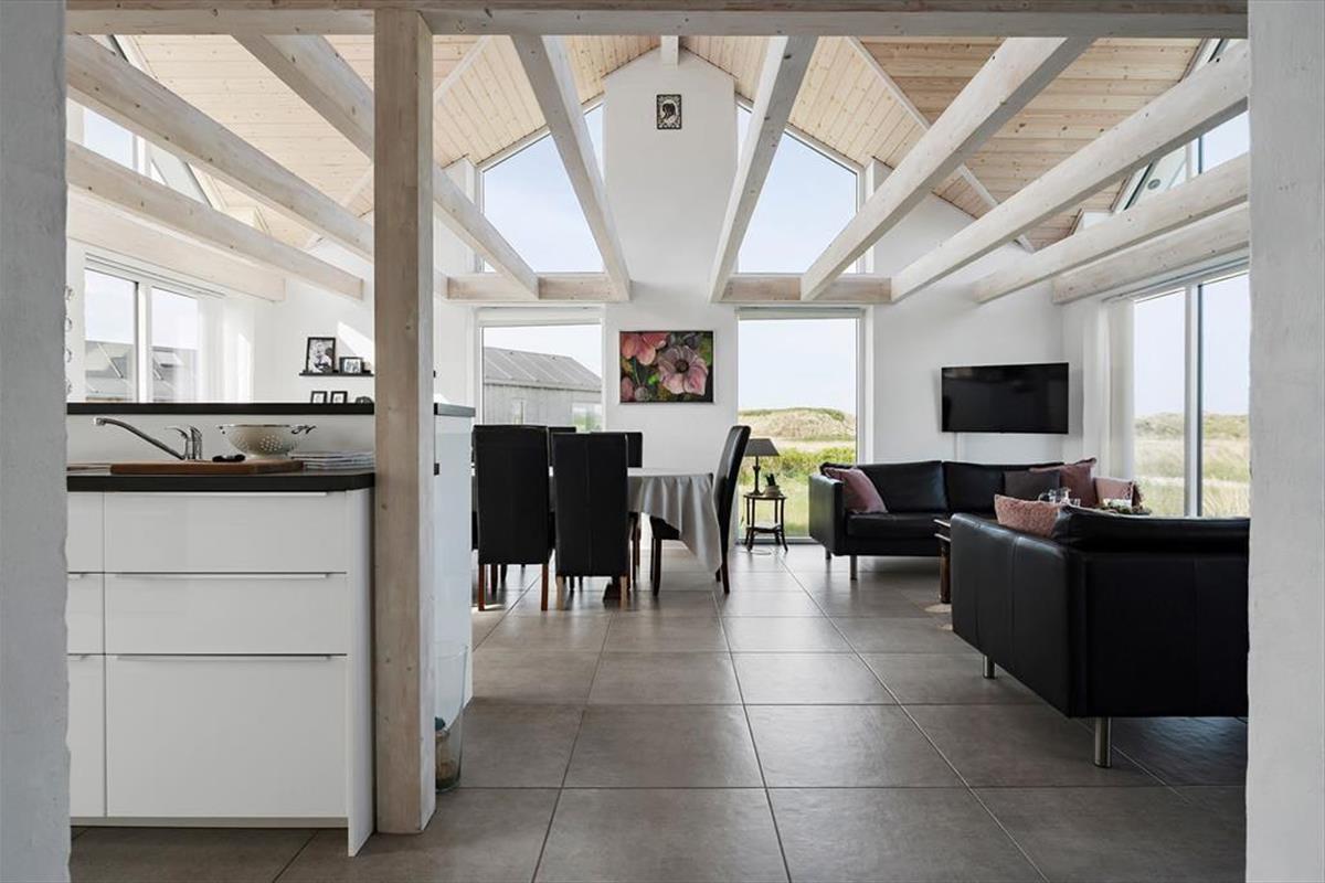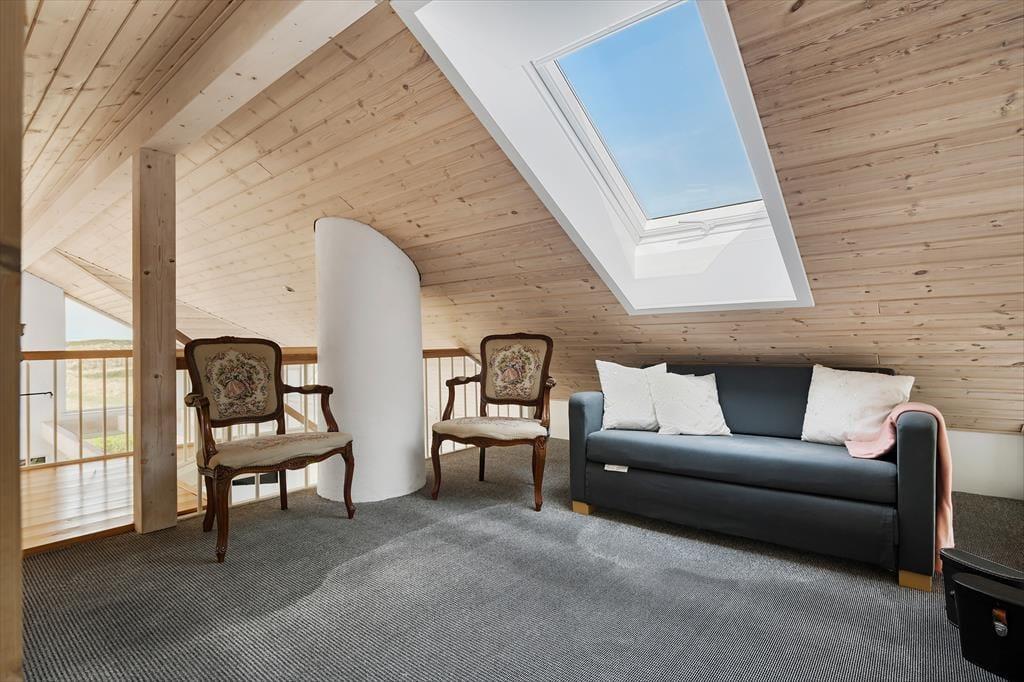 Jomfrubakkerne schlängeln sich durch die wunderschöne Dünenlandschaft direkt bis zum Strand von Løkken und nur einen kurzen Spaziergang vom Zentrum des Badeortes entfernt. Und genau hier, in einer kleinen Sackgasse, finden Sie dieses schöne Ferienhaus für acht Personen, in dem Sie den Blick auf die freie Natur und den kurzen Spaziergang zur Nordsee genießen können.