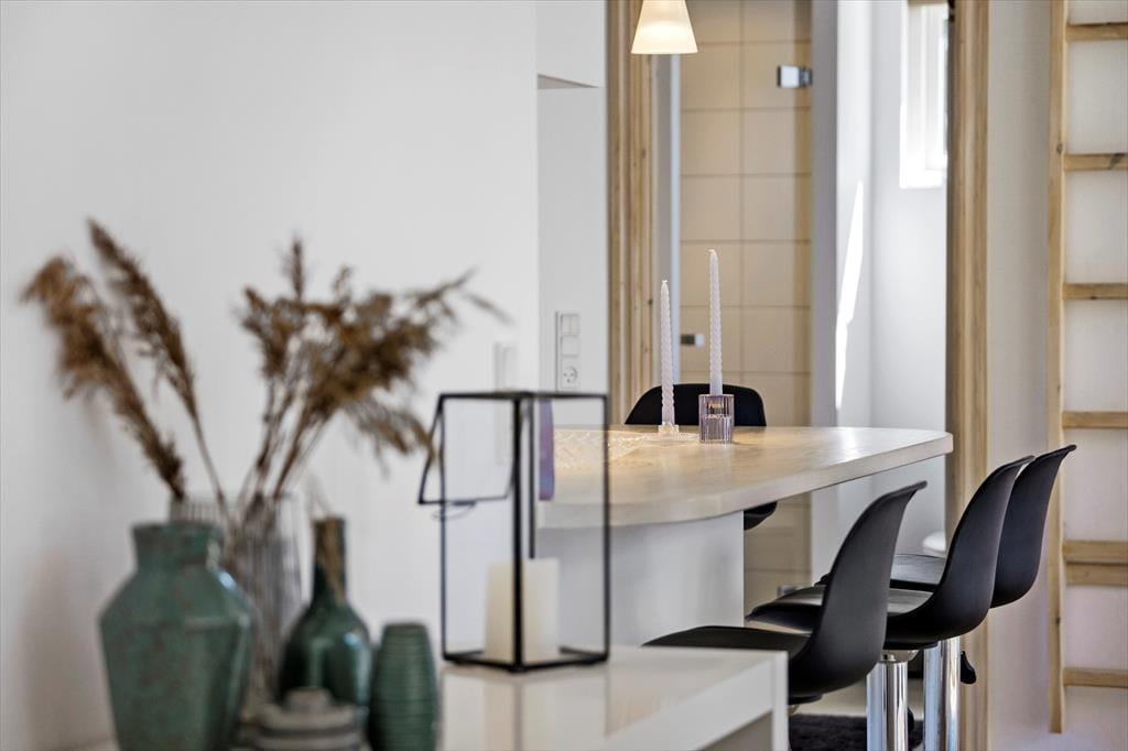 Das 112 m² große, modern eingerichtete Ferienhaus ist eine wunderbare Basis für Familien mit Kindern und alle, die sich entspannen und ihren Urlaub in Ruhe und Frieden genießen möchten. Da es vier Schlafzimmer und zwei Badezimmer gibt, können Sie sogar problemlos die Großeltern oder gute Freunde mit in den Urlaub einladen – dann gibt es vielleicht auch etwas Unterstützung, um die Kinder zu beschäftigen, falls Sie Lust auf eine ruhige Wellnesszeit mit Sauna und Whirlpool haben. Alle können sich am großen Esstisch versammeln, um leckere Mahlzeiten zuzubereiten, die Sie in der gut ausgestatteten Küche kochen können. Dort gibt es übrigens auch eine Theke mit Barhockern, sodass es während des Kochens ein Treffpunkt für diejenigen werden kann, die sich bei einem kühlen Getränk unterhalten möchten. Die Sofaecke im Wohnzimmer ist eine große, gemütliche Leseecke mit Kaminofen und Flachbildfernseher, und die jüngsten Gäste werden wahrscheinlich schnell die Hems lieben, die als ihr kleines privates Aussichtspost fungieren kann.