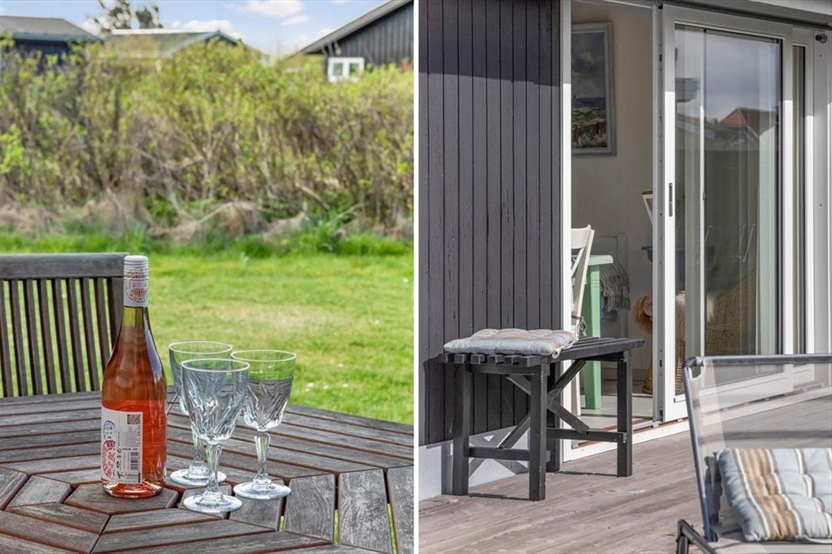 Das Haus bietet mehrere schöne Terrassenbereiche, die Sie bei sonnigem Sommerwetter nutzen können – es liegt an Ihnen, ob Sie sich unter dem Vordach niederlassen, hinter der Abschirmung Schutz vor dem Wind suchen oder auf der großen, offenen Holzterrasse entspannen möchten. Und vielleicht möchten Sie gar nicht sitzen, sondern lieber Purzelbäume schlagen und Gartenspiele auf dem Rasen spielen? Das ist auf jeden Fall möglich, wenn man ein Grundstück von insgesamt 2000 m2 zur Verfügung hat.