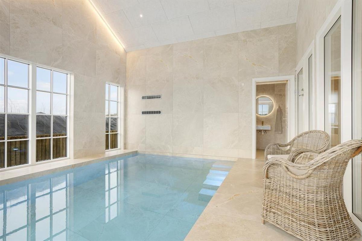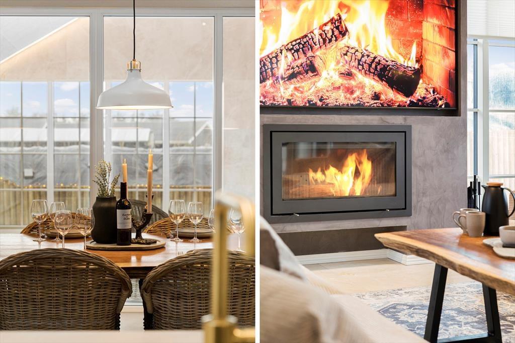 Sobald du dieses luxuriöse Ferienhaus betrittst, ist sofort klar, dass hier mit Liebe zum Detail gearbeitet wurde. Es herrscht eine ganz besondere Atmosphäre, fast wie in einem Badehotel, mit den Messingarmaturen und dem Seegras, das im Wind vor den Sprossenfenstern tanzt. Das Feuer im großen, eingebauten Kamin setzt den letzten, perfekten Akzent in diesem fantastischen Haus, das sich nicht mit einem gewöhnlichen Poolhaus vergleichen lässt.