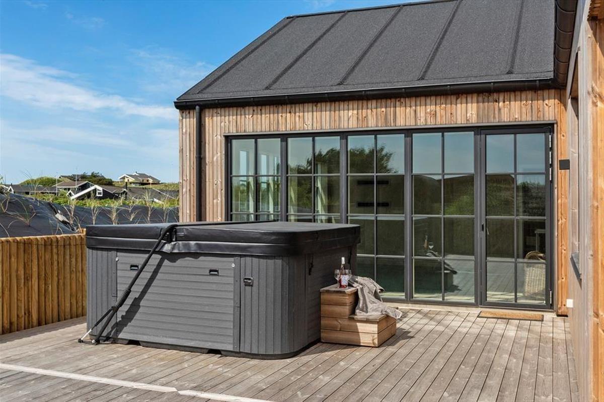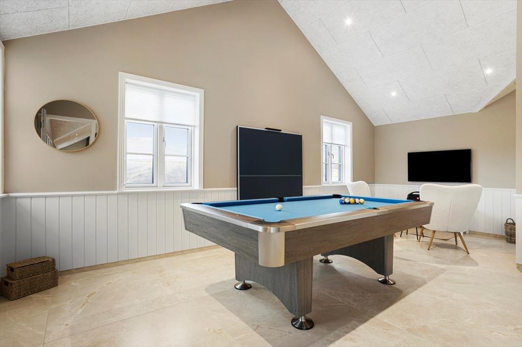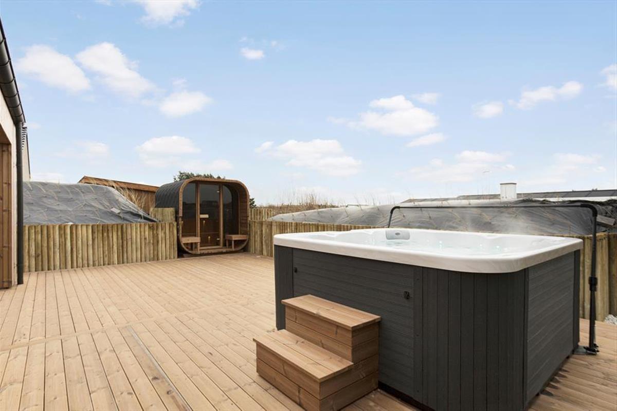 Ein elegantes Wohnzimmer, ein wunderschönes Aktivitätszimmer und Wellness-Einrichtungen wie ein Hallenbad, eine Sauna und ein Outdoor-Whirlpool – und das alles nur 500 Meter vom Løkken Strand entfernt. Das ist nur ein kleiner Teil der vielen Qualitäten, die deinen Urlaub in diesem exklusiven Luxus-Ferienhaus am Kallehave Strand 4 zu einem besonderen Erlebnis machen.