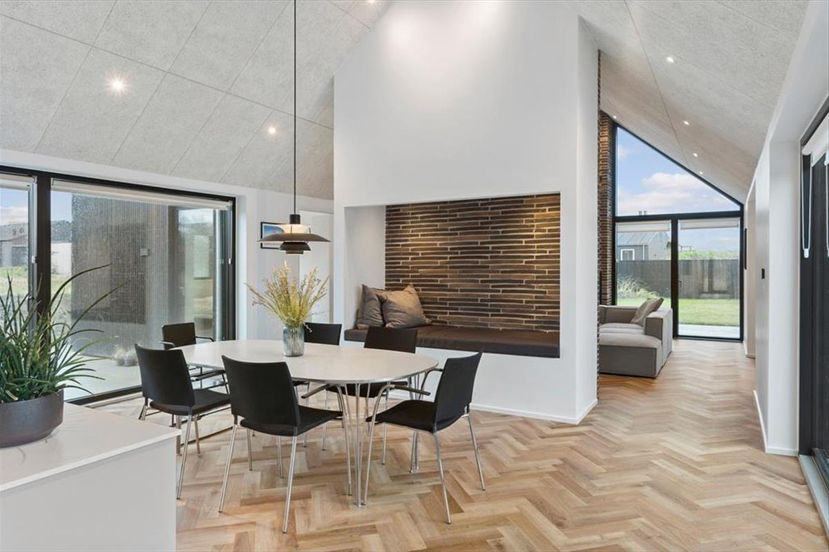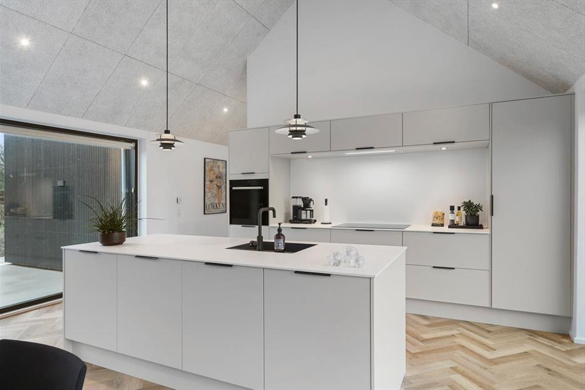 Von Junivej aus sind es nur wenige Minuten zu Fuß bis zur Küste. Egal, ob Sie den Sonnenuntergang vom Rand der Dünen aus bewundern oder an den Strand gehen möchten, um zu schwimmen und Sandburgen zu bauen, Sie sind schnell am Ziel. Für einen gemütlichen Spaziergang folgen Sie den Reihen weißer Badehäuser in Richtung Løkken Pier - und vielleicht haben Sie das Glück, gerade dann anzukommen, wenn das Boot mit frisch gefangenem Fisch oder Krabbenscheren einläuft. Das Ferienhaus liegt auch nur wenige Gehminuten von Løkkens charmantem Stadtzentrum entfernt, so dass eine gute Tasse Kaffee, ein Besuch in einer Galerie oder ein Mittagessen in einem Restaurant nie weit entfernt ist.