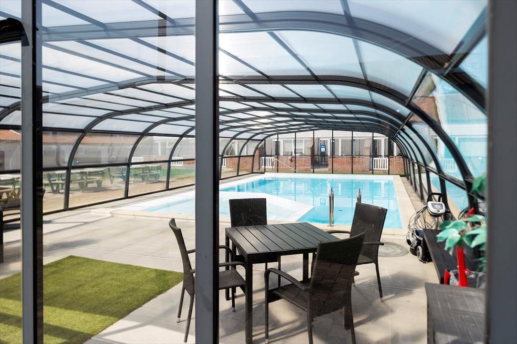 Vom Wohnraum gelangst du hinaus auf die nach Süden gerichtete Terrasse, die bei schönem Wetter schnell zu deinem Lieblingsplatz avancieren wird. Hier kannst du nicht nur die Sonne genießen, sondern wirst auch mit dem Duft der wenige Meter entfernt blühenden Heckenrosen verwöhnt. Vor der Eingangstür deines Reihenhauses erstreckt sich ein Gemeinschaftsareal, das grüne Flächen und gepflasterte Bereiche mit Picknickgarnituren bietet. Das Beste ist allerdings der überdachte Swimmingpool, den du frei nutzen kannst. Beachte bitte, dass der Pool nicht beheizt ist und lediglich von Ostern bis ungefähr zur 42. Kalenderwoche zur Verfügung steht.