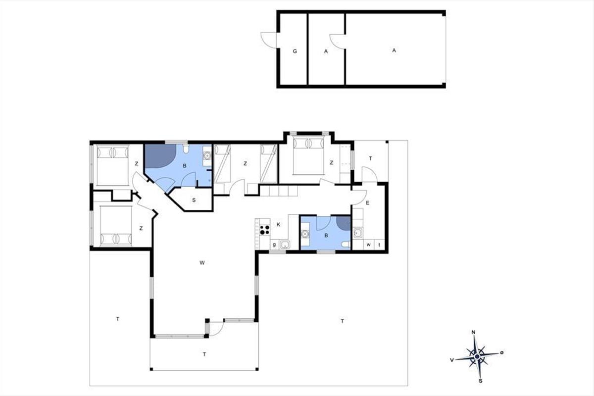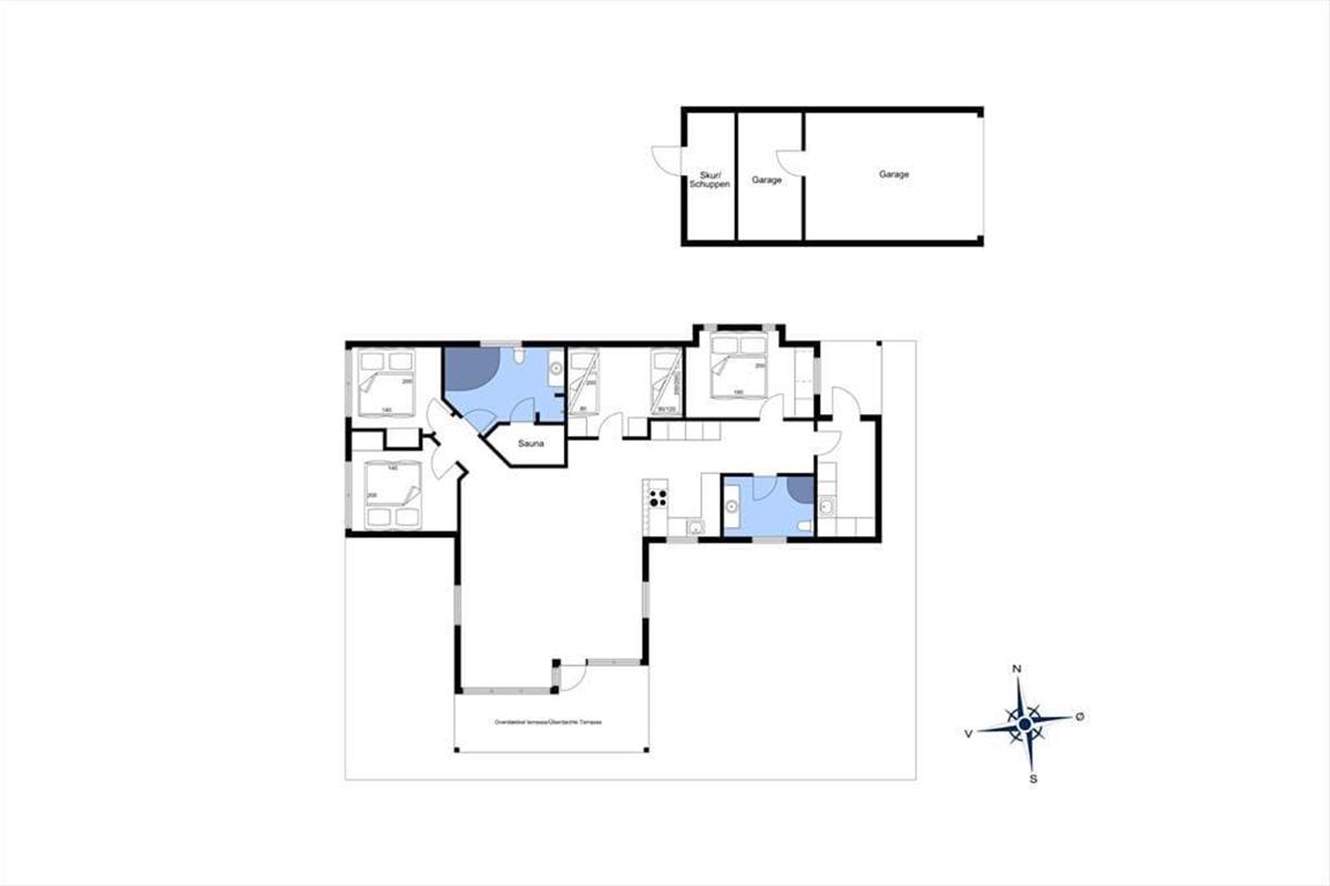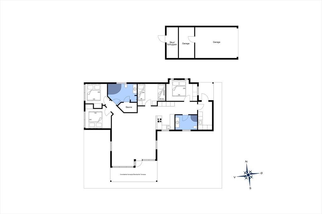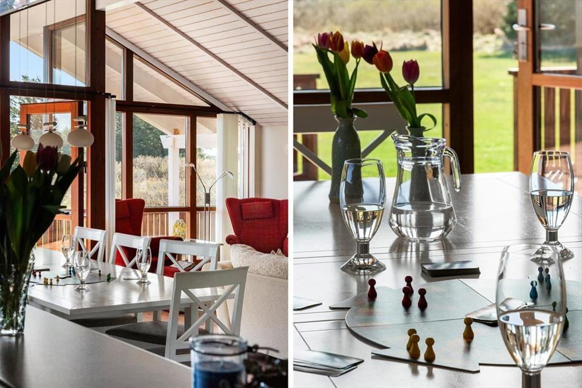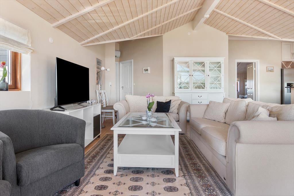 Dieses moderne Ferienhaus ist hell und einladend mit hohen Decken und großen Fensterfronten, die den ganzen Tag über für einen schönen Lichteinfall sorgen. Der Grundriss ist praktisch und gut durchdacht, mit viel Platz für die ganze Familie. Wohnzimmer und Küche sind in einem offenen Wohnbereich integriert, sodass Sie sich beim Kochen und bei gemütlichen Gesprächen am Esstisch oder vor dem Kamin versammeln können. Die drei geräumigen Schlafzimmer bieten Platz für acht Personen. Das Haus verfügt außerdem über zwei Badezimmer und einen praktischen Hauswirtschaftsraum.