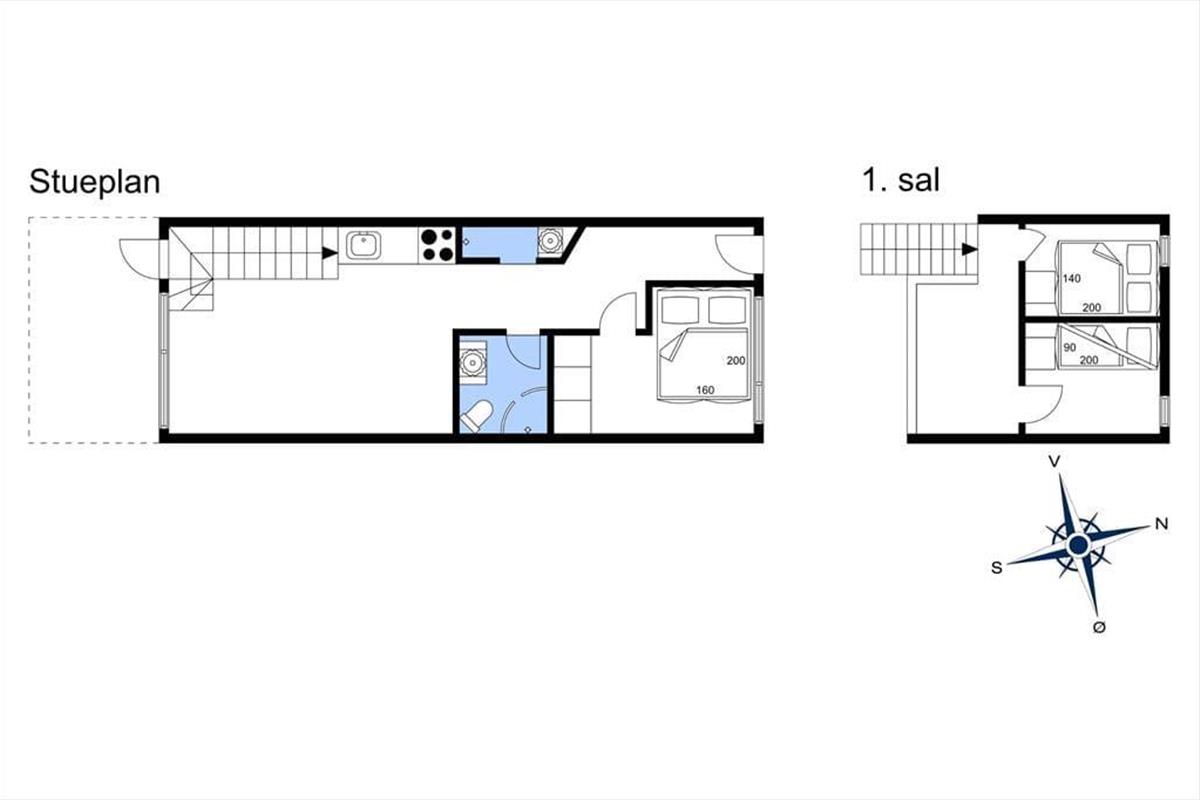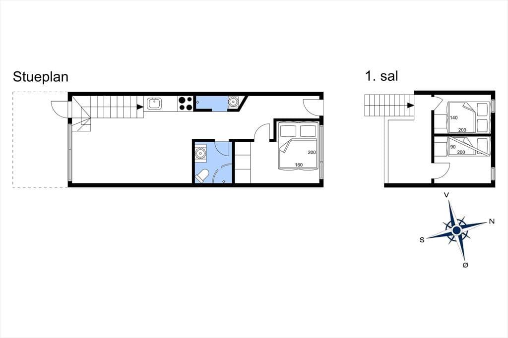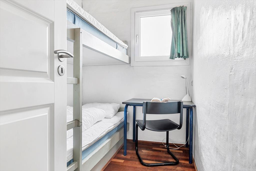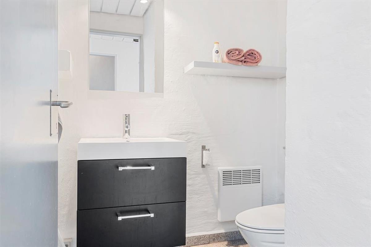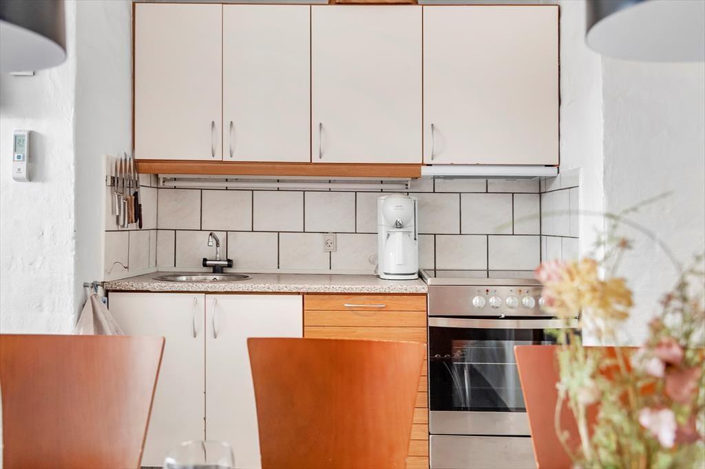 Wenn du so nah an sowohl dem Stadtzentrum als auch dem Strand von Løkken wohnst, können Badeausflüge, Shopping, Galeriebesuche und Surfen sicher schnell einen großen Teil der Zeit ausfüllen – aber es ist auch verlockend, einfach zuhause im Ferienhaus zu entspannen. Der Grundriss erstreckt sich über zwei Etagen, und zwei der Schlafzimmer befinden sich im ersten Stock, während das dritte im Erdgeschoss direkt beim Eingang liegt. Das Badezimmer ist aufgeteilt, sodass es ein separates Bad und WC gibt, und eine kleine, aber funktionale Küche ist in das Wohnzimmer integriert, sodass es einfach ist, schnell mehr Kaffee zu machen oder mit der Vorbereitung des Abendessens zu beginnen. Sowohl der Esstisch als auch der Sofabereich sind gemütliche Orte zum Versammeln, und wenn du eine ruhige Minute brauchst, kannst du dich mit einem guten Buch in einem Sessel auf dem Treppenabsatz im ersten Stock niederlassen.