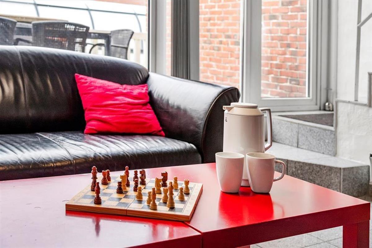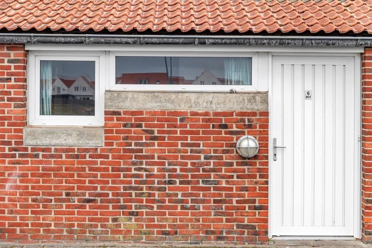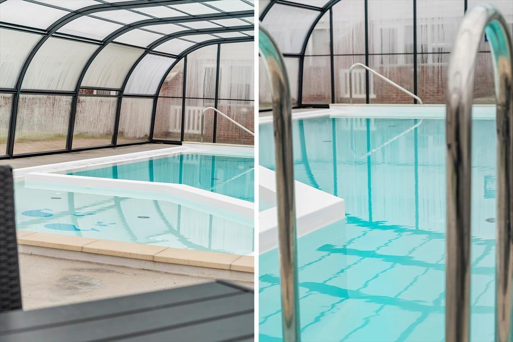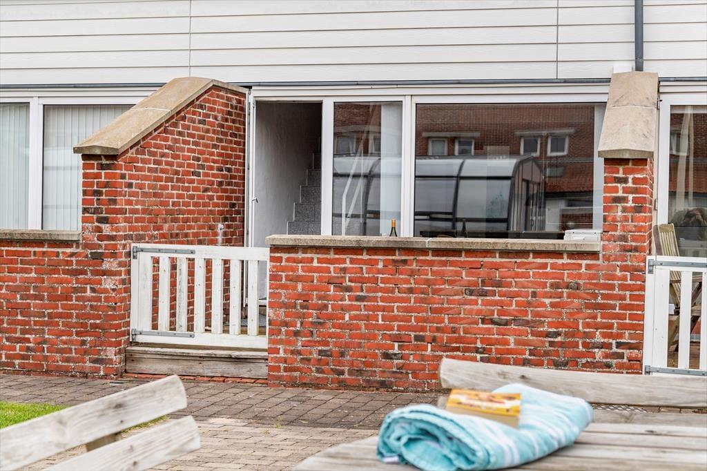 Vom Wohnzimmer aus hast du direkten Zugang zu einer schönen Terrasse, auf der du die kleinen und großen Mahlzeiten des Sommers mit Blick auf die ziehenden Wolken am Himmel einnehmen kannst. Die Terrasse wendet sich der gemeinsamen Hofanlage der Reihenhausbebauung zu, sodass es hier ziemlich ruhig ist, wenn du den ganzen Vormittag verweilen und Kreuzworträtsel lösen oder Eiskaffee in der Sonne trinken möchtest. Im Hof gibt es grasbewachsene Flächen und gepflasterte Bereiche mit Tisch-Bank-Sets, aber das Beste ist das überdachte Schwimmbad, wo du Bahnen schwimmen oder einen belebenden Sprung ins Wasser machen kannst, wenn du von den Tagesausflügen zurückkehrst. Beachte, dass der Pool unbeheizt ist und frei genutzt werden kann von etwa Ostern bis etwa Woche 42.