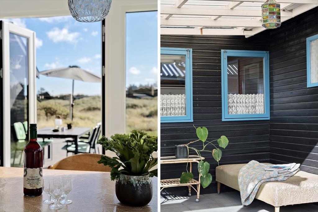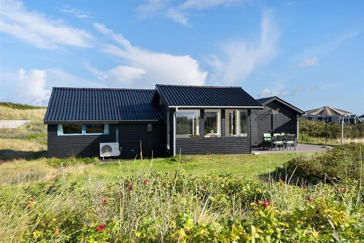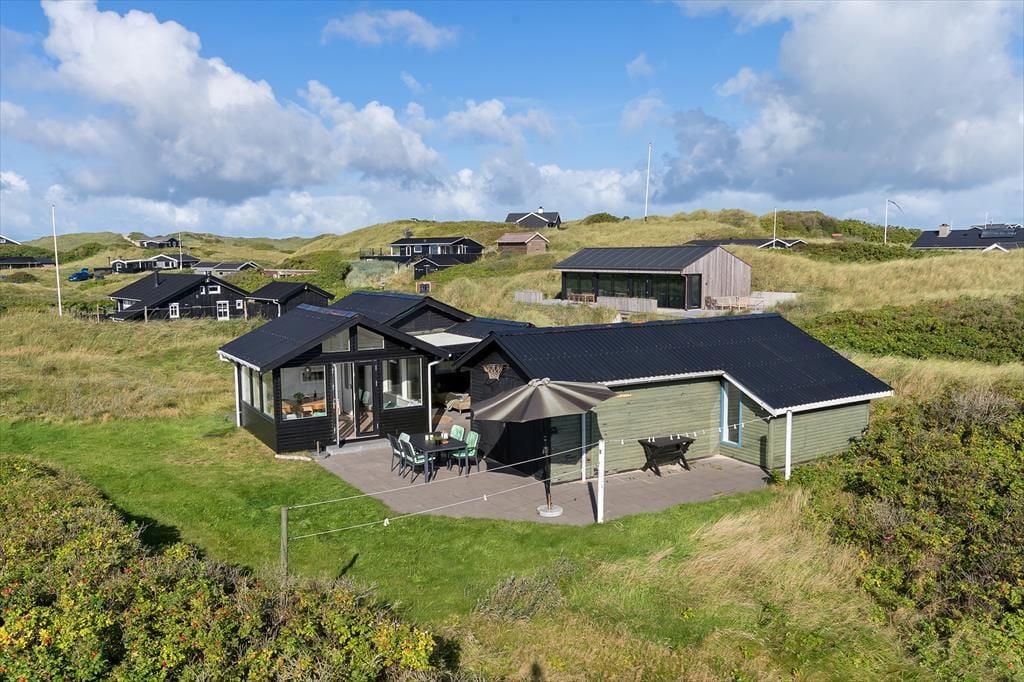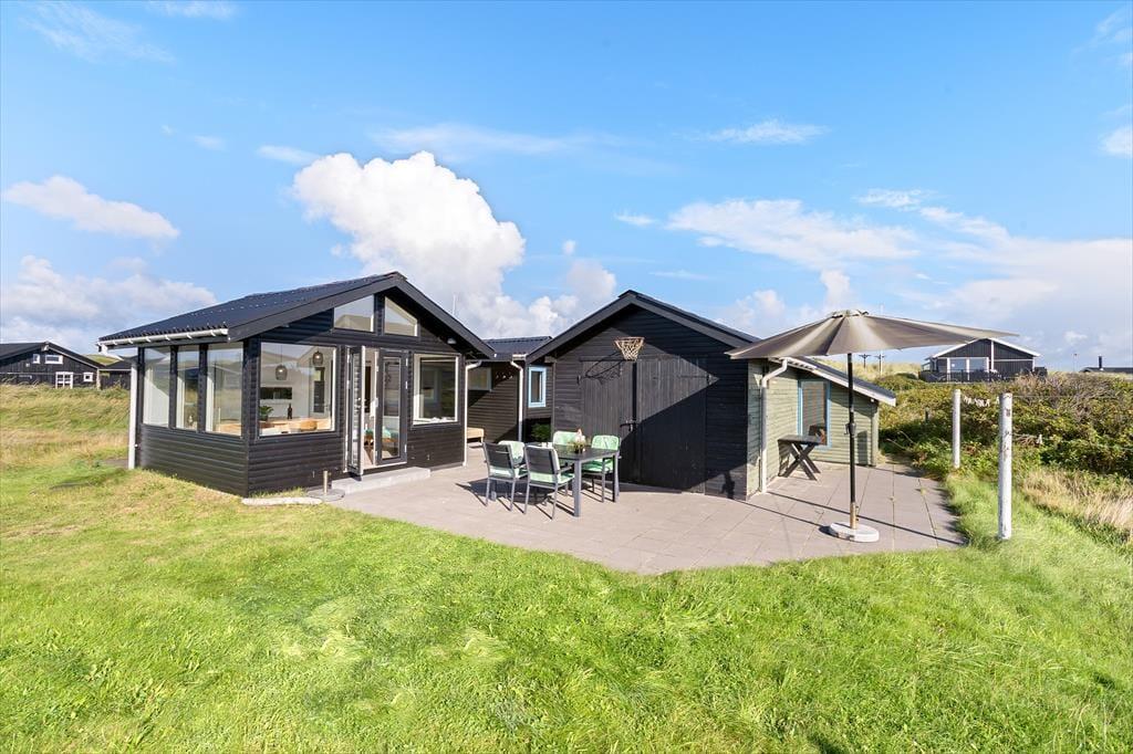 Das Ferienhaus liegt auf einem großen Naturgrundstück, das viel Platz für Spiel, Entspannung und Aktivitäten im Freien bietet. Hier kannst du dich einfach zurücklehnen und dem Rauschen des Windes lauschen. Auf der Terrasse kannst du dich in einem Liegestuhl entspannen, den Blick auf den naturnahen Garten genießen oder das Abendessen auf dem Grill zubereiten, während die Sonne über der Landschaft untergeht. Die Terrasse ist in drei Bereiche unterteilt, sodass du selbst entscheiden kannst, ob du die Sonne oder den Schatten genießen möchtest.