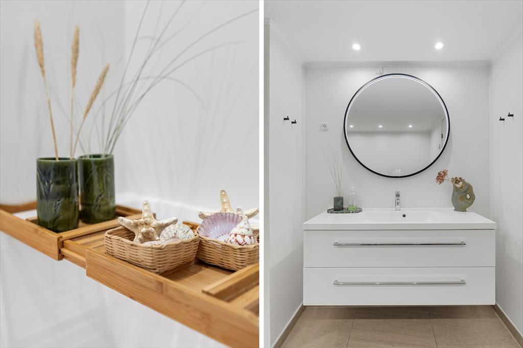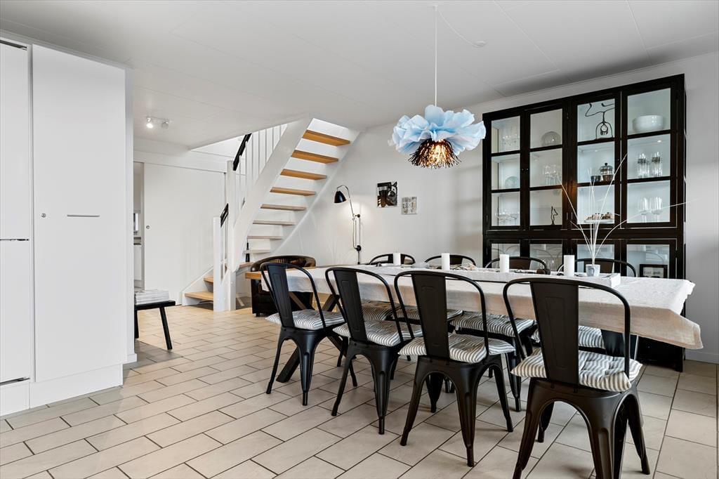 Die Ferienhaus ist sowohl auf Komfort als auch auf Gemütlichkeit ausgelegt. Im Erdgeschoss befindet sich ein heller und geräumiger Wohnbereich mit großen Fensterfronten, die das Tageslicht hereinlassen und eine angenehme Atmosphäre schaffen. Die Fußbodenheizung sorgt an kühlen Tagen für warme Füße, und die offene Küche ist voll ausgestattet, sodass du mühelos leckere Mahlzeiten mit frischen, lokalen Zutaten zubereiten kannst – vielleicht sogar mit frischem Fisch direkt aus dem nahegelegenen Meer. Das Badezimmer der Wohnung wurde renoviert und lädt mit seiner eleganten Badewanne zu Entspannung und Erholung ein, während der Stress des Alltags von dir abfällt. Für den praktischen Bedarf der Familie steht dir außerdem ein Hauswirtschaftsraum mit Waschmaschine und Trockner zur Verfügung. Über eine Leiter gelangst du auf den gemütlichen Schlafboden, der zusätzlich Platz für große und kleine Feriengäste bietet.