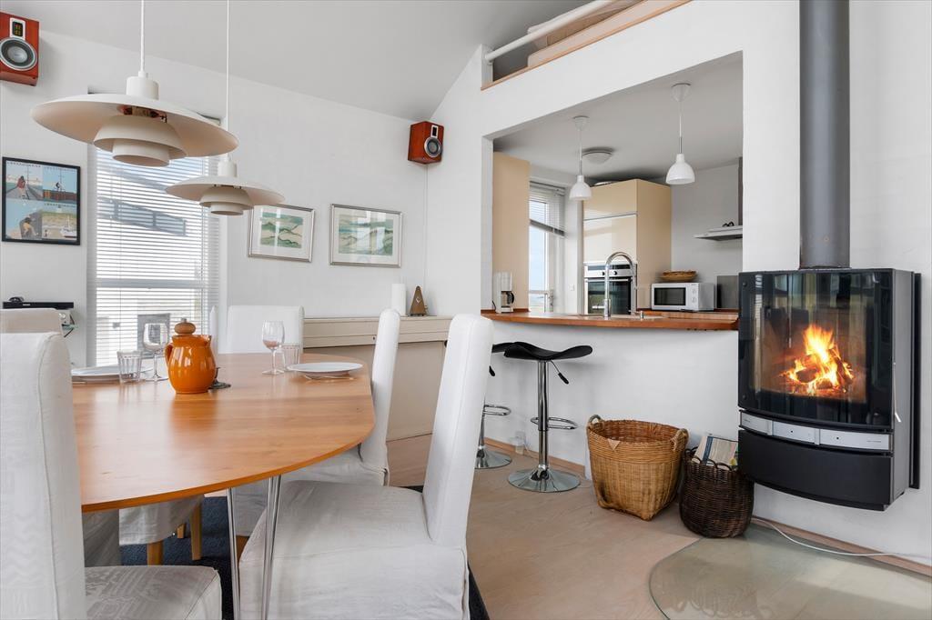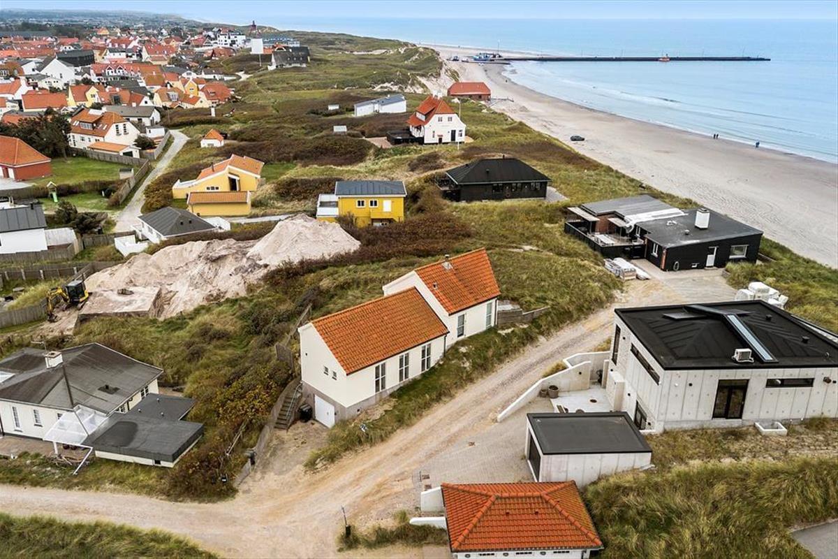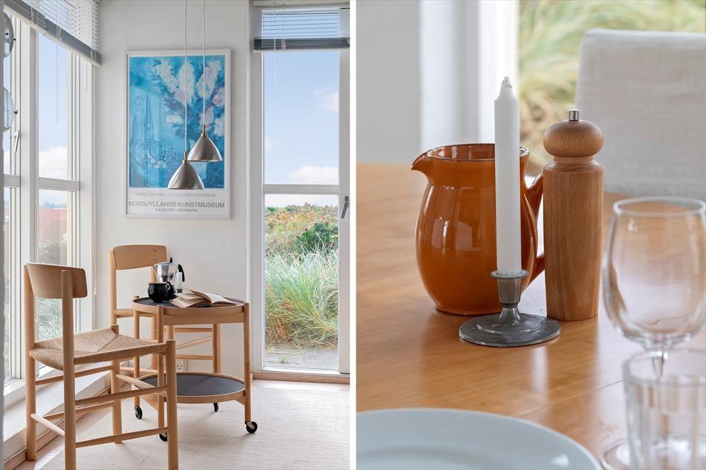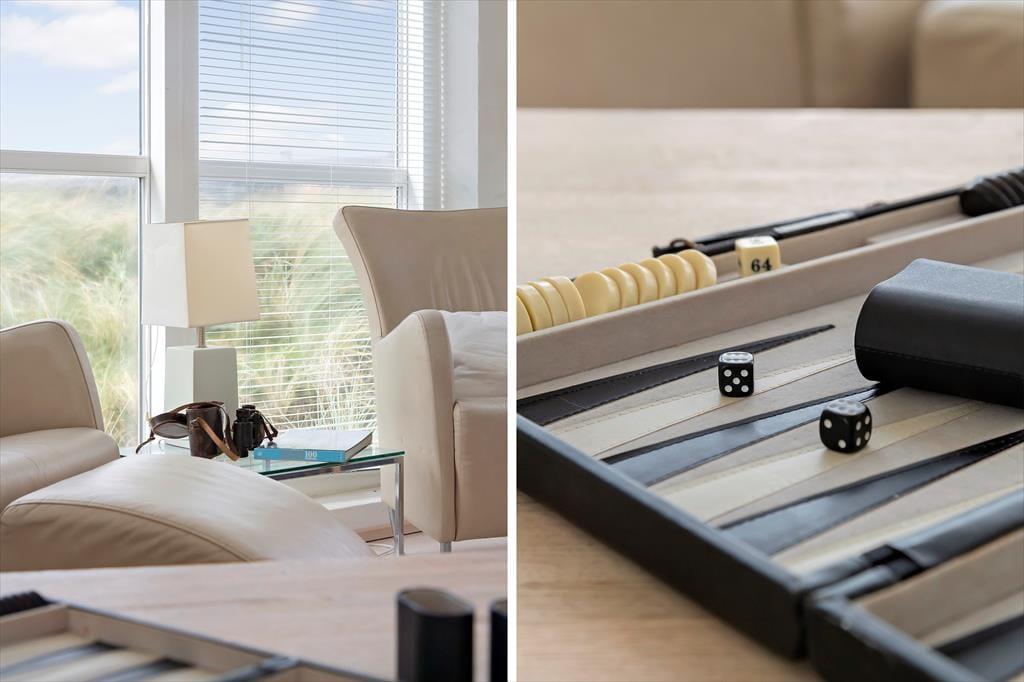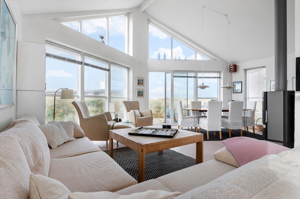 Drinnen erwartet dich ein helles und modernes Ambiente, in dem sich die ganze Familie sofort wohlfühlt. Das Herz des Hauses ist der offene Übergang zwischen Küche und Wohnzimmer, der zu gemütlichem Beisammensein einlädt – ob beim Morgenkaffee oder einem hausgemachten Abendessen. Durch die großen Fenster fällt reichlich Licht ein, und du kannst den Blick auf Dünen und Meer genießen, während das Feuer im Kamin knistert. Das Haus verfügt über drei komfortable Schlafzimmer, die sowohl praktisch als auch geschmackvoll eingerichtet sind. Ein stilvolles Badezimmer und ein zusätzliches Bad im Keller bieten Komfort für alle.