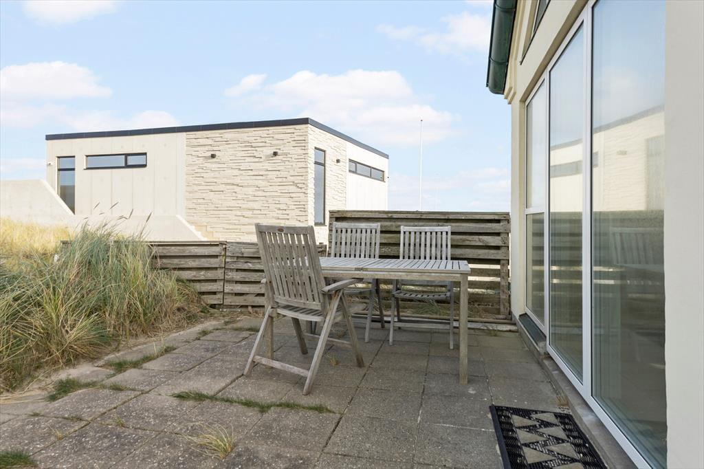Die großzügigen Terrassen rund ums Haus sind der perfekte Ort für erholsame Ferientage unter freiem Himmel. Beginne den Tag mit einer frischen Meeresbrise und dem Sonnenaufgang oder beende ihn mit einem köstlichen Grillabend, während die Sonne am Horizont untergeht. Mit sowohl geschützten als auch sonnigen Ecken laden die Terrassen dazu ein, die Seele baumeln zu lassen – ob bei einem guten Buch oder einfach nur bei dem beruhigenden Klang der Wellen. Dank der Lage sind die umliegende Natur und der Strand nur einen kurzen Spaziergang entfernt.