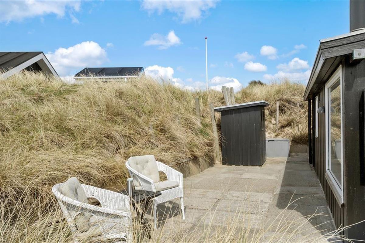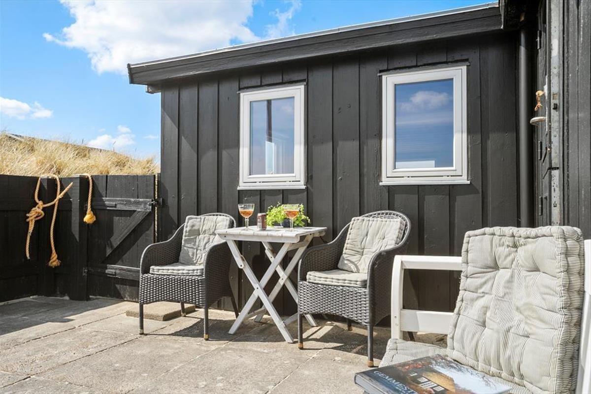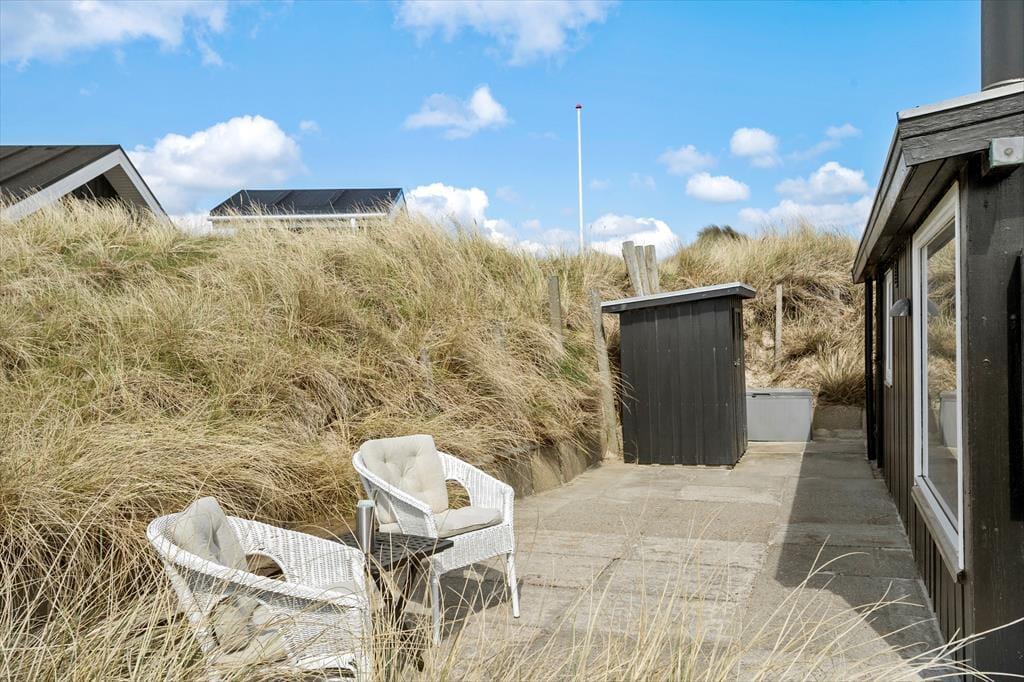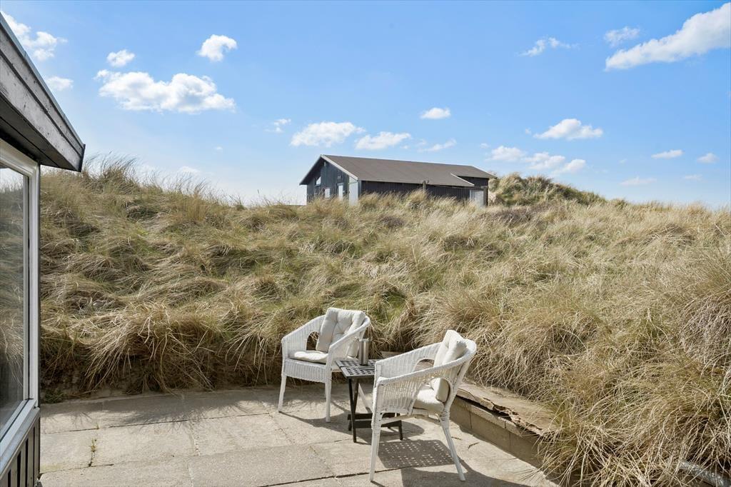 Draußen erwarten dich mehrere sonnige Ecken, in denen du das Leben in der Sonne genießen oder an heißen Sommertagen Schatten finden kannst. Von der Terrasse hast du Blick auf die Dünen, und das Rauschen des Meeres erinnert daran, wie nah du hier der Natur bist. Auf den gemütlichen Terrassen kannst du mit einem guten Buch entspannen, die Kinder im Garten spielen lassen oder abends beim Grillen die Sonne über die nordjütländische Landschaft untergehen sehen. Hier in Bentevej ist Platz sowohl für Aktivität als auch für Ruhe – genau so, wie ein Urlaub an der Nordsee sein sollte.