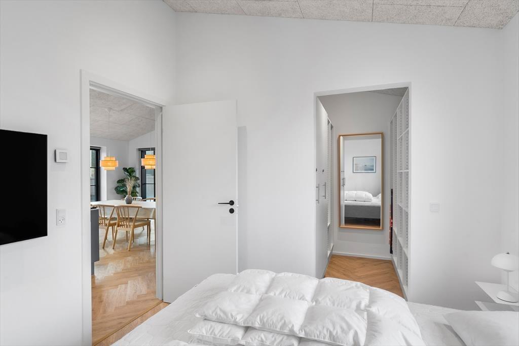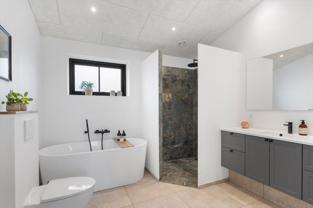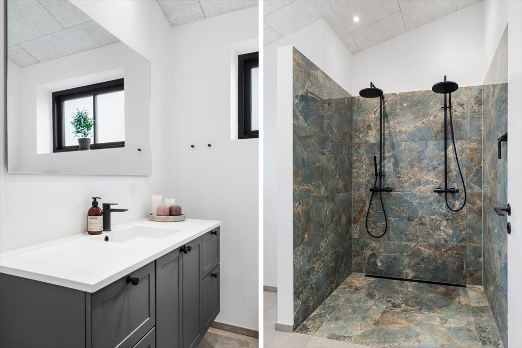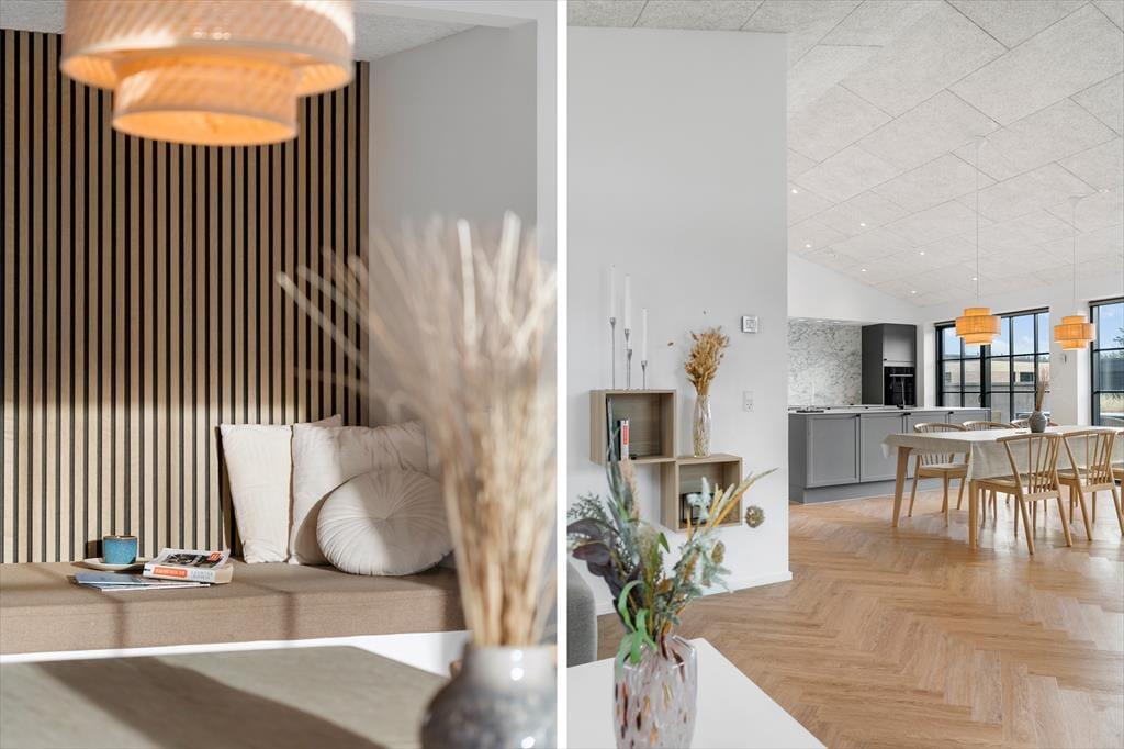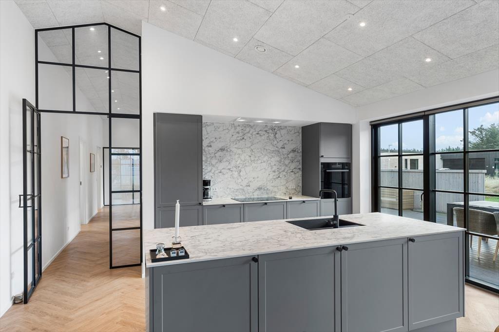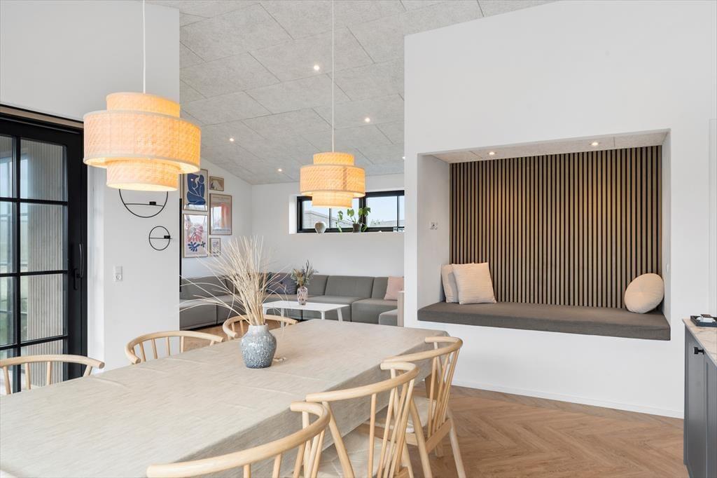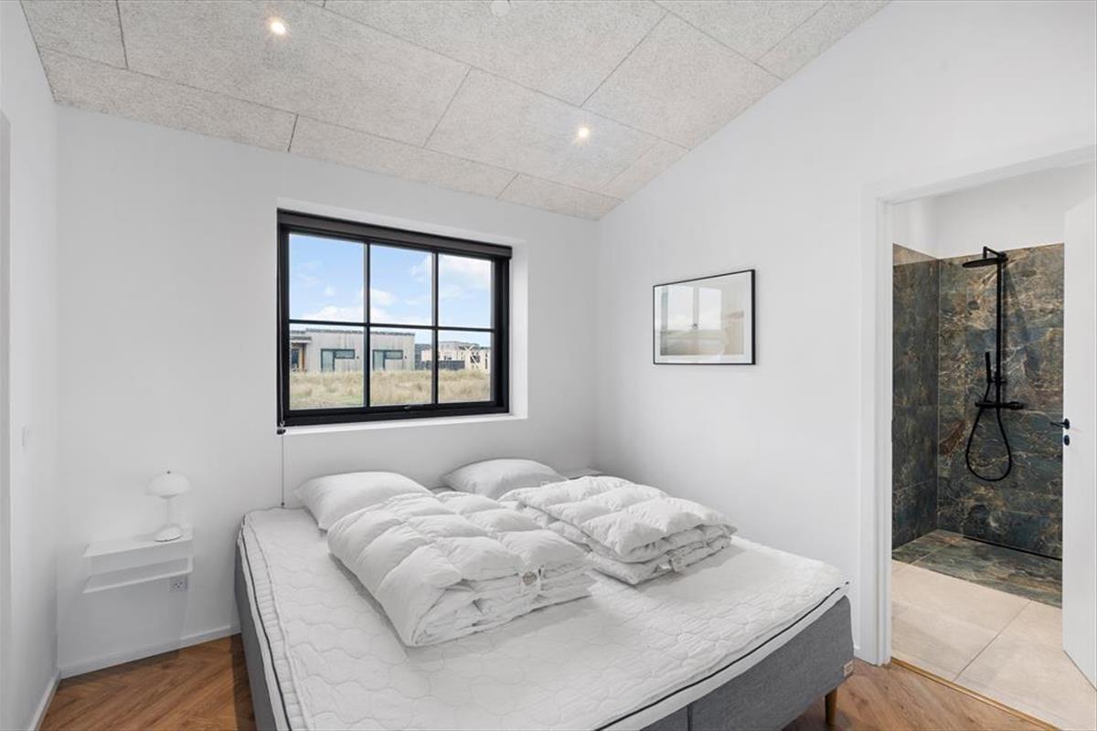 Beim Betreten dieses modernen Ferienhauses wirst du von einem hellen und offenen Wohnbereich begrüßt, in dem sowohl Stil als auch Funktionalität im Vordergrund stehen. Die Küche ist offen mit dem Wohnzimmer verbunden, was sie perfekt für gemeinsames Kochen und gemütliche Stunden macht. Hier kannst du leckere Mahlzeiten zubereiten und gleichzeitig die Gespräche im geräumigen Wohnzimmer genießen, das von großen Fenstern durchflutet wird. Im Wohnzimmer befindet sich auch eine einladende Alkove, die sich perfekt zum Entspannen mit einem guten Buch oder einfach zum Genießen der Aussicht eignet. Das Ferienhaus verfügt über drei geschmackvoll eingerichtete Schlafzimmer und zwei moderne Badezimmer, die ausreichend Platz bieten, damit die Familie zusammen entspannen und Zeit genießen kann. Beide Badezimmer bieten Komfort und Funktionalität, damit du den Tag in Ruhe beginnen kannst.