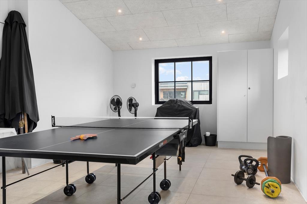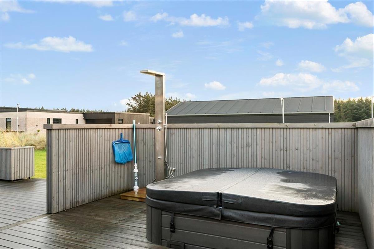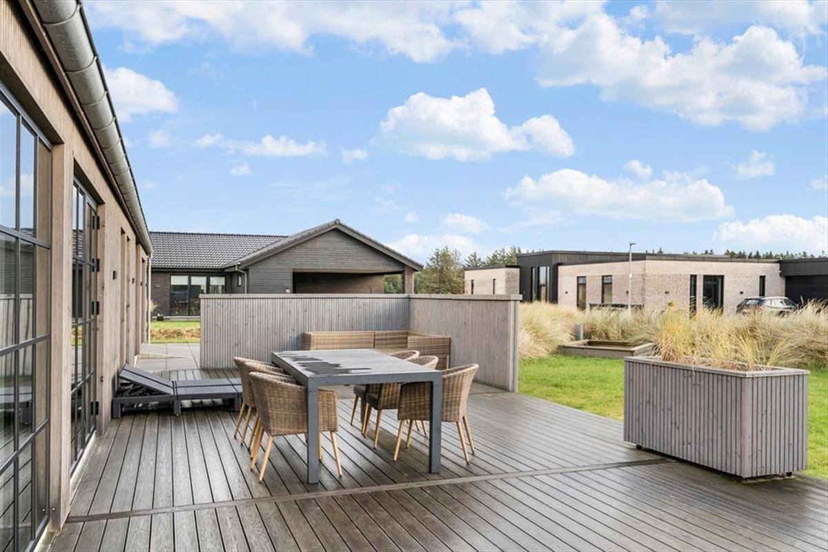 Vom Wohnzimmer und der Küche hast du direkten Zugang zu den großen, luxuriösen Terrassen, die perfekt sind, um die Sonne und die frische Luft zu genießen. Es gibt viel Platz zum Entspannen und für gemütliche Mahlzeiten unter freiem Himmel. Eine der besonderen Annehmlichkeiten ist der Außen-Whirlpool, der dir die Möglichkeit gibt, dich nach einem aktiven Tag zu entspannen und vollkommen zu verwöhnen. Der Standort des Ferienhauses bietet zudem eine hervorragende Möglichkeit, die Natur in vollen Zügen zu erleben – die Terrassen sind gut abgeschirmt, sodass du sowohl Sonne als auch Schatten genießen kannst. Für Familien mit Kindern gibt es auch Platz zum Spielen im Garten, und wenn du etwas mehr Unterhaltung möchtest, gibt es im Ferienhaus ein Spielzimmer in der Garage, wo sowohl Kinder als auch Erwachsene Spaß haben können.