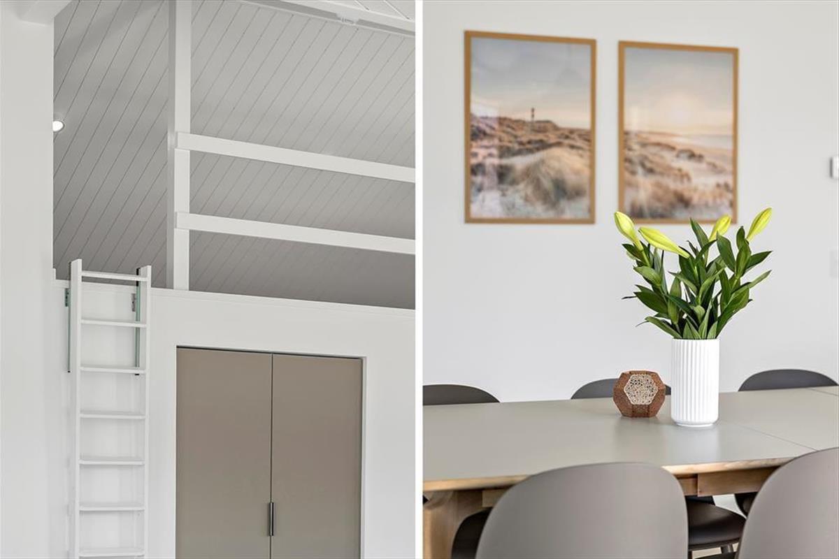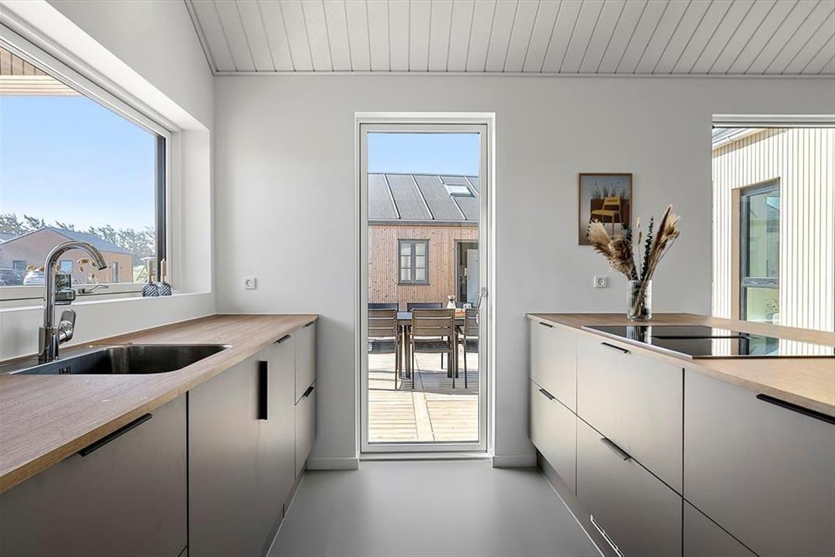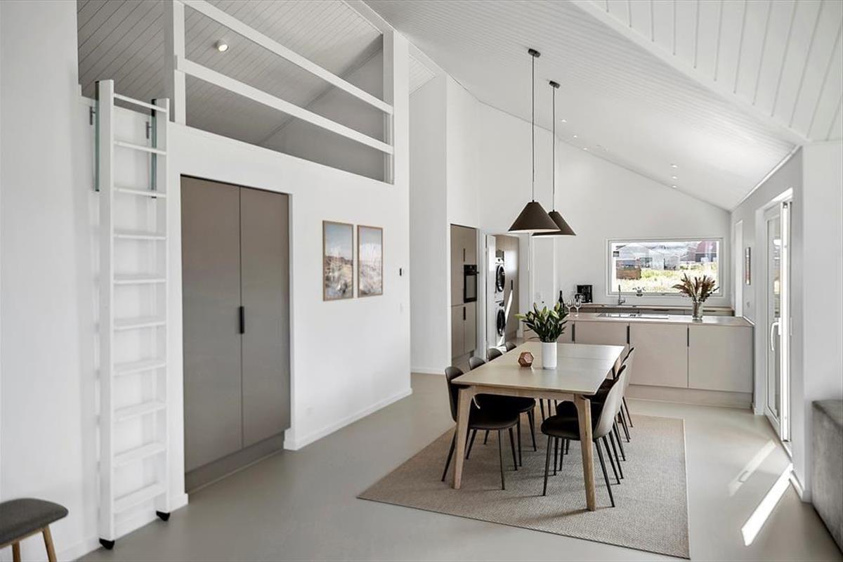 Wenn du Kallehave Strand 2 betrittst, wirst du von einem hellen und einladenden Interieur empfangen. Das gesamte Haus ist in hoher Qualität gebaut, und die großen Fenster lassen das Licht in die offenen Räume strömen. Die Küche ist in das Wohnzimmer integriert, was es ermöglicht, sowohl gesellig zu sein als auch sich in der Zubereitung von Mahlzeiten zu vertiefen. Vom Wohnzimmer aus kannst du über die naturschönen Dünen blicken, die als wunderschöne Kulisse für das moderne Heim dienen. Mit einer Decke bis zum First und vier großen Schlafzimmern bekommst du sowohl Platz als auch Atmosphäre. Die beiden stilvollen Badezimmer machen es einfach, mit mehreren Personen dort zu sein, und du wirst sofort das Gefühl von Luxus und Ruhe erleben, wenn du die Räume betrittst.