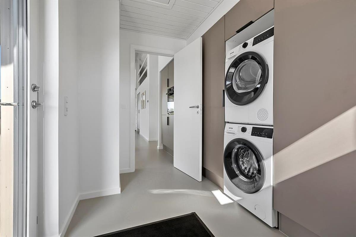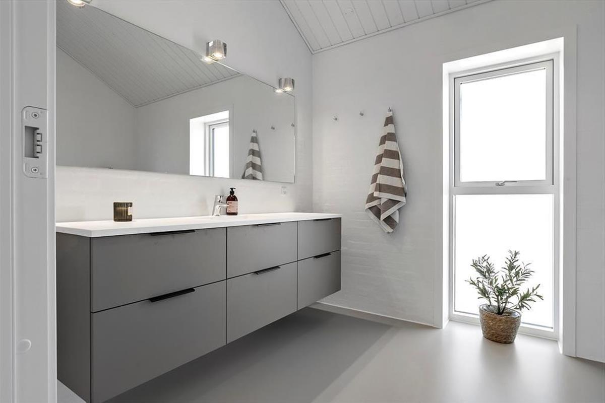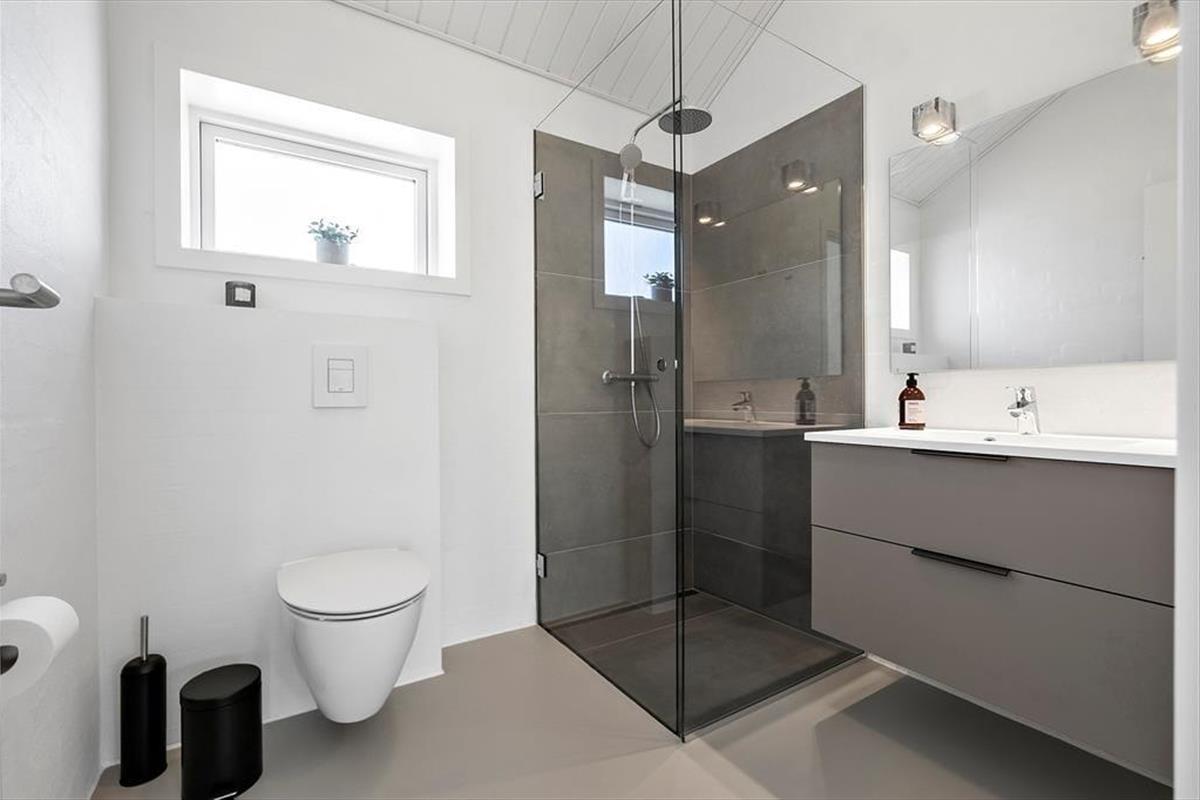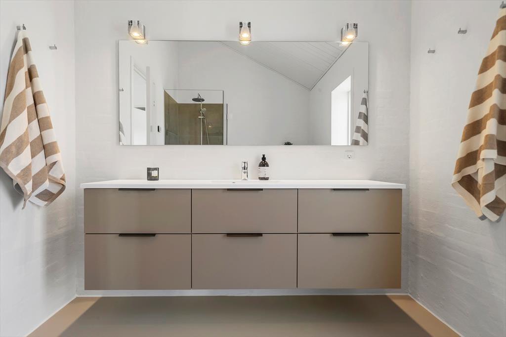 Wenn du Kallehave Strand 2 betrittst, wirst du von einem hellen und einladenden Interieur empfangen. Das gesamte Haus ist in hoher Qualität gebaut, und die großen Fenster lassen das Licht in die offenen Räume strömen. Die Küche ist in das Wohnzimmer integriert, was es ermöglicht, sowohl gesellig zu sein als auch sich in der Zubereitung von Mahlzeiten zu vertiefen. Vom Wohnzimmer aus kannst du über die naturschönen Dünen blicken, die als wunderschöne Kulisse für das moderne Heim dienen. Mit einer Decke bis zum First und vier großen Schlafzimmern bekommst du sowohl Platz als auch Atmosphäre. Die beiden stilvollen Badezimmer machen es einfach, mit mehreren Personen dort zu sein, und du wirst sofort das Gefühl von Luxus und Ruhe erleben, wenn du die Räume betrittst.