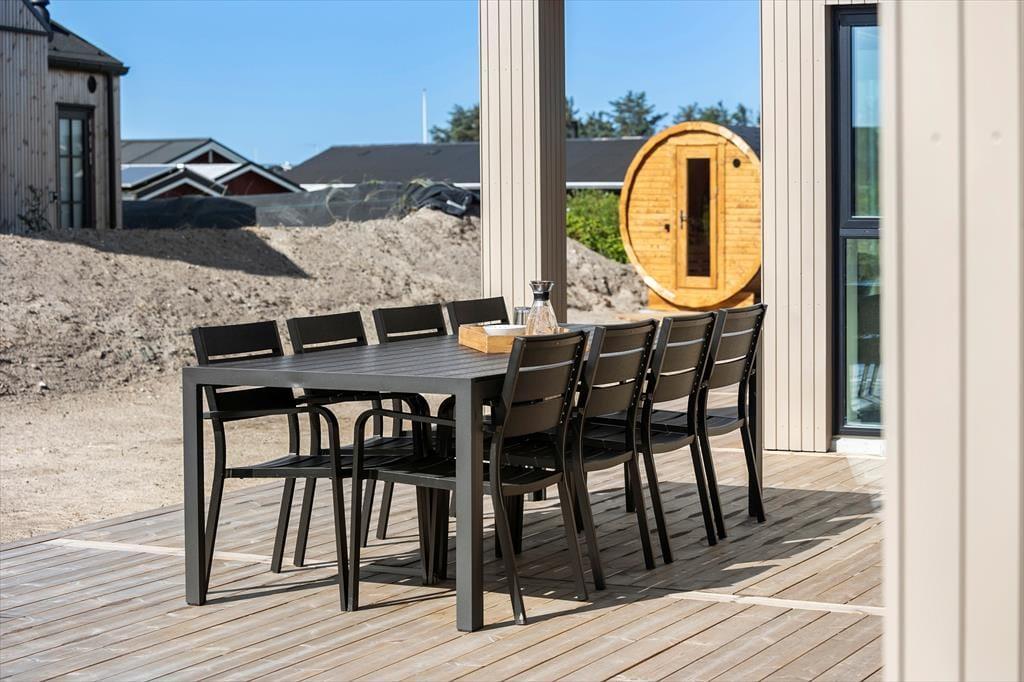 Die große Terrasse ist eines der absoluten Highlights des Hauses, auf der du den ganzen Tag die Sonne genießen kannst. Egal, ob du dich im überdachten Teil der Terrasse entspannst oder die Sonne im offenen Bereich suchst, sie ist der perfekte Ort, um die warmen Sommerabende zu genießen. Die Kinder können auf dem Rasen spielen, während du leckere Mahlzeiten auf dem Grill zubereitest, und wenn die Dunkelheit hereinbricht, gibt es nichts Schöneres, als bei einem Glas Wein unter den Sternen zusammenzukommen, während du das Außen-Whirlpool ebenfalls nutzen kannst. Da die Terrasse direkt am Haus liegt, kannst du die beste Aussicht genießen und gleichzeitig in der Nähe des einladenden Zuhauses bleiben.