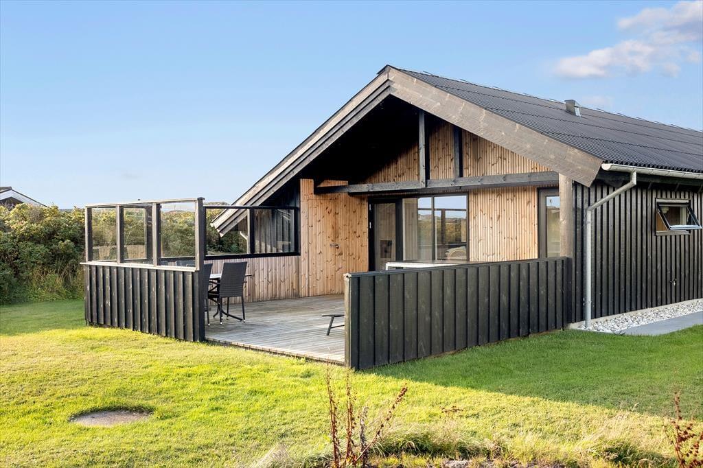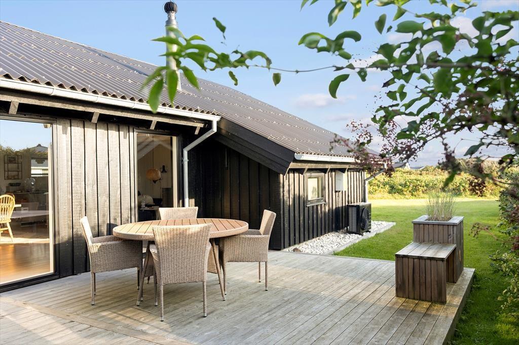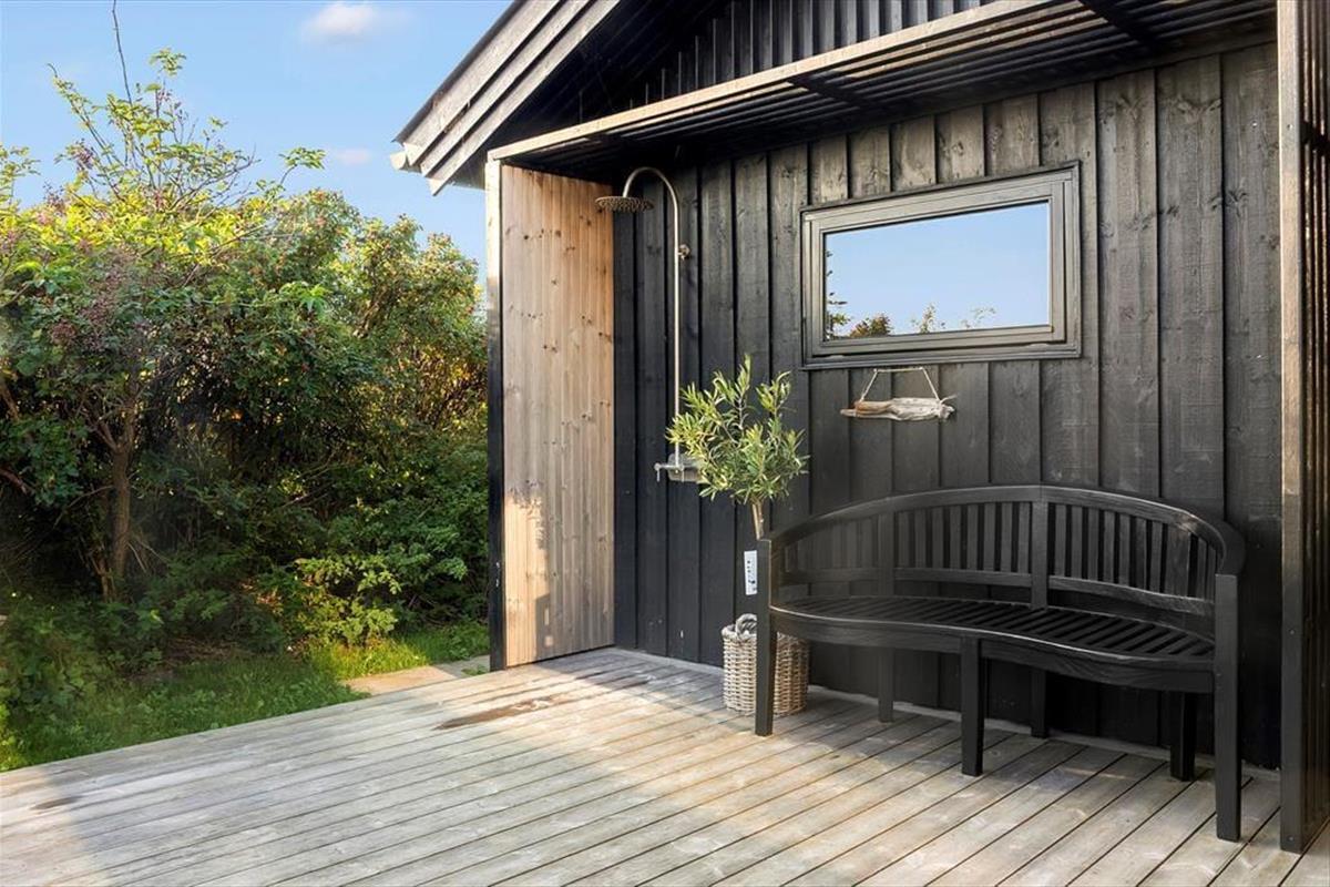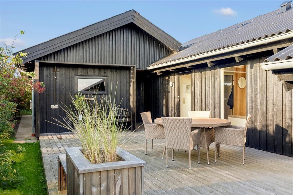 Wenn die Sonne scheint, zieht das Leben natürlich auf die Terrasse des Hauses. Hier kannst du das Frühstück in der frischen Meeresluft genießen und den Vögeln lauschen, die im Hintergrund singen. Vielleicht wird die Terrasse schnell zu einem Ort für Spiele, Lachen und Grillen – oder einfach ein Ort, um sich zurückzulehnen und die Gedanken schweifen zu lassen. Nach einem Tag am Strand ist es ideal, den Sand und das Salz unter der Außendusche abzuwaschen – ein kleiner Luxus, der die Strandtage noch besser macht. Das Grundstück rund um das Haus bietet viel Platz für Ruhe und Spiel, und man merkt schnell, wie das Tempo sinkt, während die Sonne über den Himmel zieht. Hier ist es einfach, ein eigenes Eckchen für Vertiefung oder Gemeinschaft zu finden – je nachdem, was der Tag verlangt.