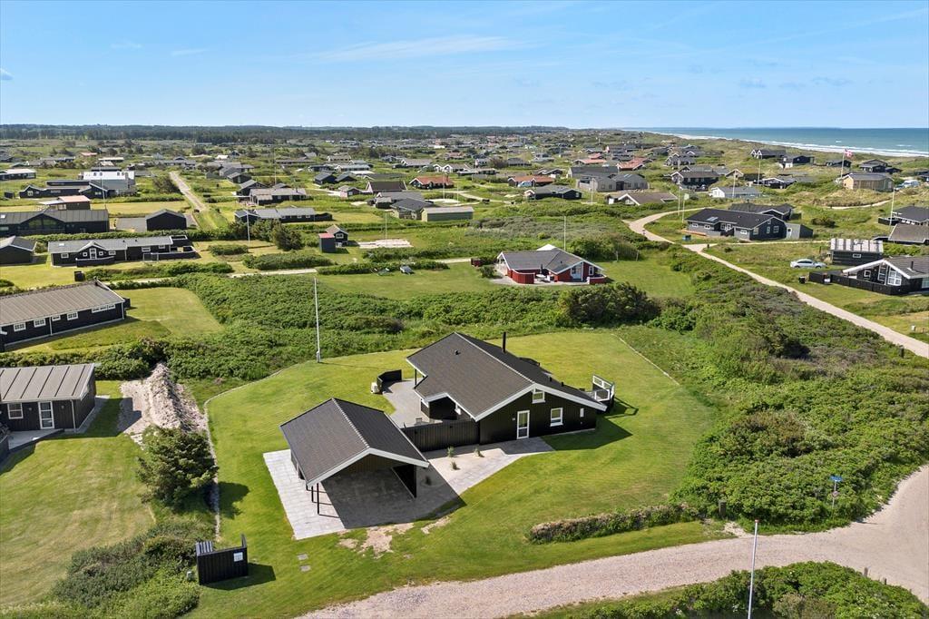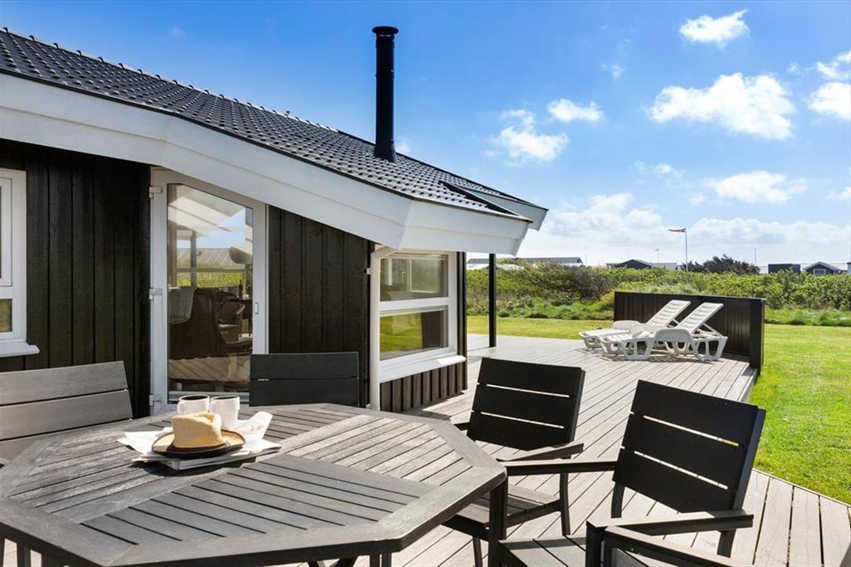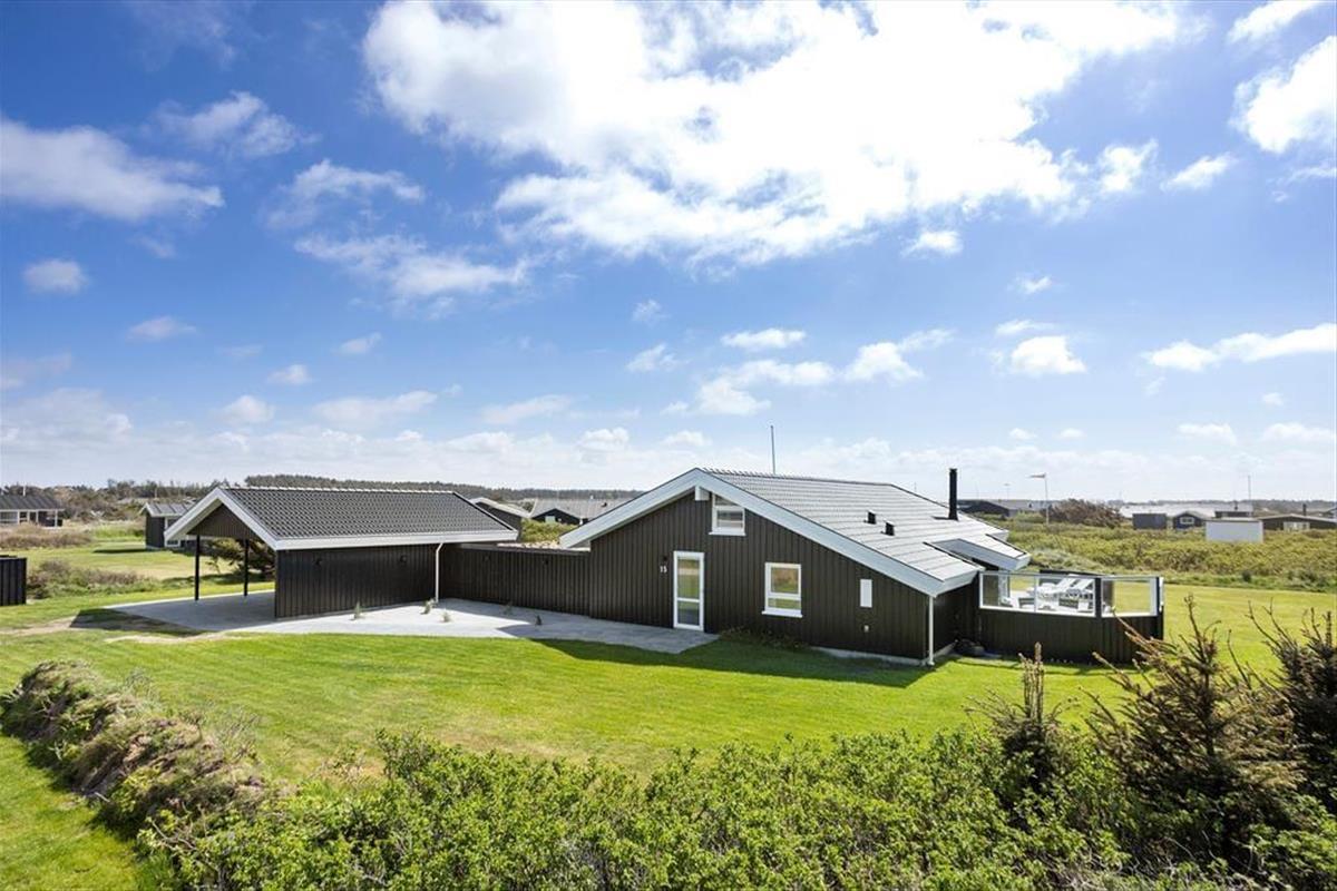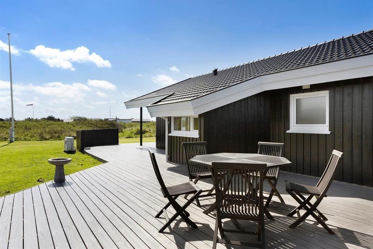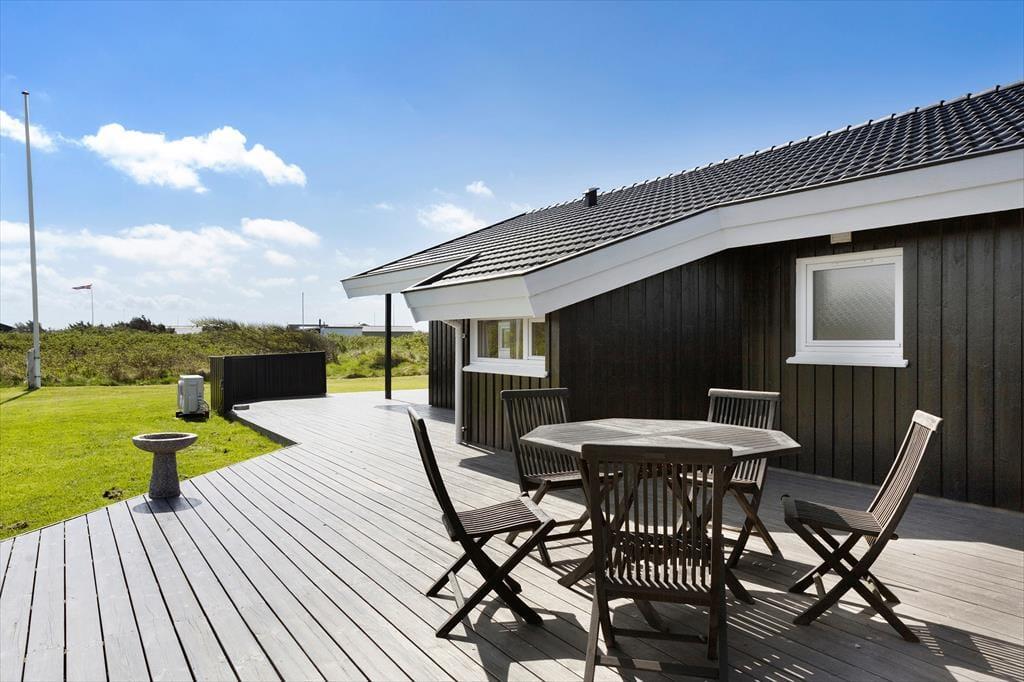 Das Leben im Freien wird in der Oktobervej 15 großgeschrieben. Die große Holzterrasse, die das Ferienhaus umgibt, ermöglicht es dir, der Sonne vom Morgenkaffee bis zum letzten Glas Wein am Abend zu folgen. Die Terrasse lädt zu langen, entspannten Tagen mit guten Büchern, gemütlichen Mahlzeiten unter freiem Himmel und viel Entspannung in den Sonnenliegen ein. Auf dem großen Grundstück gibt es reichlich Platz für die Kinder, um frei herumzulaufen, Ball zu spielen oder kleine Schatzsuchen im Grünen zu veranstalten. Der Carport sorgt dafür, dass dein Auto geschützt steht, sodass du bequem Ausflüge in die Umgebung unternehmen kannst. Nur 250 Meter trennen dich zu Fuß vom Strand – ideal, um die Strandtasche zu packen und Stunden damit zu verbringen, Sandburgen zu bauen, im klaren Meer zu baden oder einfach den Sand zwischen den Zehen zu spüren, während das Rauschen der Nordsee die Sinne erfüllt.