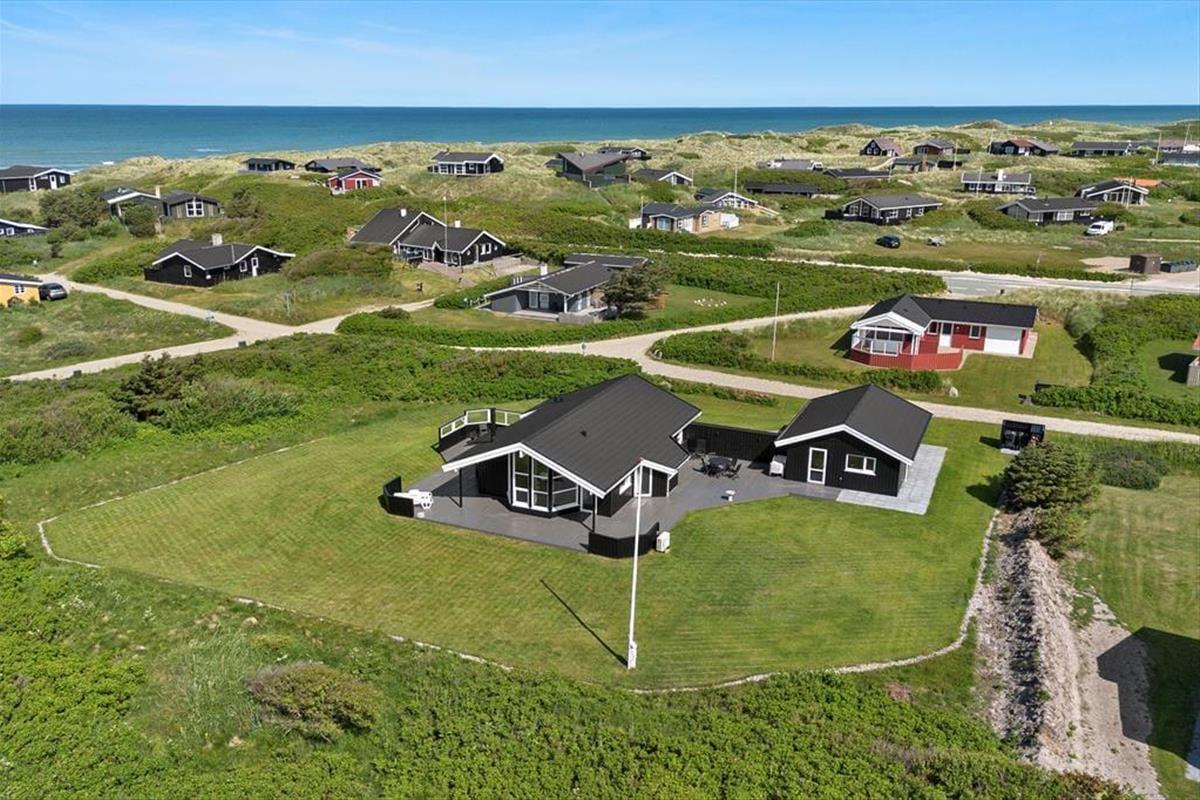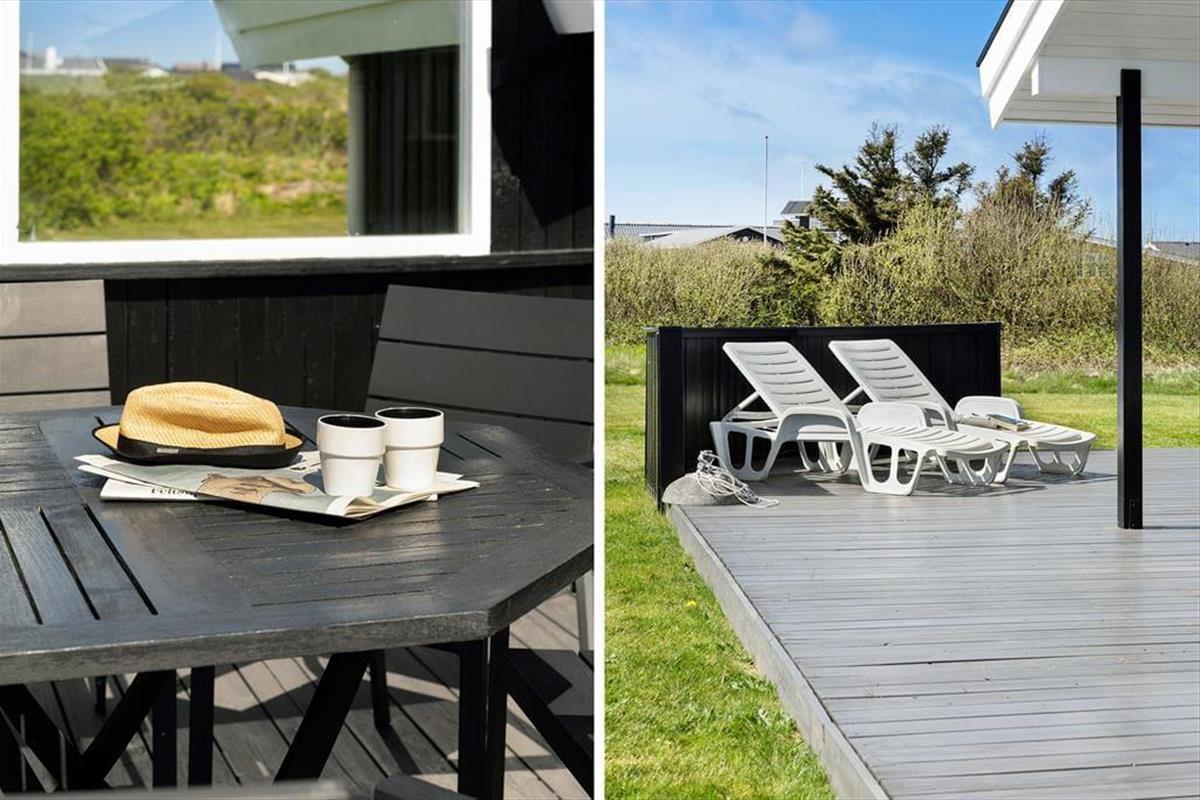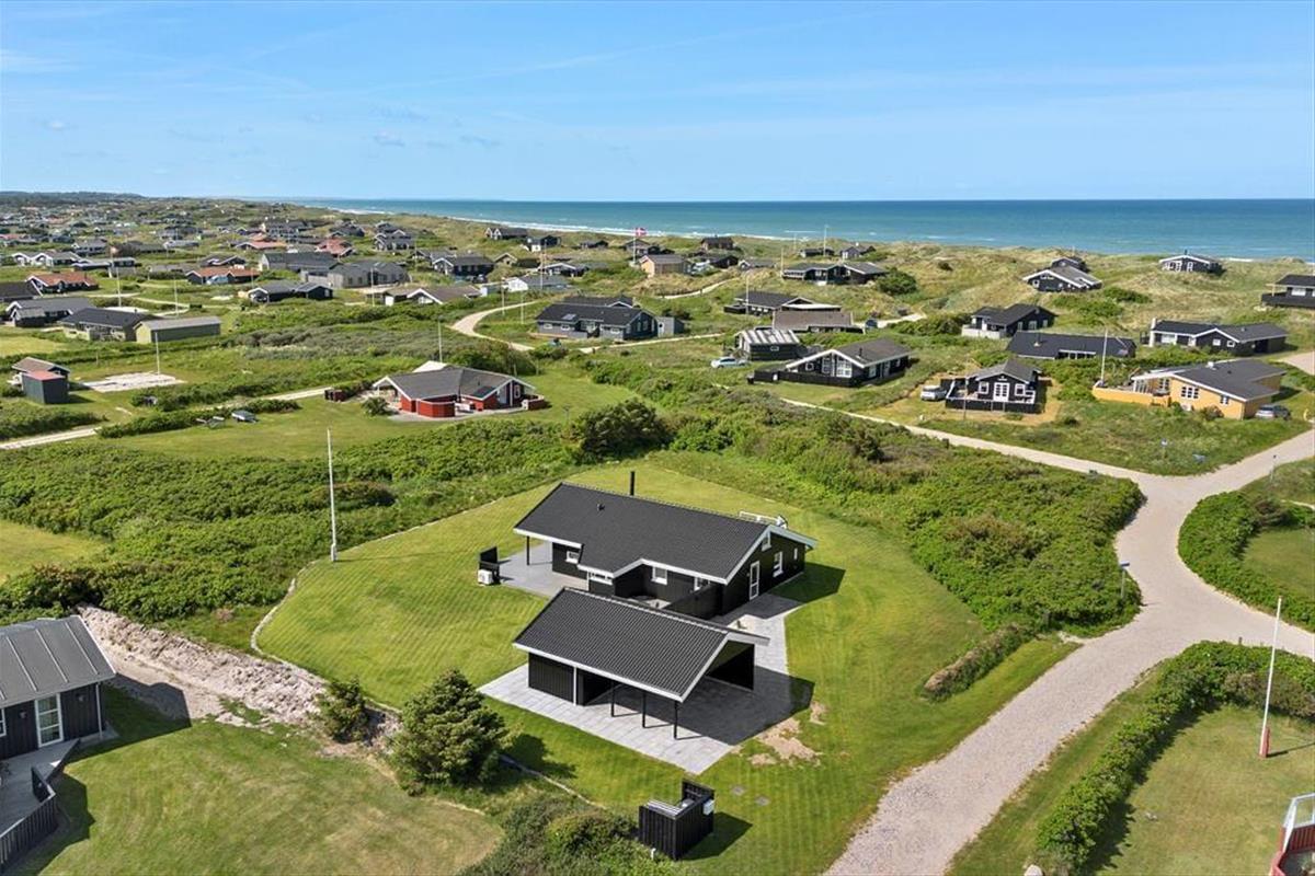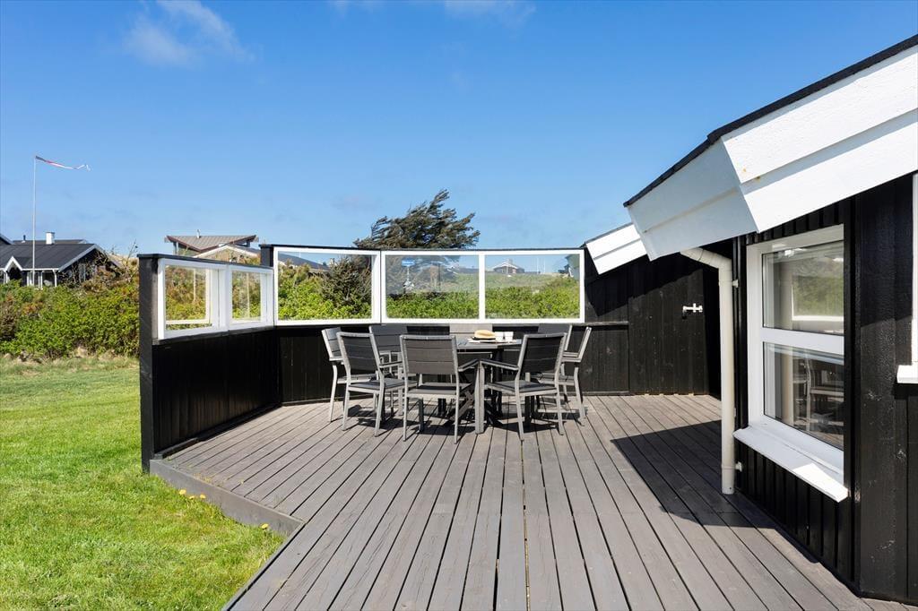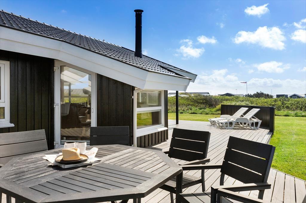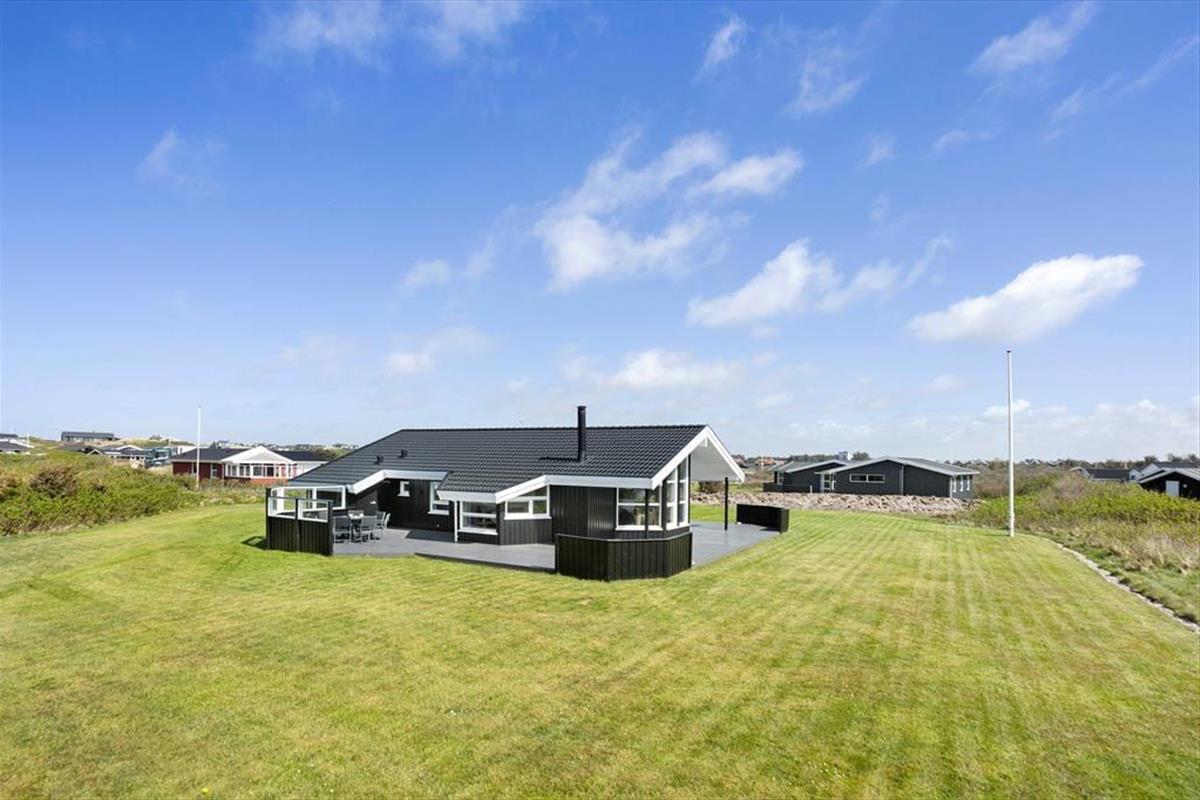 Das Leben im Freien wird in der Oktobervej 15 großgeschrieben. Die große Holzterrasse, die das Ferienhaus umgibt, ermöglicht es dir, der Sonne vom Morgenkaffee bis zum letzten Glas Wein am Abend zu folgen. Die Terrasse lädt zu langen, entspannten Tagen mit guten Büchern, gemütlichen Mahlzeiten unter freiem Himmel und viel Entspannung in den Sonnenliegen ein. Auf dem großen Grundstück gibt es reichlich Platz für die Kinder, um frei herumzulaufen, Ball zu spielen oder kleine Schatzsuchen im Grünen zu veranstalten. Der Carport sorgt dafür, dass dein Auto geschützt steht, sodass du bequem Ausflüge in die Umgebung unternehmen kannst. Nur 250 Meter trennen dich zu Fuß vom Strand – ideal, um die Strandtasche zu packen und Stunden damit zu verbringen, Sandburgen zu bauen, im klaren Meer zu baden oder einfach den Sand zwischen den Zehen zu spüren, während das Rauschen der Nordsee die Sinne erfüllt.