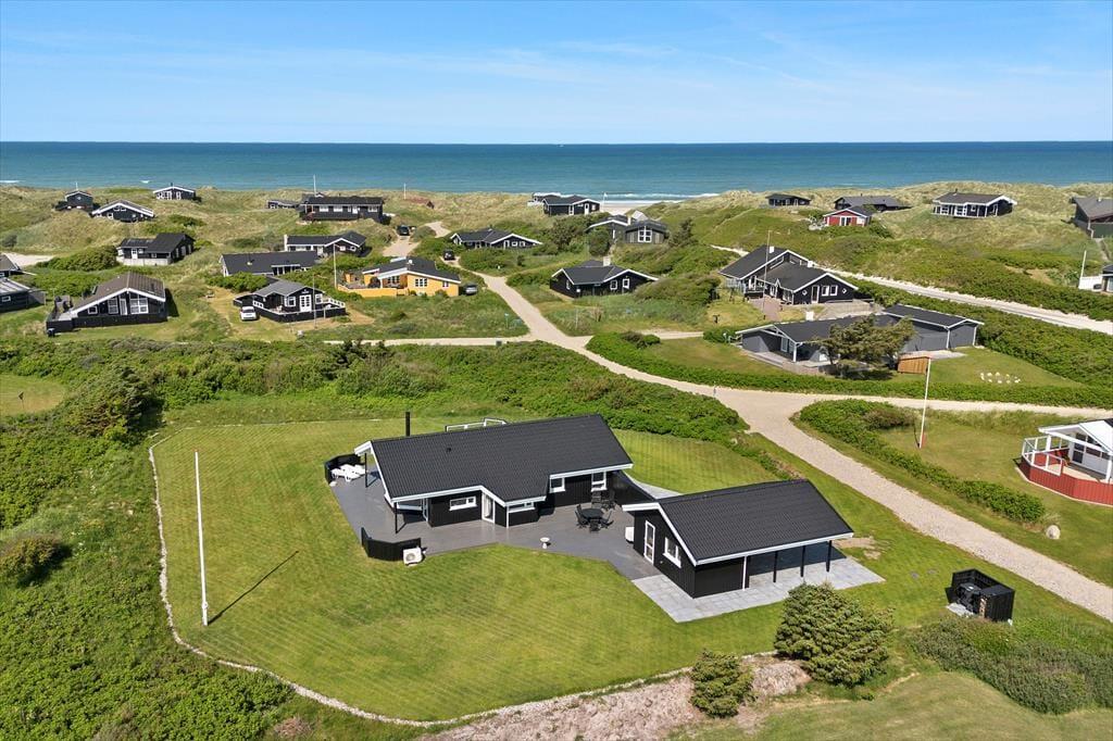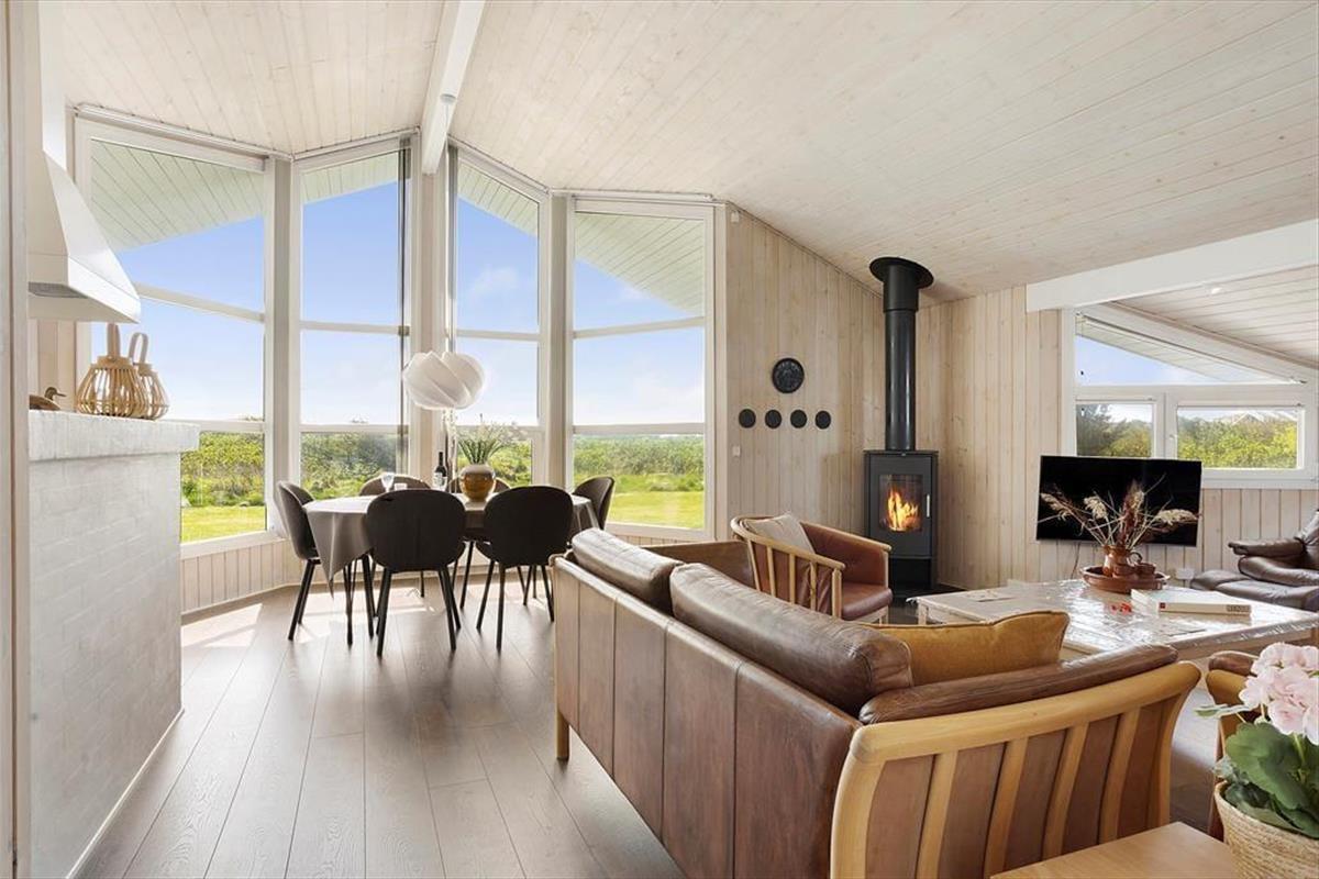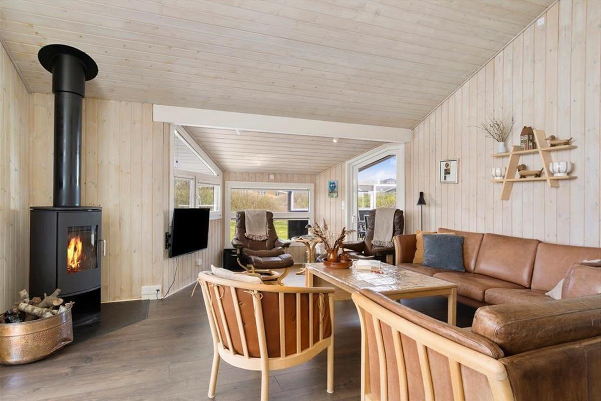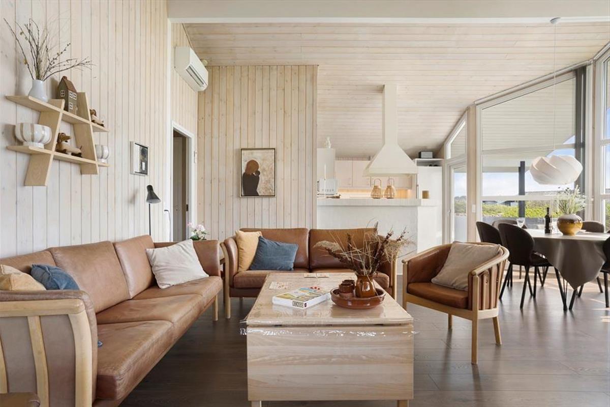 Wenn du die Tür zu diesem schönen Ferienhaus in Løkken öffnest, empfängt dich eine helle und einladende Atmosphäre, bei der sowohl Komfort als auch Urlaubsstimmung im Vordergrund stehen. Das Haus ist mit vier schönen Schlafzimmern sowie einem offenen Schlafboden (Hemse) eingerichtet, auf dem Kinder und Junggebliebene spielen und kleine Abenteuer erleben können. Im herrlichen Wohnzimmer strömt das Tageslicht durch große Fensterpartien und schafft eine warme und angenehme Stimmung – perfekt für entspannte Abende vor dem Knistern des Kaminofens. Die schöne und gut ausgestattete Küche ist offen mit dem Wohnzimmer verbunden, sodass die Gespräche weitergehen können, während du leckere Gerichte mit lokalen Zutaten zauberst. Zwei Badezimmer machen das Haus ideal für Familien und Paare, die sich im Urlaub ein wenig zusätzlichen Komfort wünschen. Insgesamt bietet das Haus den perfekten Rahmen für Urlaubstage voller Nähe, Entspannung und gemütlicher Momente.