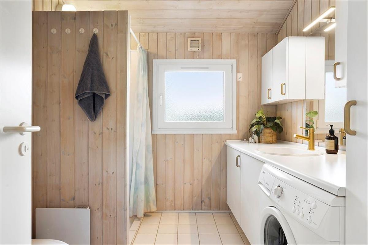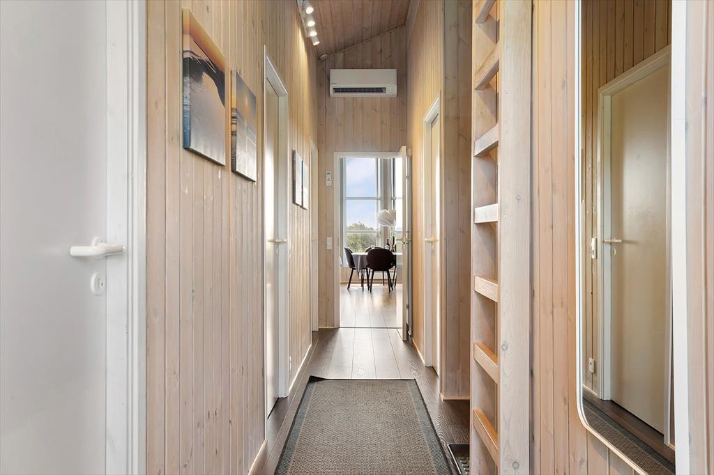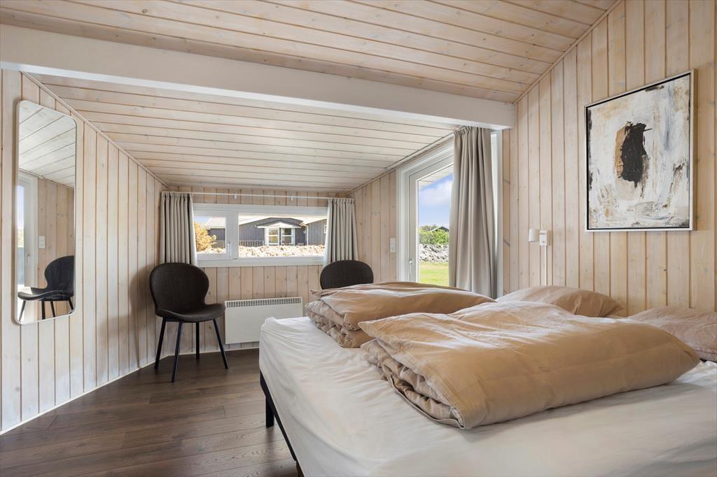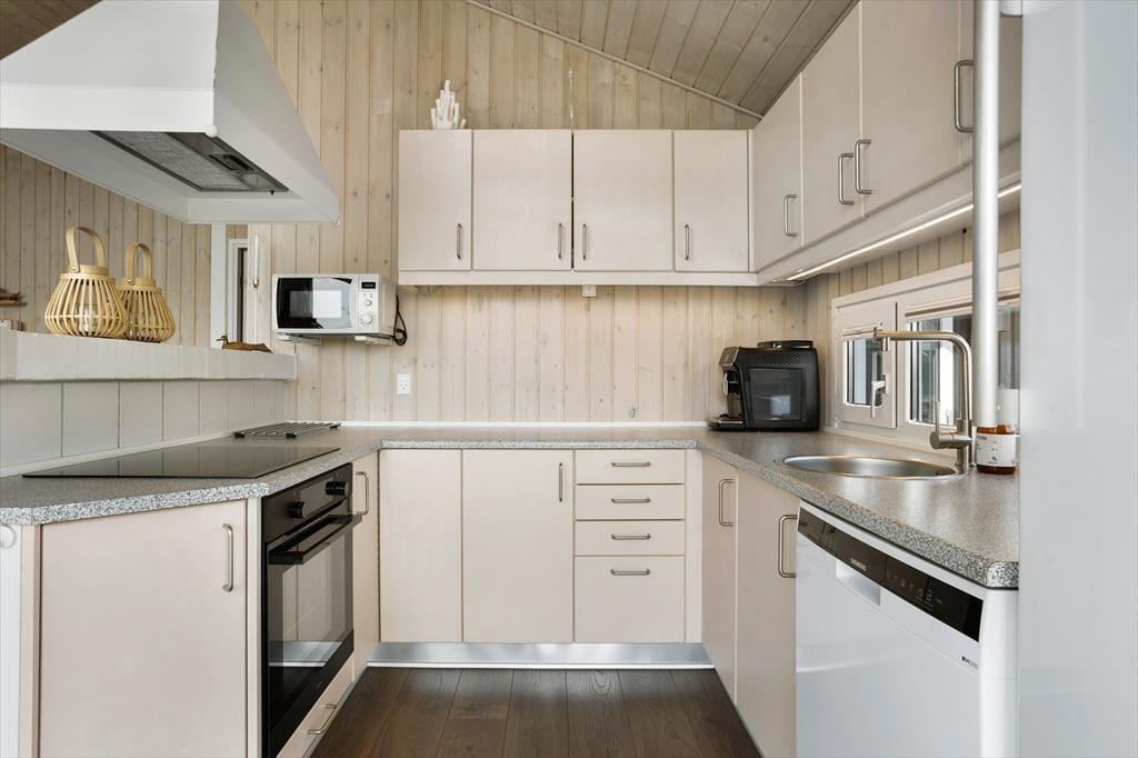 Wenn du die Tür zu diesem schönen Ferienhaus in Løkken öffnest, empfängt dich eine helle und einladende Atmosphäre, bei der sowohl Komfort als auch Urlaubsstimmung im Vordergrund stehen. Das Haus ist mit vier schönen Schlafzimmern sowie einem offenen Schlafboden (Hemse) eingerichtet, auf dem Kinder und Junggebliebene spielen und kleine Abenteuer erleben können. Im herrlichen Wohnzimmer strömt das Tageslicht durch große Fensterpartien und schafft eine warme und angenehme Stimmung – perfekt für entspannte Abende vor dem Knistern des Kaminofens. Die schöne und gut ausgestattete Küche ist offen mit dem Wohnzimmer verbunden, sodass die Gespräche weitergehen können, während du leckere Gerichte mit lokalen Zutaten zauberst. Zwei Badezimmer machen das Haus ideal für Familien und Paare, die sich im Urlaub ein wenig zusätzlichen Komfort wünschen. Insgesamt bietet das Haus den perfekten Rahmen für Urlaubstage voller Nähe, Entspannung und gemütlicher Momente.