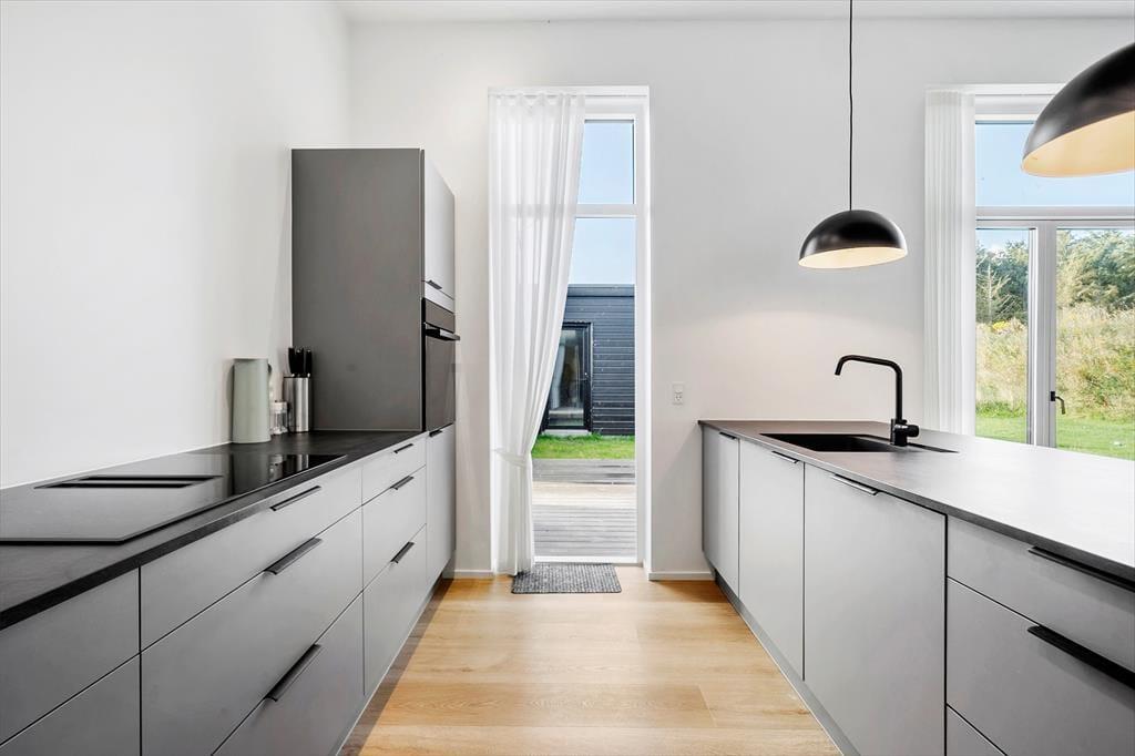 Schon beim Betreten des Ferienhauses wirst du von einem wunderbaren Gefühl von Licht und Luft empfangen. Das natürliche Licht strömt durch die großen Fensterfronten und hebt die hellen Materialien und das offene Raumkonzept hervor. Das Herzstück des Hauses ist der Wohnbereich, in dem Küche und Wohnzimmer zu einem großen, zusammenhängenden Raum verschmelzen. Hier kann sich die ganze Familie beim Kochen, beim Brettspiel am Esstisch oder bei einem entspannten Moment auf dem Sofa versammeln. Die vier schönen Schlafzimmer bieten reichlich Schlafplatz und Privatsphäre, wenn ihr mit mehreren Personen unterwegs seid, und mit zwei Badezimmern und insgesamt zwei Toiletten ist der Komfort hervorragend. Ganz gleich, ob der Urlaub unter dem Motto Entspannung oder Aktivität steht – dieses gut eingerichtete Ferienhaus schafft den idealen Rahmen für eure gemeinsame Zeit.