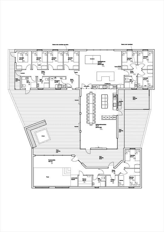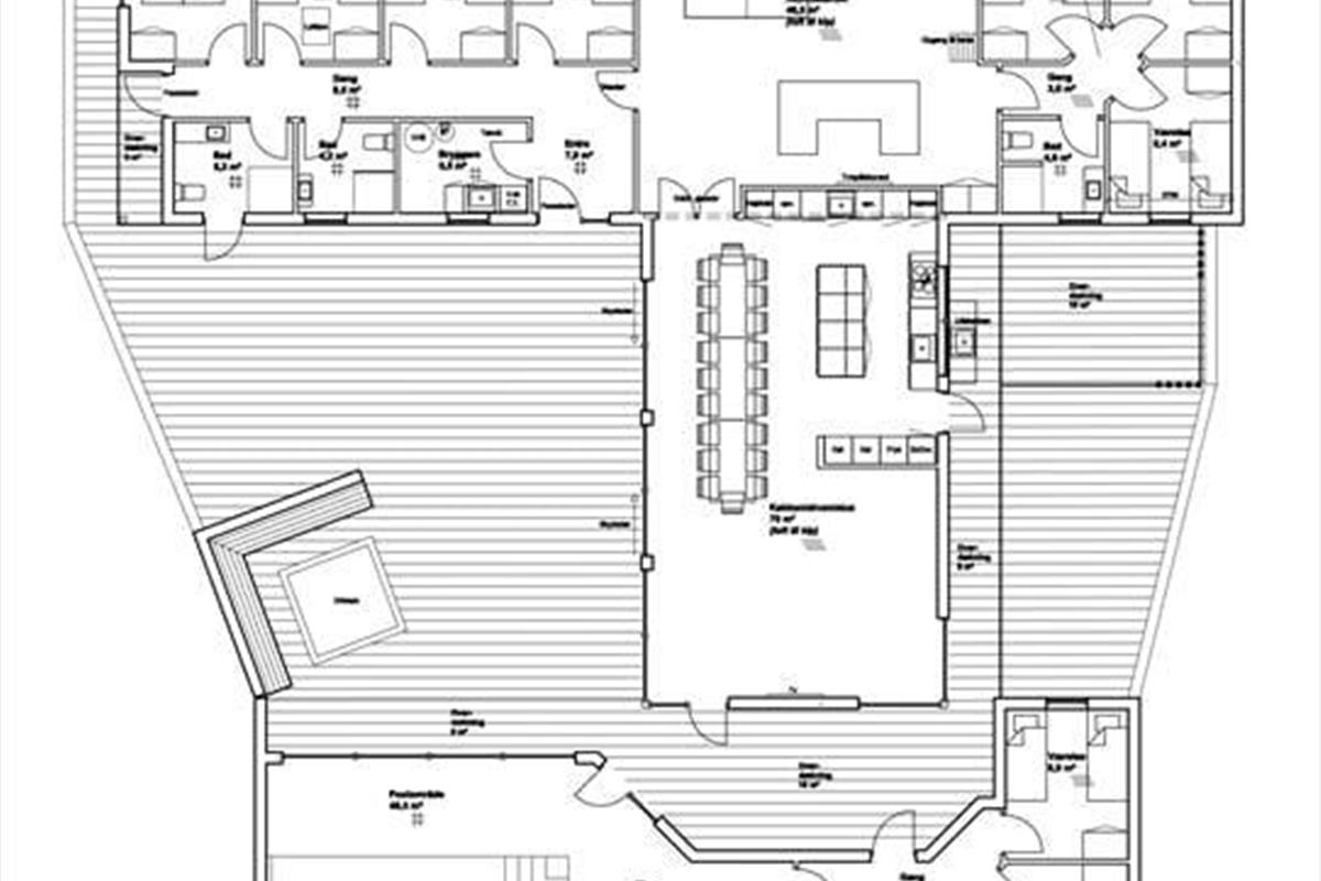 Wenn du das moderne und geräumige Ferienhaus betrittst, empfängt dich ein fantastisches Licht und eine Einrichtung, die Qualität und Komfort ausstrahlt. Alles ist durchdacht – vom großen Wohnbereich mit offener Küche bis hin zur hochwertigen Materialauswahl, die eine warme und einladende Atmosphäre schafft. Der Wohnbereich wird zum Mittelpunkt für gemeinsames Kochen, Essen und Entspannen, während durch die großen Fensterpartien die Sonne hereinscheint und die Natur nach drinnen holt. Im Haupthaus befinden sich insgesamt sieben Schlafzimmer, drei Badezimmer sowie zwei Hems – perfekt geeignet für mehrere Familien oder eine große Freundesgruppe, die gemeinsam Urlaub machen möchte, ohne auf Komfort oder Privatsphäre zu verzichten. Hinzu kommt ein Aktivitätsraum, der mit Tischfußball und Brettspielen Groß und Klein zum fröhlichen Wettbewerb einlädt.
