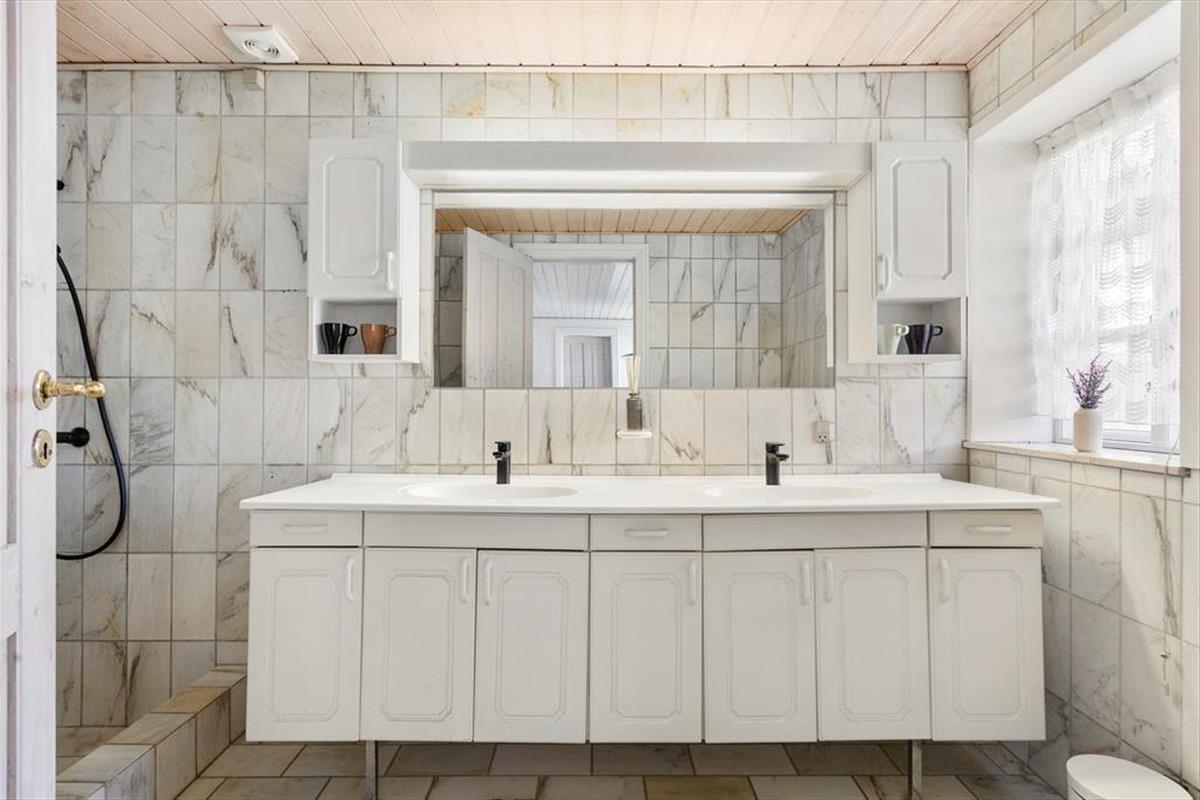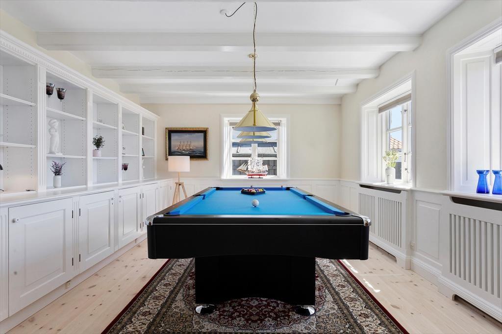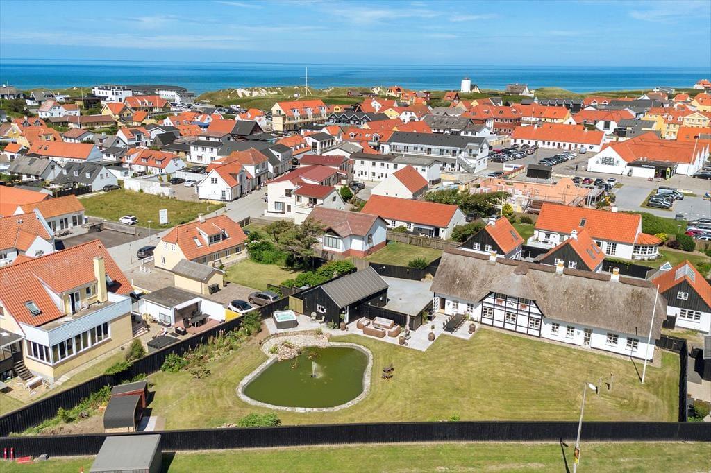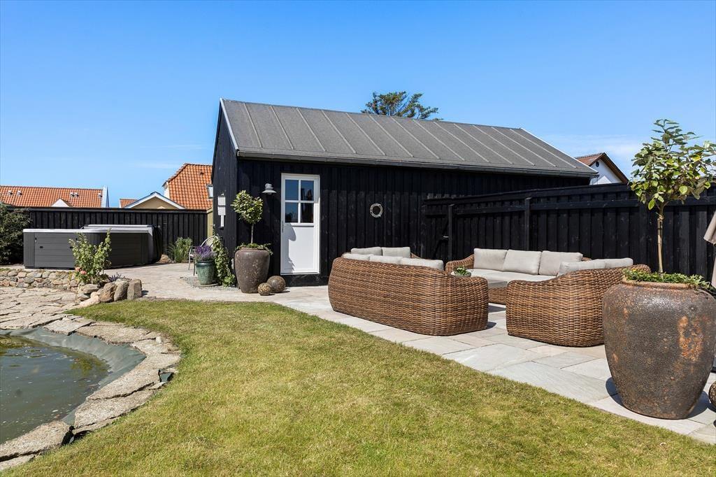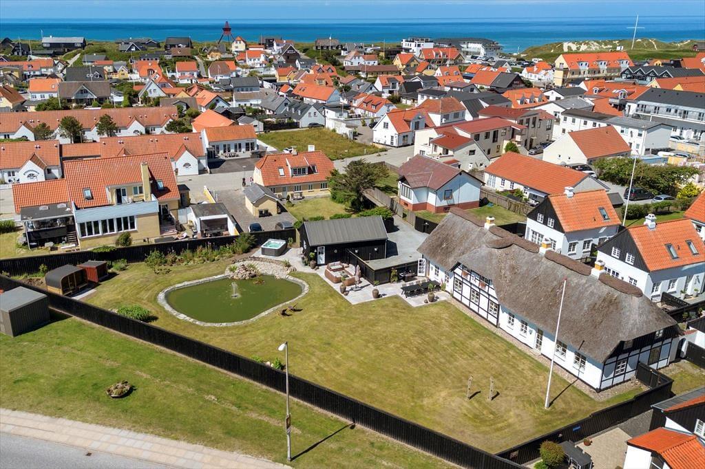 Ein Aufenthalt in diesem charmanten, historischen Ferienhaus im Zentrum von Løkken ist ein ganz besonderes Erlebnis. Hier vereinen sich Stadtleben und Natur auf schönste Weise – denn das Haus liegt ruhig und zurückgezogen mit Blick auf einen idyllischen Gartensee, in dem Fische unter der Wasseroberfläche schwimmen. Im großen, grünen Garten kannst du die Ruhe und das gemütliche Leben im Freien genießen, während die Kinder sich frei austoben. Und mit Whirlpool innen und außen, Sauna sowie einem Aktivitätsraum mit Billardtisch und Dartscheibe ist für Entspannung und Unterhaltung für die ganze Familie – das ganze Jahr über – bestens gesorgt.