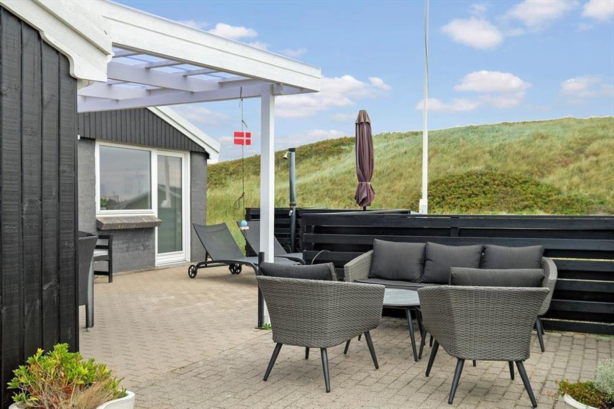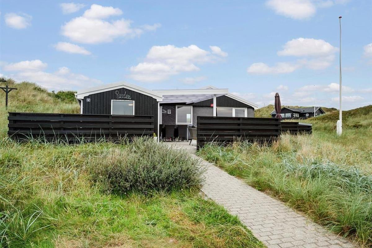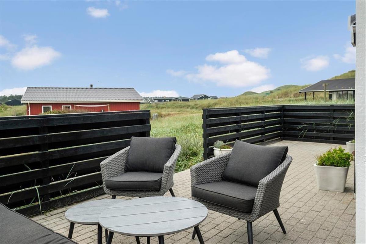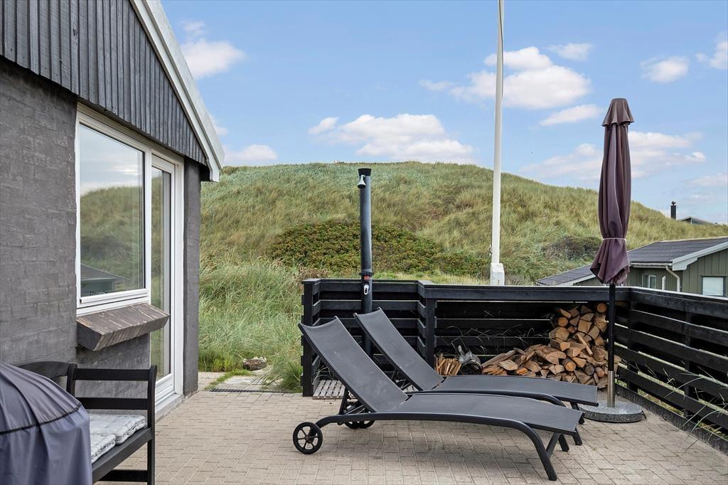 Das hügelige Gelände rund um das Haus sorgt für eine besondere Stimmung von Ruhe und Frieden, und es ist leicht, seinen eigenen Lieblingsplatz in der Sonne zu finden. Auf der schönen Terrasse kannst du den Tag mit einer Tasse Kaffee beginnen, während du dem Vogelgezwitscher lauschst und die frische Meeresluft spürst. Die Terrasse eignet sich perfekt für entspannte Stunden mit einem Buch auf der Sonnenliege oder für gemütliche Mahlzeiten unter freiem Himmel, wenn der Grill angezündet wird und sich der Duft des Sommers verbreitet.