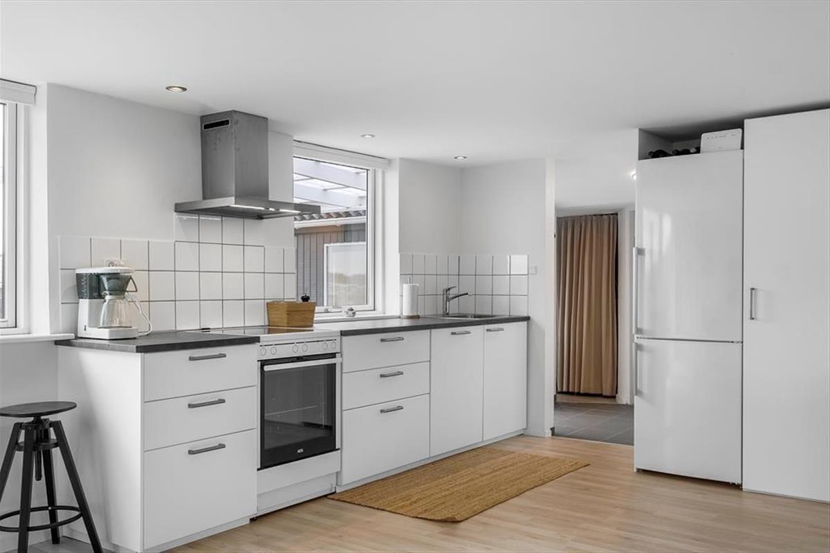 Schon beim Betreten des Ferienhauses in der Bettysvej 12 spürst du die helle und einladende Atmosphäre. Die großen Fenster lassen viel Tageslicht herein und schaffen ein angenehmes Ambiente, das sofort für Urlaubsstimmung sorgt. Im Herzen des Hauses befindet sich der Wohnbereich, in dem Küche und Wohnzimmer in einem offenen und harmonischen Grundriss miteinander verbunden sind. Hier kannst du die Mahlzeiten des Tages zubereiten, während die Gespräche am Esstisch frei fließen und die Familie den nächsten Ausflug plant. Wenn der Abend hereinbricht, verbreitet der Kaminofen seine wohlige Wärme und sein Knistern im Raum – und es ist der perfekte Moment, es sich mit einer Tasse Tee und einem guten Buch oder einem Film auf dem Sofa gemütlich zu machen.