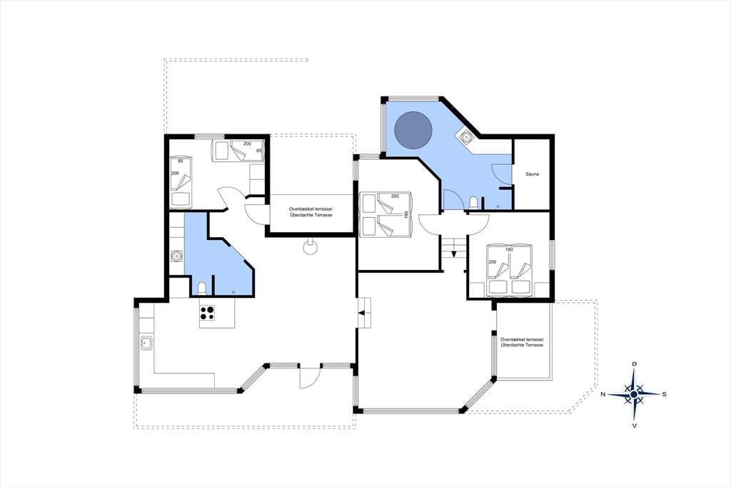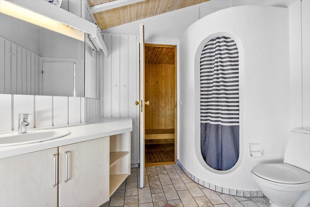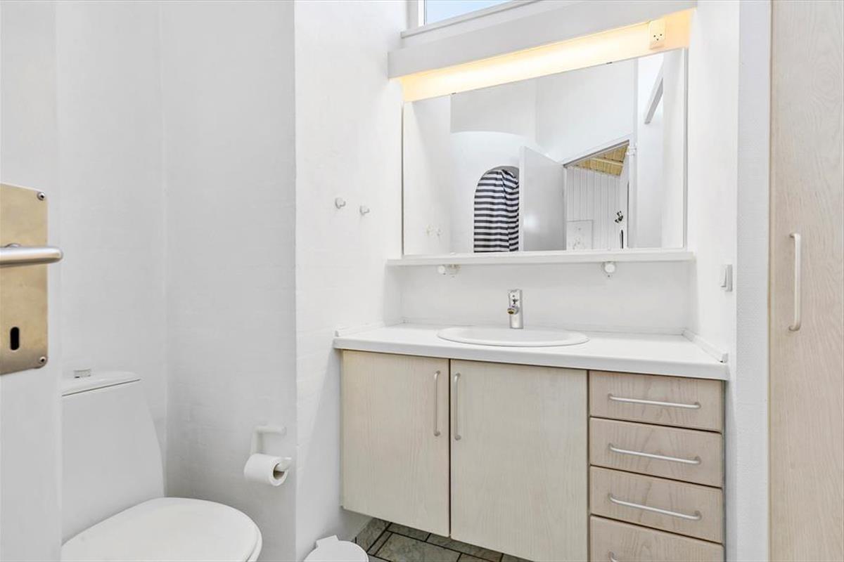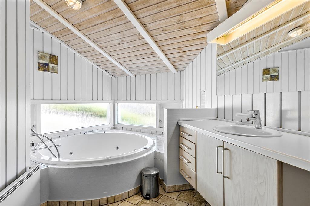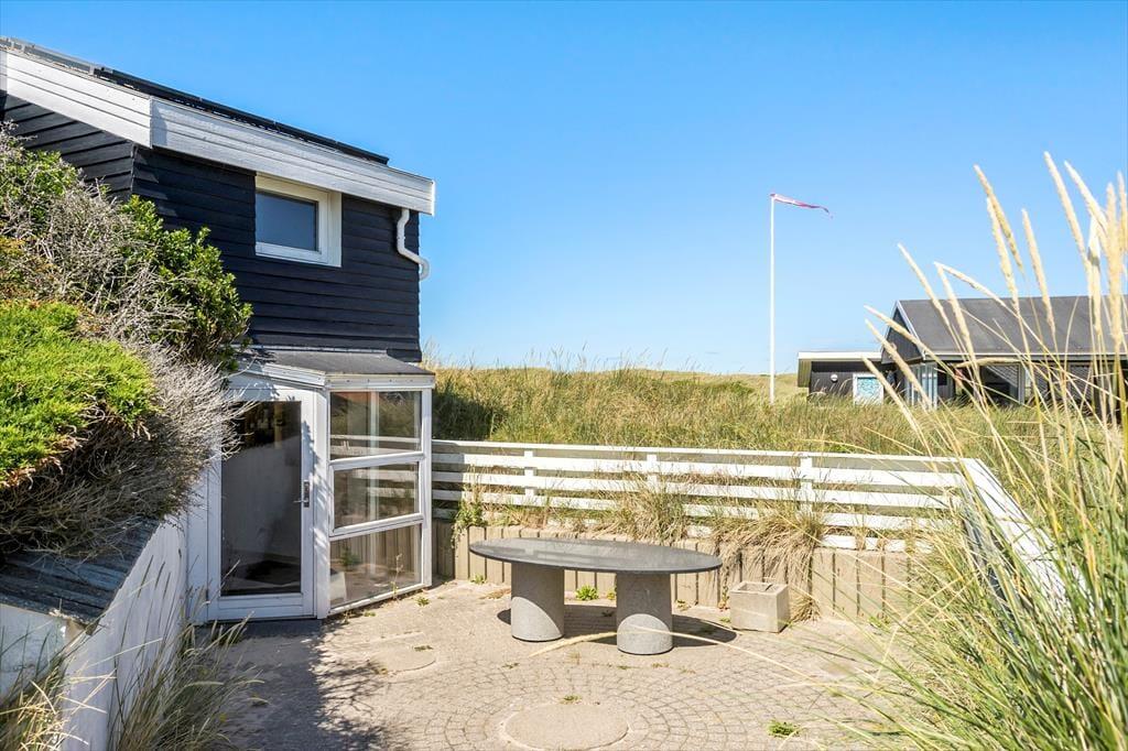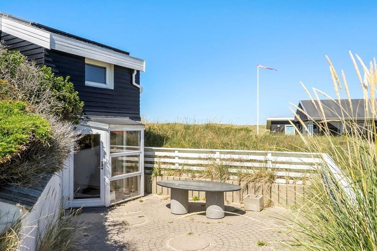 Das Ferienhaus bietet einen einzigartigen Blick auf das Wasser vom Esszimmer mit Kaminofen und der Küche. Das Haus hat zwei Badezimmer mit Fußbodenheizung, von denen eines mit einem Whirlpool und einer Sauna ausgestattet ist, während das andere eine Dusche, Toilette, einen Wäschetrockner und eine Waschmaschine hat. Zwei der Schlafzimmer sind mit Doppelbetten eingerichtet und ein Zimmer verfügt über zwei Einzelbetten. Vom gemütlichen, abgesenkten Wohnzimmer aus hat man einen Blick auf das Meer und Zugang zur Terrasse. Eine Leiter führt vom Wohnzimmer zu einem hellen und sehr gemütlichen Dachboden, der einen Blick auf die faszinierenden Dünen bietet.