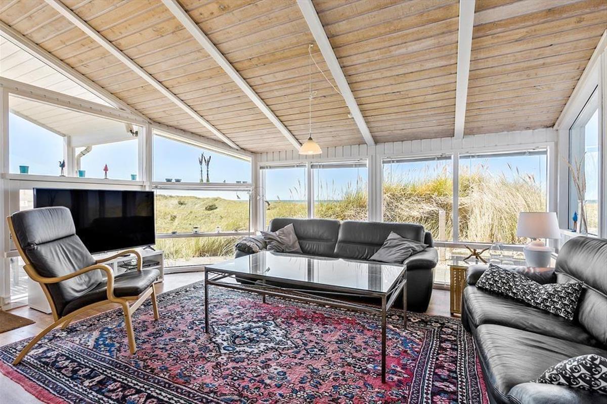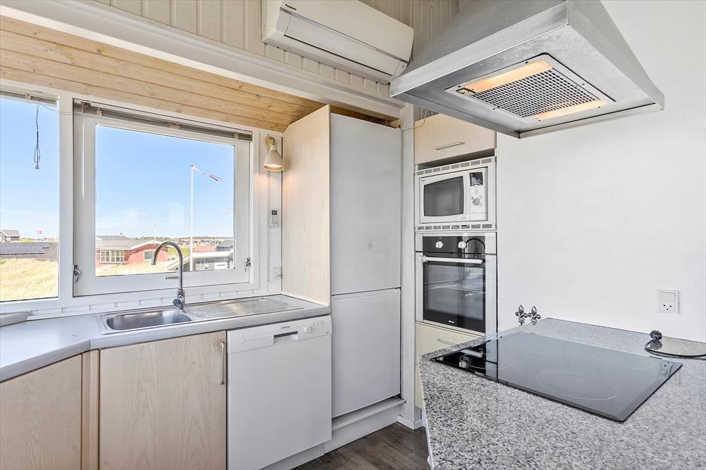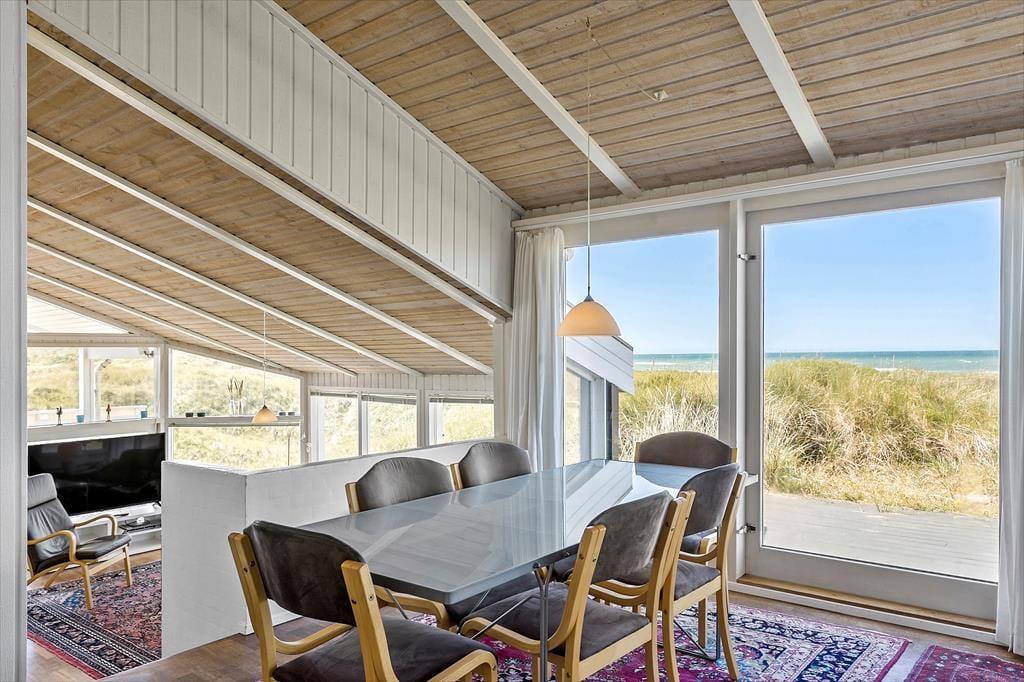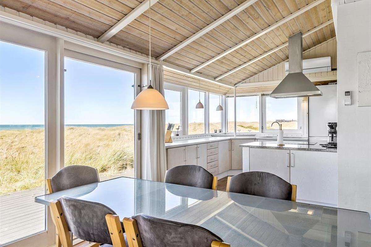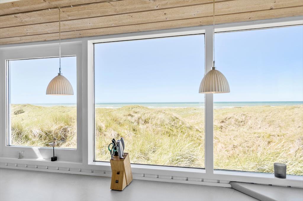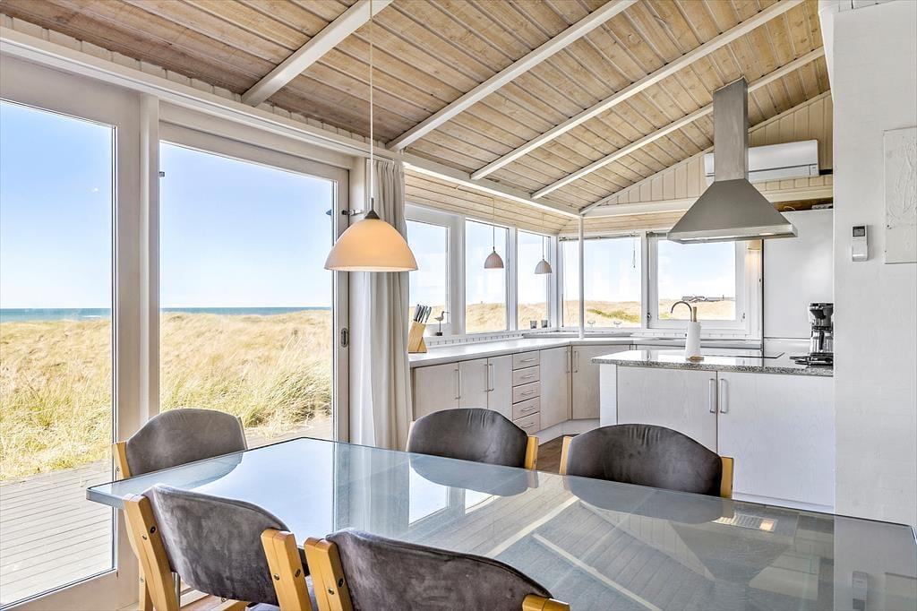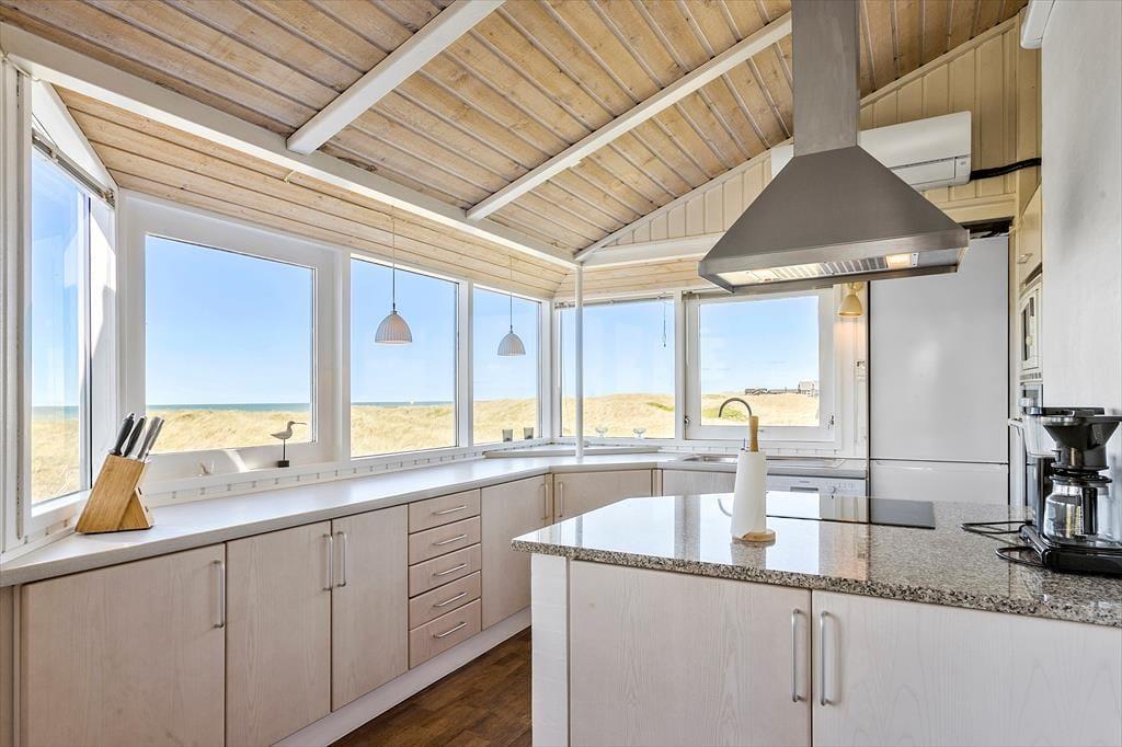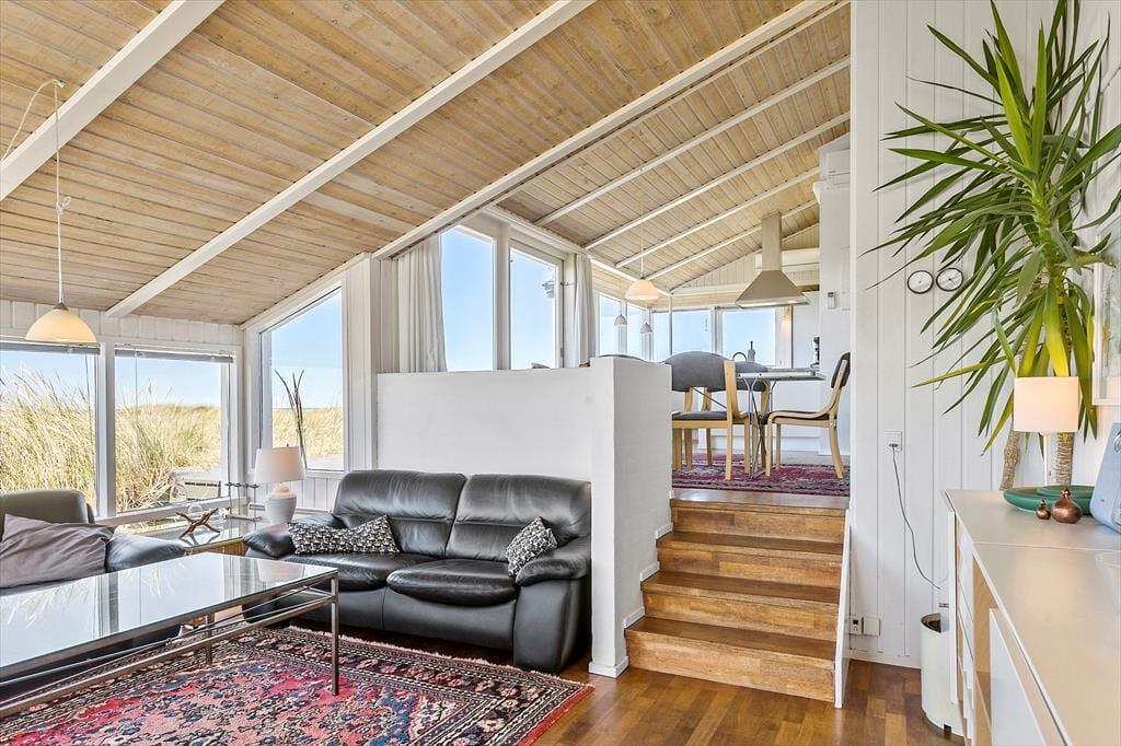 Dieses fantastische Ferienhaus liegt südlich von Løkken und bietet einen Blick auf das Wasser vom Wohnzimmer, der Küche und dem Esszimmer.