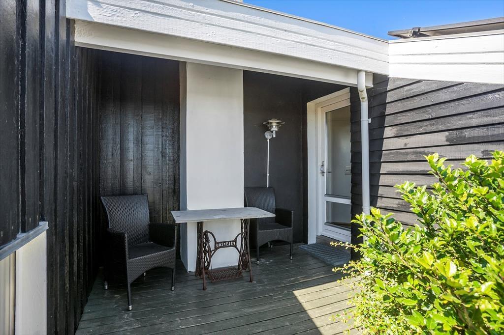 Die Terrassen rund um das Ferienhaus sind so angeordnet, dass man immer einen windgeschützten Platz in der Sonne finden kann. Die Terrasse im Westen bietet einen fantastischen Panoramablick auf das Meer. Auf der kleinen, geschützten Morgenterrasse im Osten befindet sich ein Gartenschlauch, mit dem man das Salzwasser nach einem morgendlichen Sprung ins Meer abspülen kann. Vor dem Haus, in einer kleinen vertieften Ecke, liegt ein Solarium (25 m²) mit einem schönen Granittisch, und von hier aus gelangt man in einen kleinen Raum, in dem man Gartenmöbel oder Fahrräder abstellen kann.