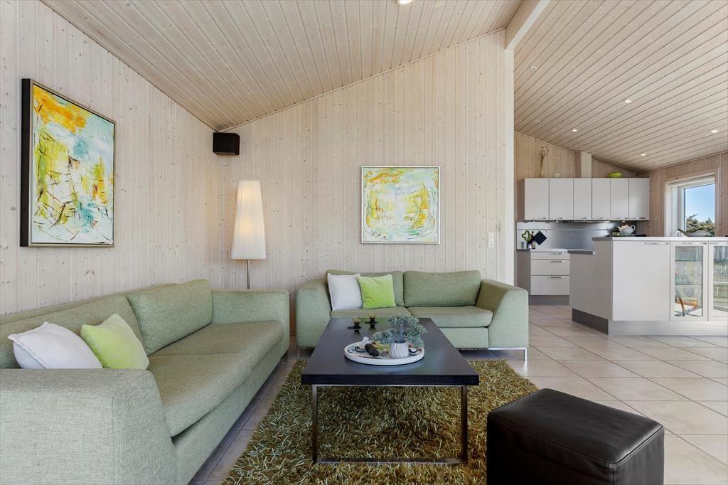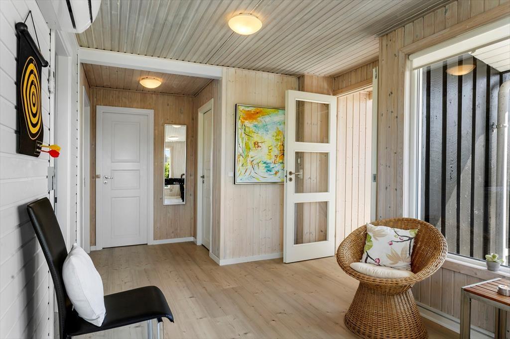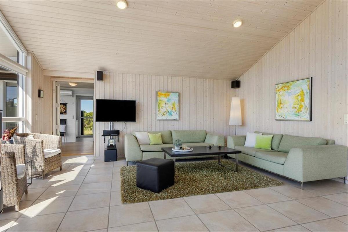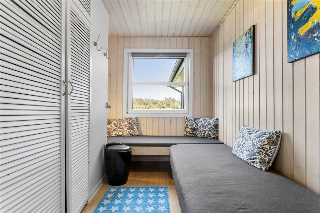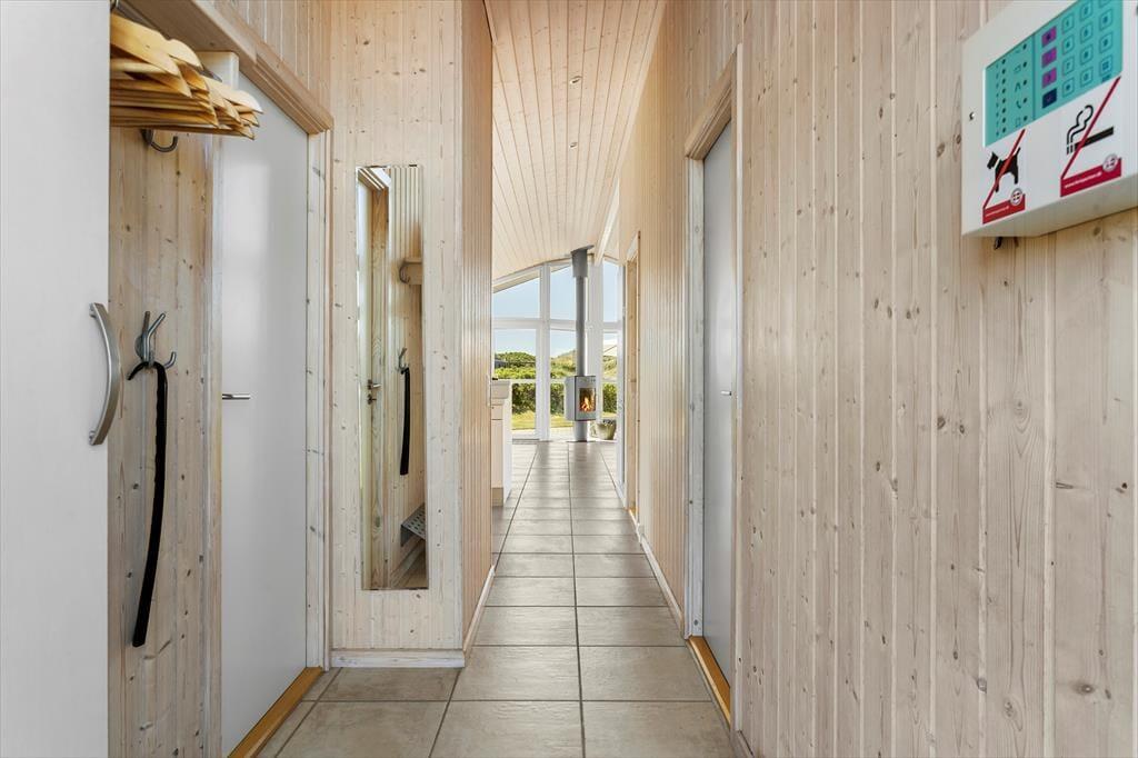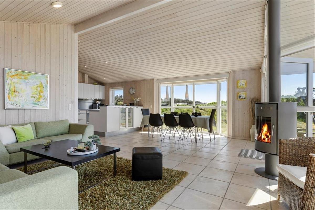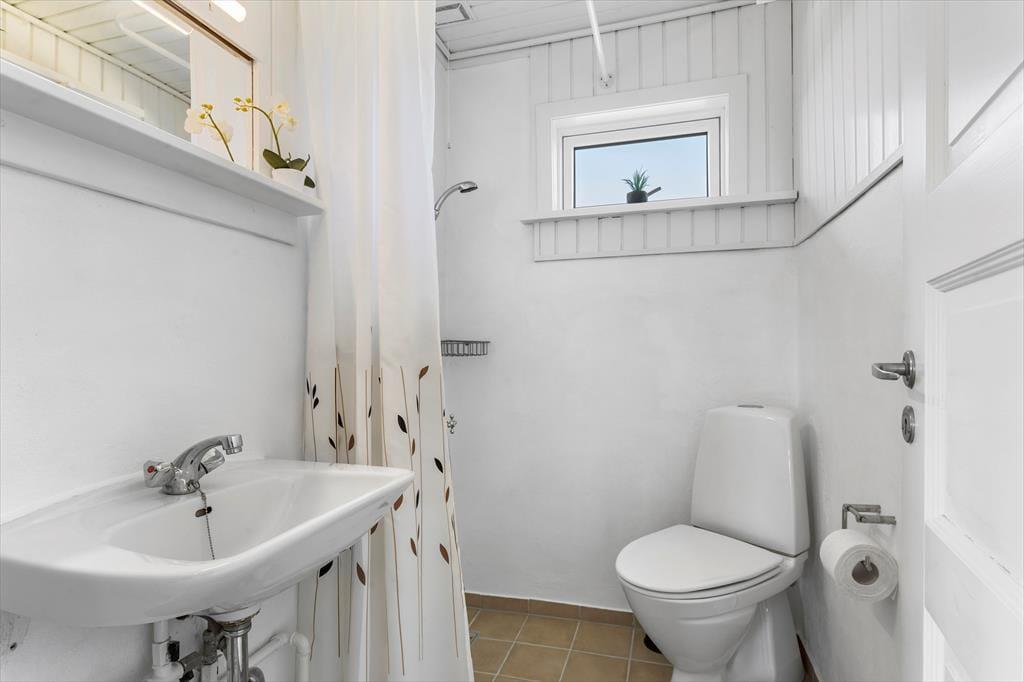 Das Haus befindet sich in ruhiger Lage, umgeben von der schönen Natur Løkkens. Hier kann man wunderbar zur Ruhe kommen und den dänischen Sommer in vollen Zügen genießen. Von Wohnzimmer und Küche aus gelangt man auf die große, geflieste Terrasse, und hinter dem Haus gibt es eine weitere, kleinere Terrasse mit gutem Windschutz. Eine Außendusche sorgt dafür, dass man den Sand der Nordsee bequem abspülen kann, bevor man das Haus betritt.