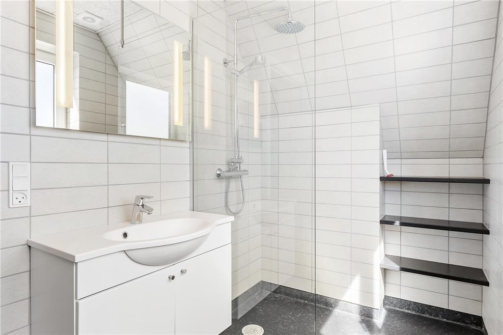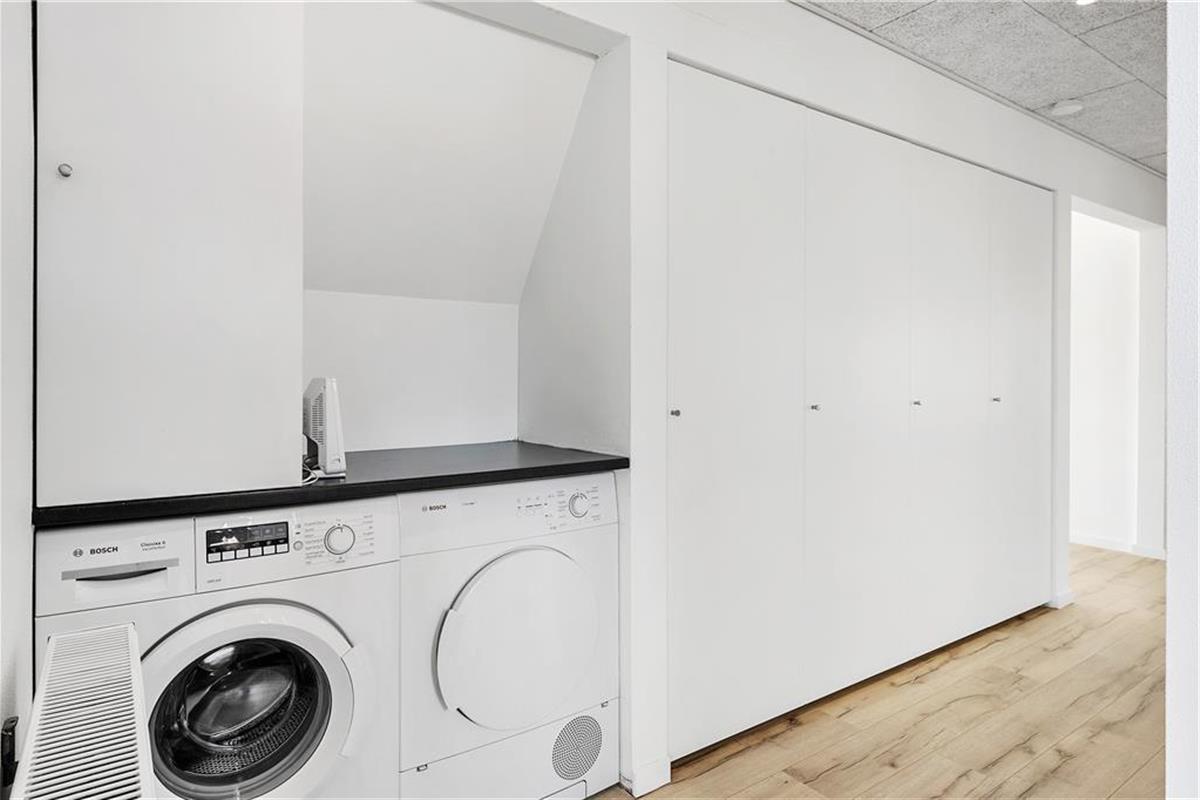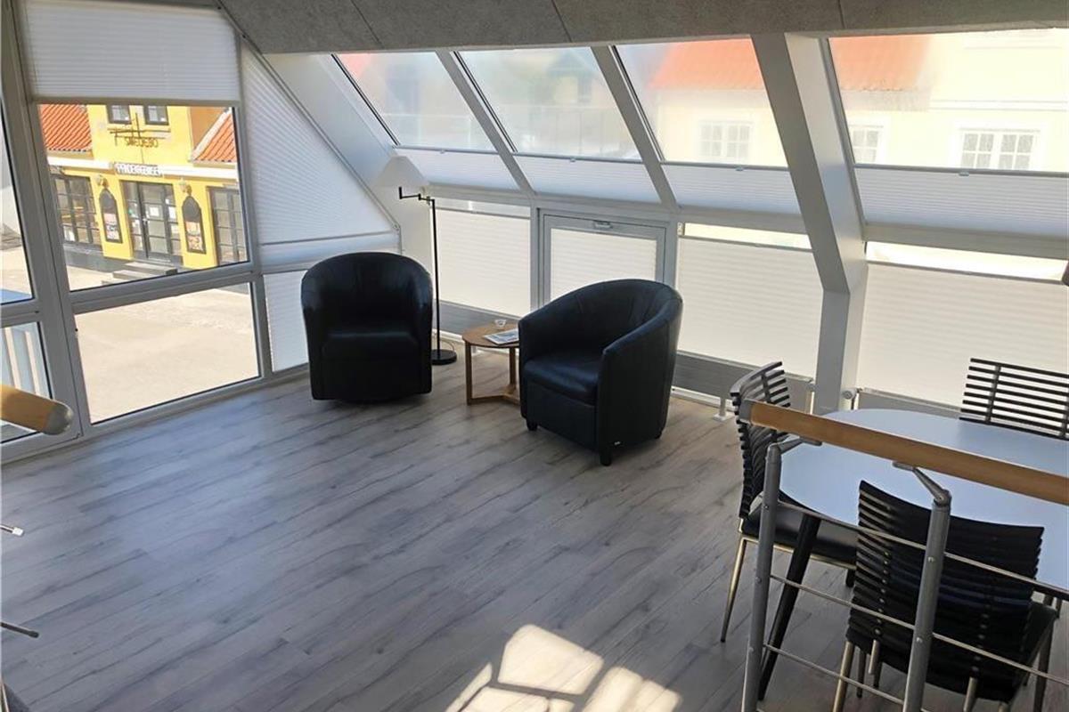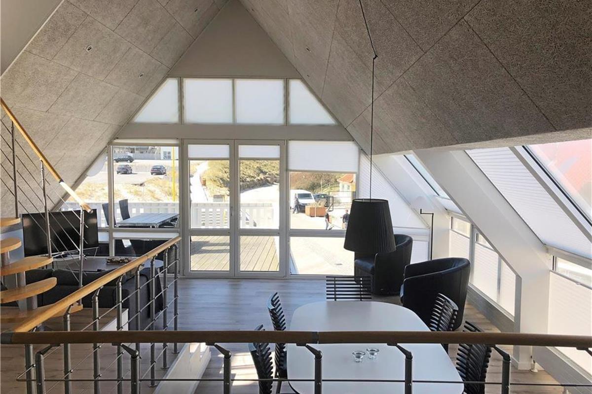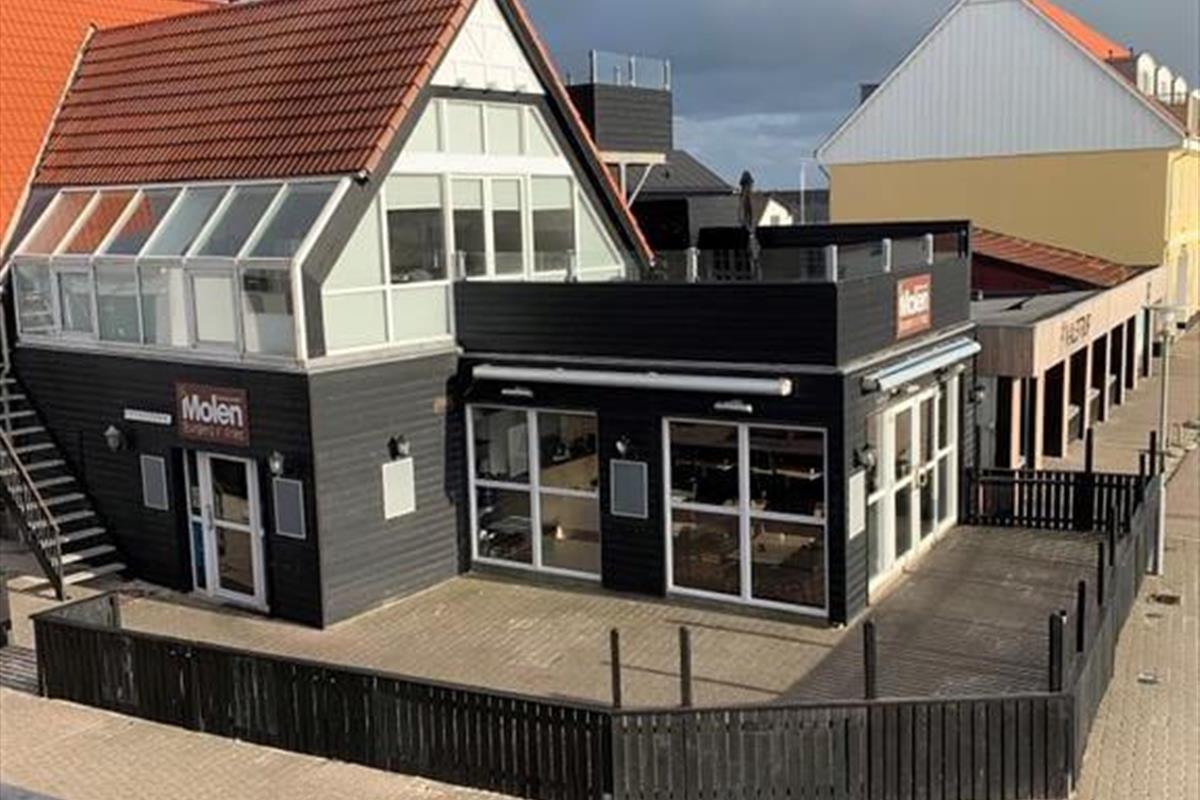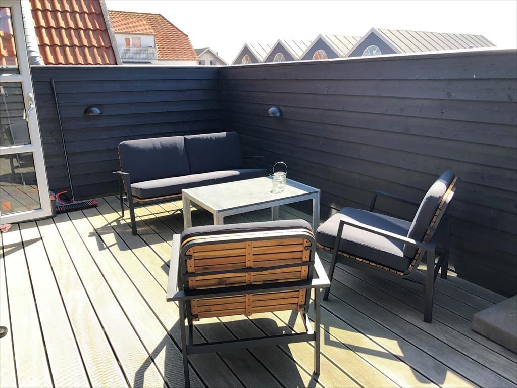 Zur Wohnung gehört eine große und wunderschöne Holzterrasse mit insgesamt 65 m². Sie verläuft rund um die Wohnung und hat Ausgänge sowohl aus der Küche als auch aus dem Wohnzimmer. Auf den versetzten Ebenen bietet sich ein Blick auf das Leben in Løkken nach Westen und Süden, und wenn man ganz ungestört von vorbeigehenden Personen sein möchte, kann man über die Treppe in der Küche auf dem geschlossenen Balkon sitzen, der durch eine Glaswand einen herrlichen Meerblick bietet. Man sollte jedoch beachten, dass es aufgrund der zentralen Lage tagsüber eine Menge vorbeigehender Menschen und Geräusche aus dem lebhaften Stadtleben geben kann. In der Nähe gibt es einen großen Parkplatz, auf dem das Auto abgestellt werden kann.