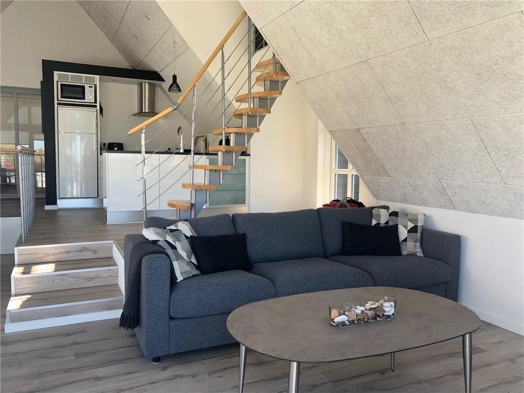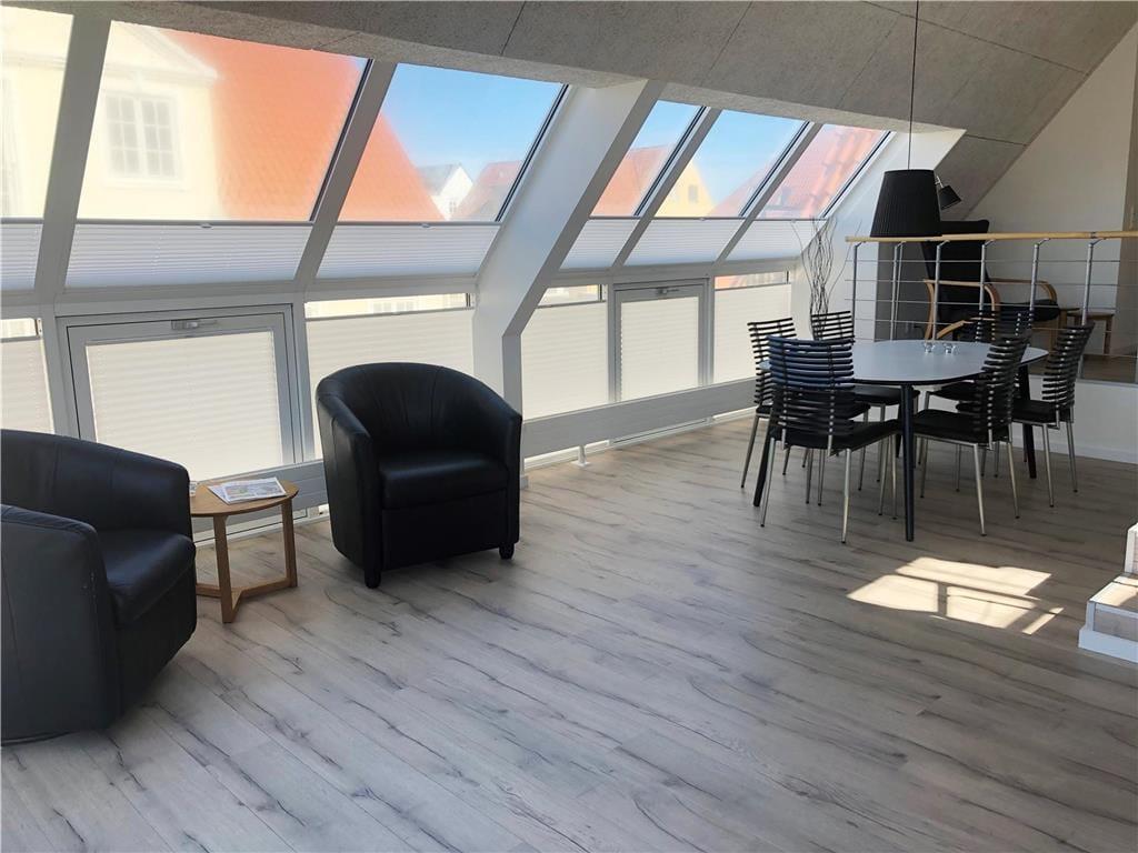 Spannende Einrichtung und Meerblick von der Balkonterrasse, perfekt für einen Städtetrip in Nordjütland.