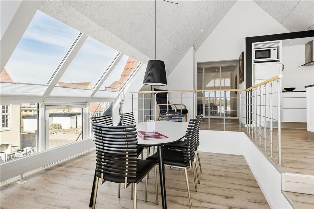 Wir scheuen uns nicht, diese Ferienwohnung als ein Juwel im Herzen von Løkken zu bezeichnen. Mit hellen, großzügigen Räumen, hohen Decken, hochwertigen Materialien, versetzten Ebenen zwischen Wohnzimmer und Küche sowie großen Fenstern im Wohnzimmer ist die Einrichtung einzigartig und die Qualität erstklassig. Die Wohnung verfügt über zwei Schlafzimmer und ein schönes Badezimmer mit Dusche. In der Küche gibt es ausreichend Platz und alle nötigen Utensilien für einen entspannenden Urlaub. Ein paar Stufen tiefer befinden sich das Esszimmer und das südwestlich ausgerichtete Wohnzimmer, das durch das große Giebel-Fenster einzigartiges Licht einfängt. Alle Fenster der Wohnung bieten einen Blick auf die Stadt, und natürlich gibt es kostenloses Internet, das genutzt werden kann.