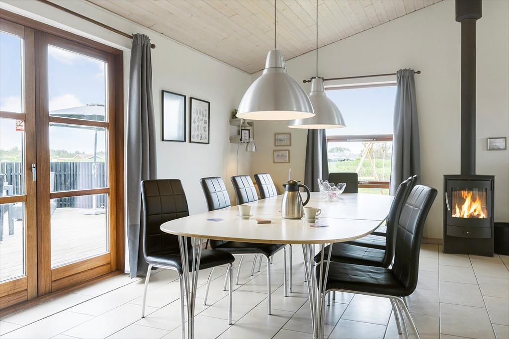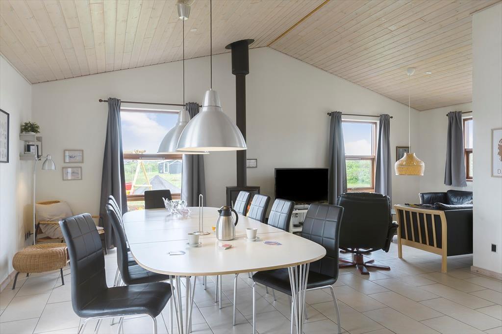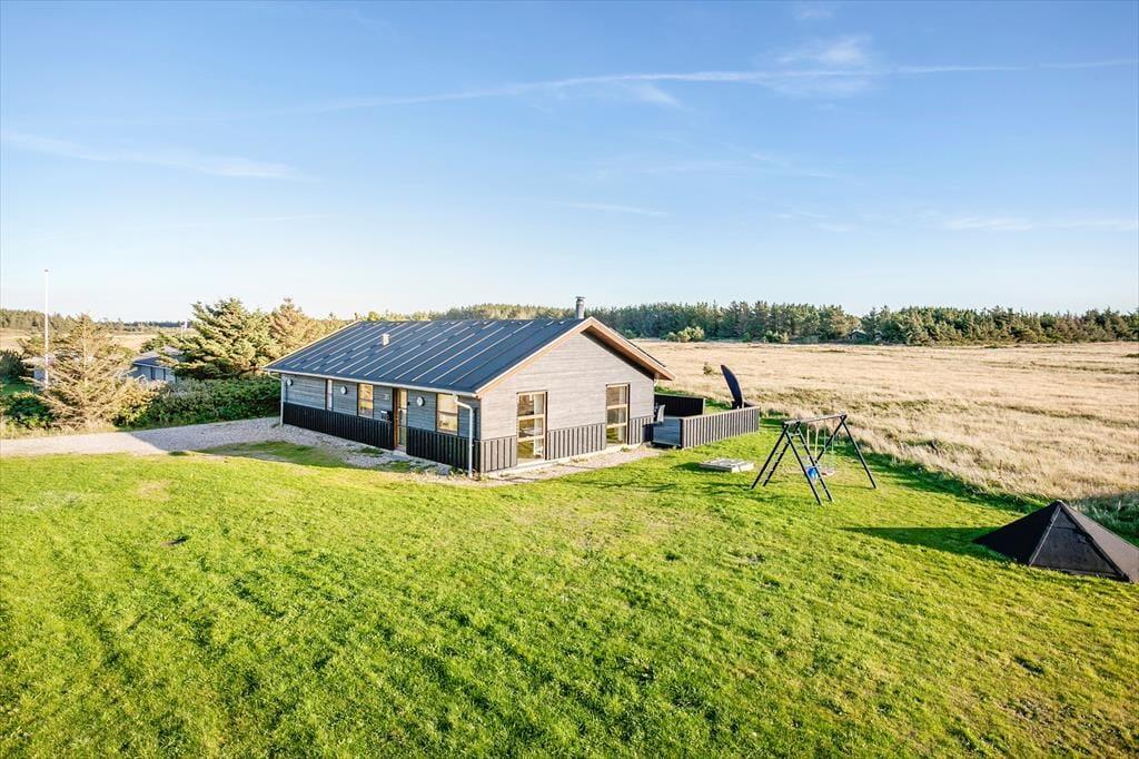 Das Ferienhaus ist schön eingerichtet und von hoher Qualität. Besonders hervorzuheben ist der große, geräumige Wohnbereich mit großen Panoramafenstern, die Platz für die ganze Familie bieten. Das Haus verfügt über zwei große Badezimmer mit WC und Dusche sowie drei Schlafzimmer: zwei mit Doppelbetten und eines mit Etagenbetten. Das Dachgeschoss ist ein gemütlicher Ort für größere Kinder und ist in zwei Bereiche mit vier Matratzen unterteilt. Das Ferienhaus ist energieeffizient mit guter Isolierung und einer Solaranlage, und überall im Haus gibt es kostenloses, drahtloses Internet. Wirklich gute Einrichtungen für den nächsten Familienurlaub in Nordjütland.
